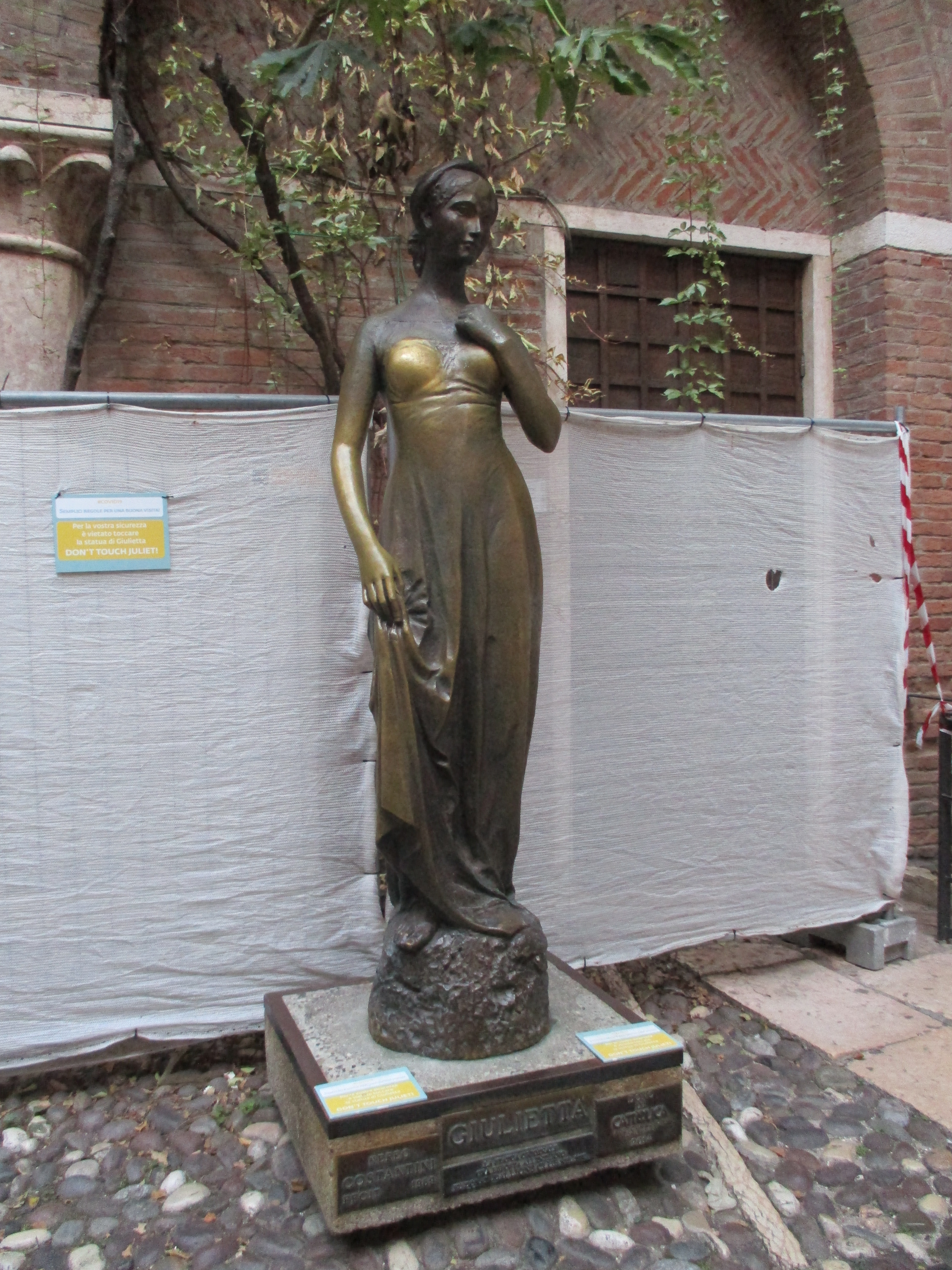 Cette maison, construite au XIIème siècle, appartenait à la famille Dal Cappello. On peut donc y voir le balcon depuis lequel Juliette de Shakespeare écoutait les mots d’amours de Roméo… ainsi qu’une statue de la jeune femme dont il est de coutume de caresser le sein ! Vu la période de notre voyage et l’épidémie de Covid-19, toucher la statue était strictement interdit pour des raisons sanitaires, et un gardien était quasiment dédié à cette surveillance tant les touristes ne résistaient pas à la tentation !