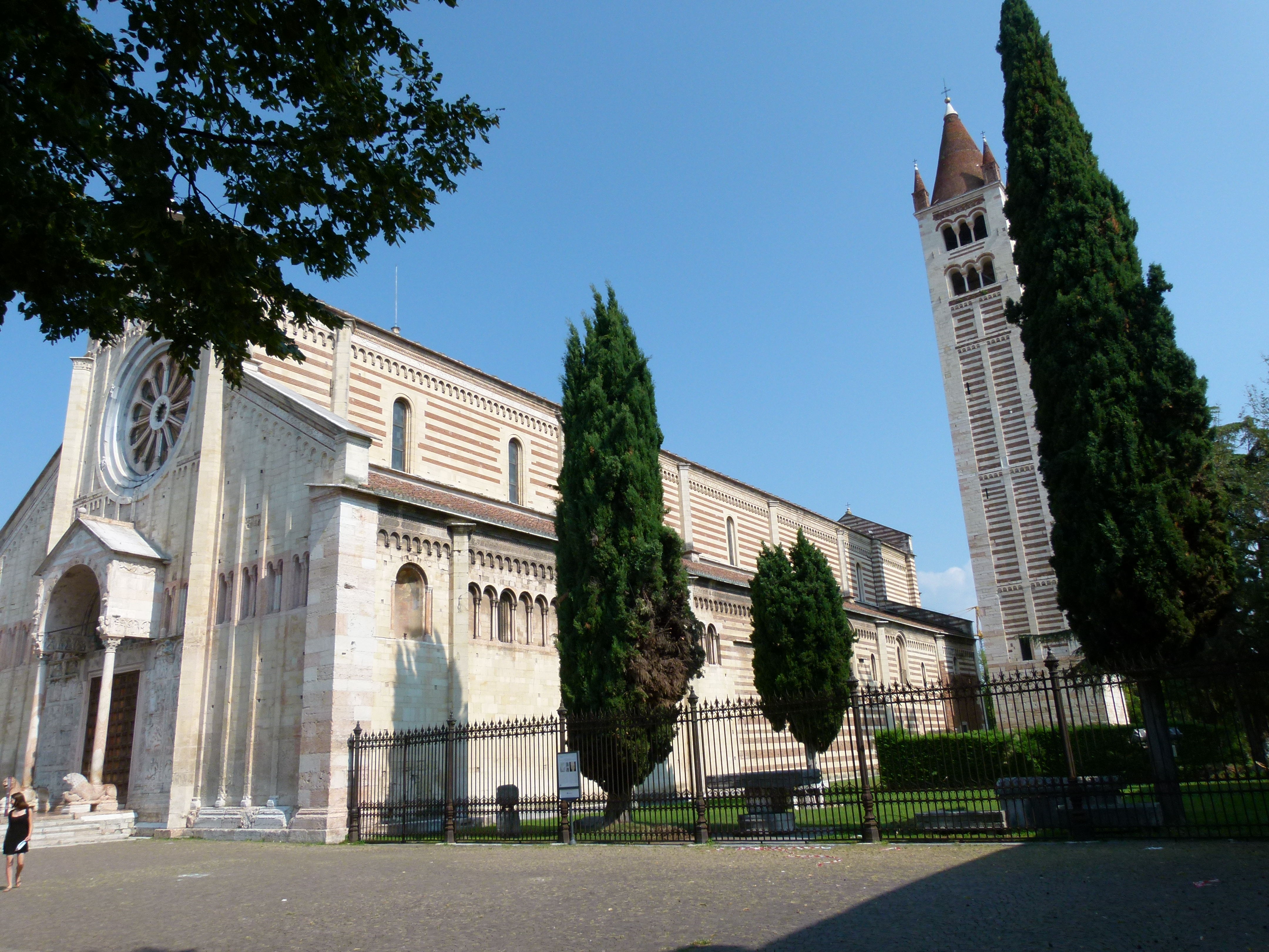 Datant de l’époque romaine et reconstruite après un tremblement de terre en 1117, on peut y admirer entre autres des portes en bronze monumentales représentant des scènes de l’Ancien et du Nouveau Testament, des fresques du XIIème siècle se superposant aux œuvres plus récentes (pas un m² de mur n’est nu), des statues délimitant un chœur surélevé… Une statue de Saint Zénon, patron de la ville, semble vous sourire à l’entrée du lieu, et un cloître est propice à la déambulation.