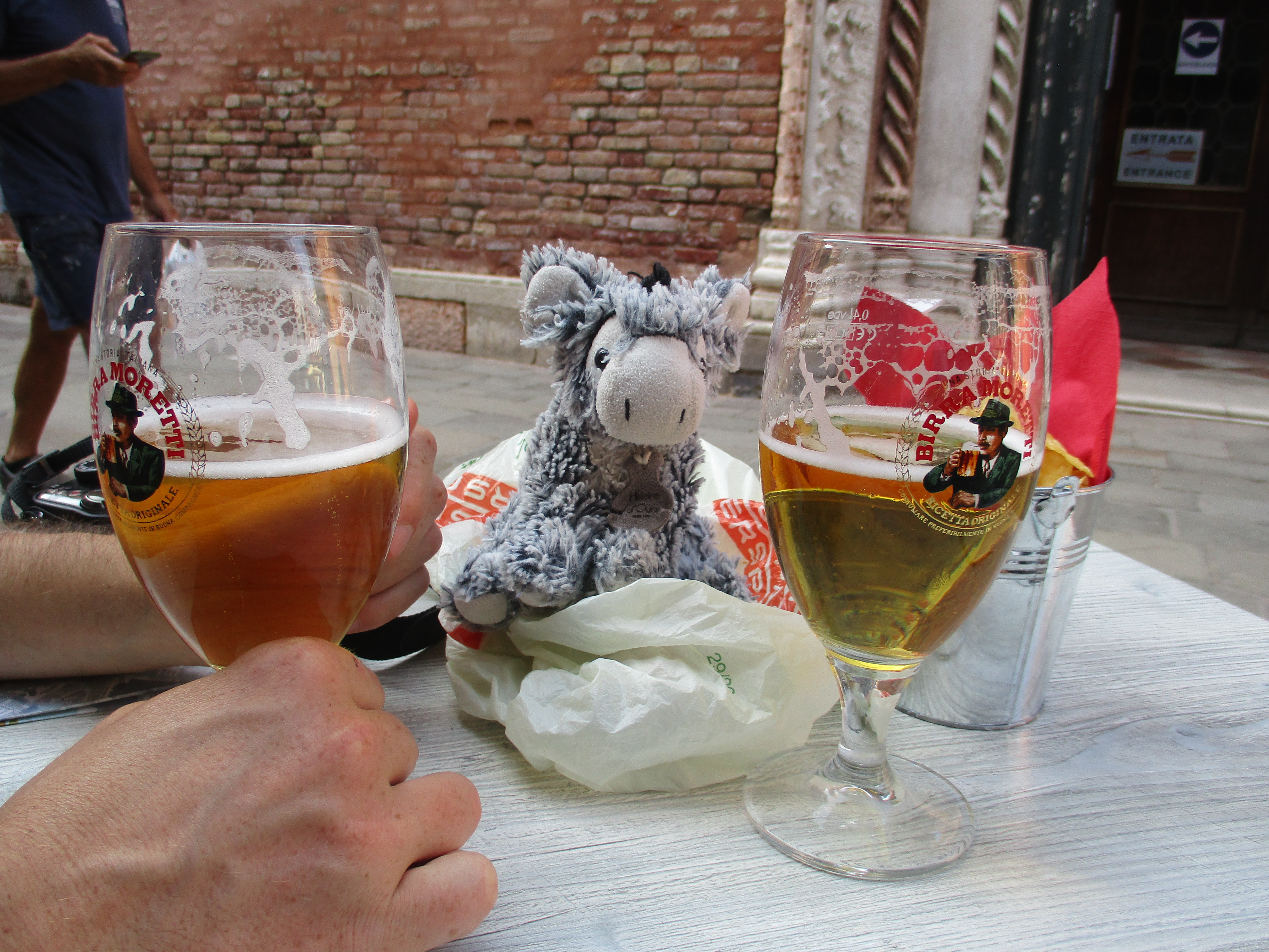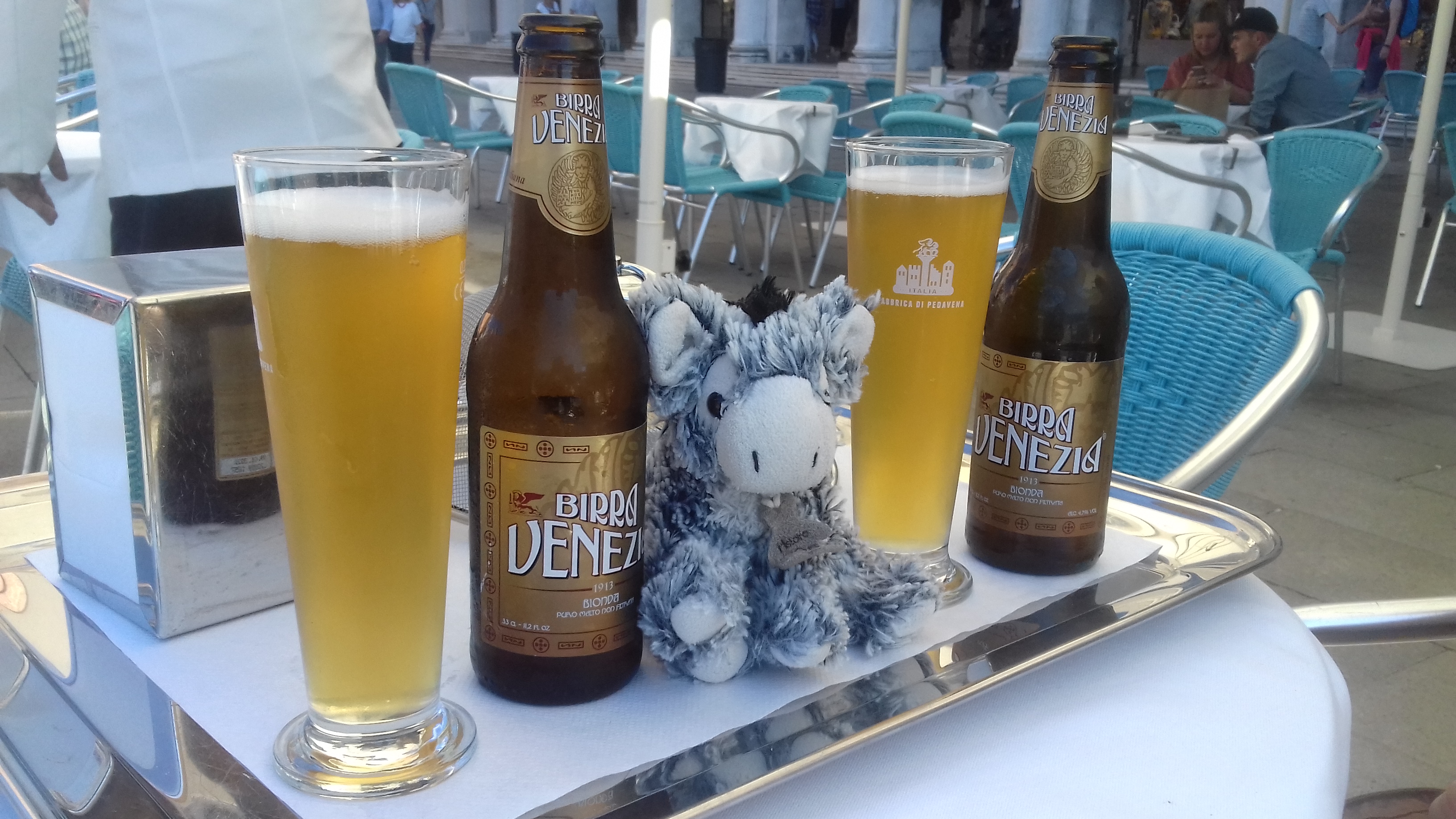 Saluons Célestin, qui en a profité pour boire une bière sur la place Saint Marc ; à 11 euros la bière, il fallait savourer, mais avec la vue sur la Basilique devant et le pianiste en live derrière, c’est un très beau moment à s’offrir… d’autant plus que la bière est locale !