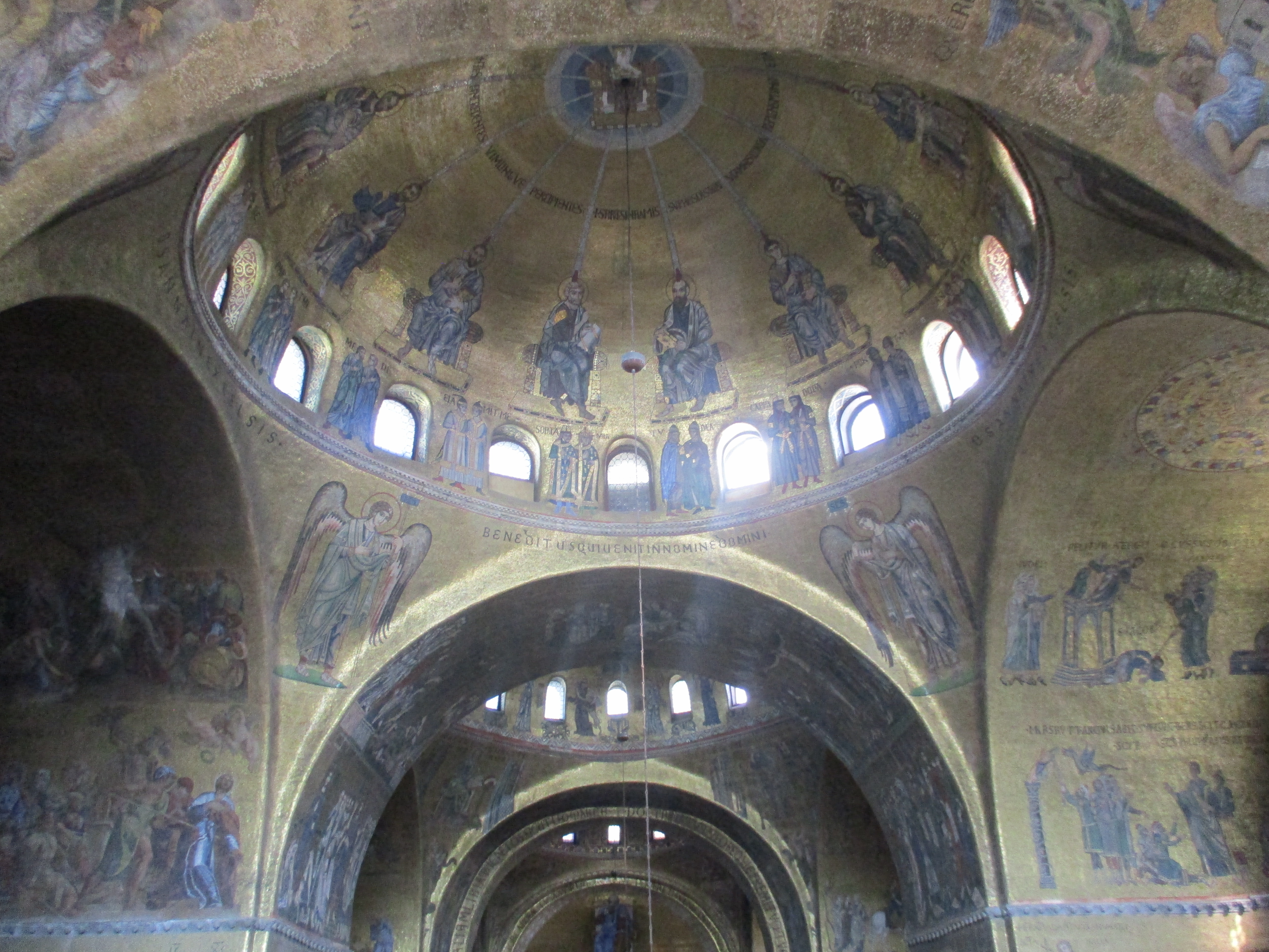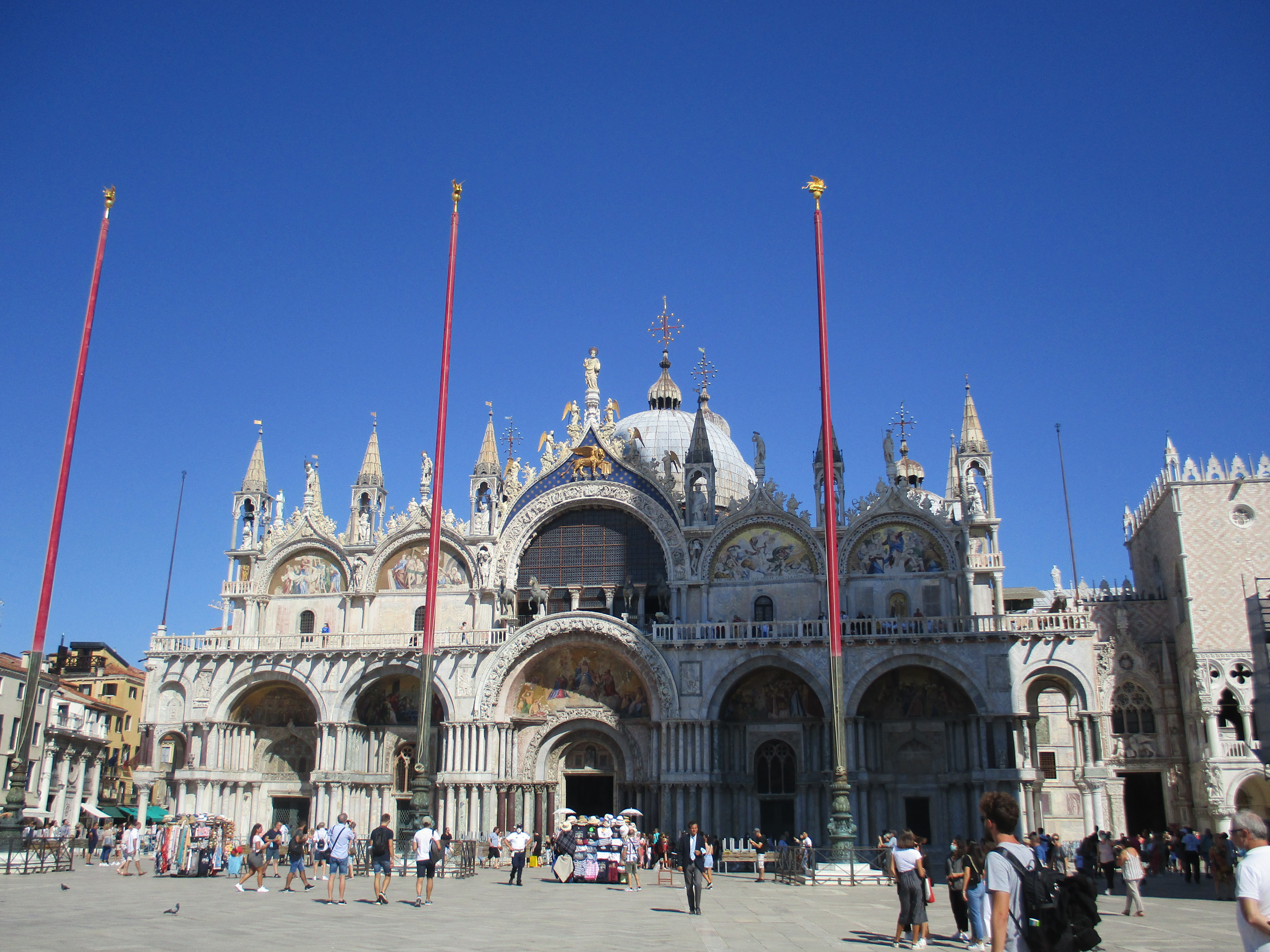 La basilique de Saint Marc : édifiée au XIème siècle en remplacement d’une basilique précédente afin d’abriter la relique du corps de saint Marc, l’édifice s’est enrichi au fil des siècles pour devenir un édifice totalement atypique, mêlant styles byzantin, islamique, Renaissance, gothique… La forme de l’église, en croix grecque, rappelle celle des églises orientales.