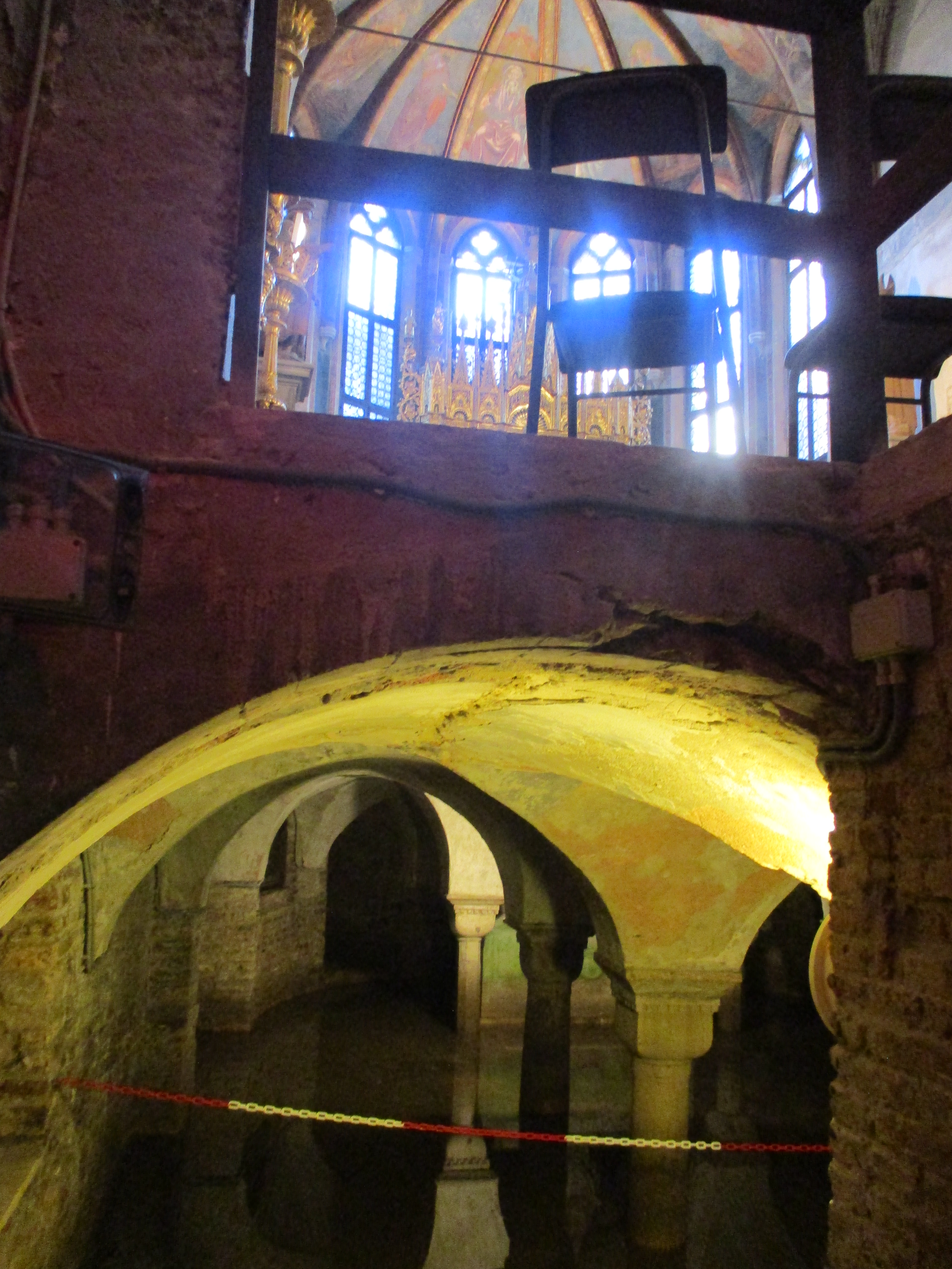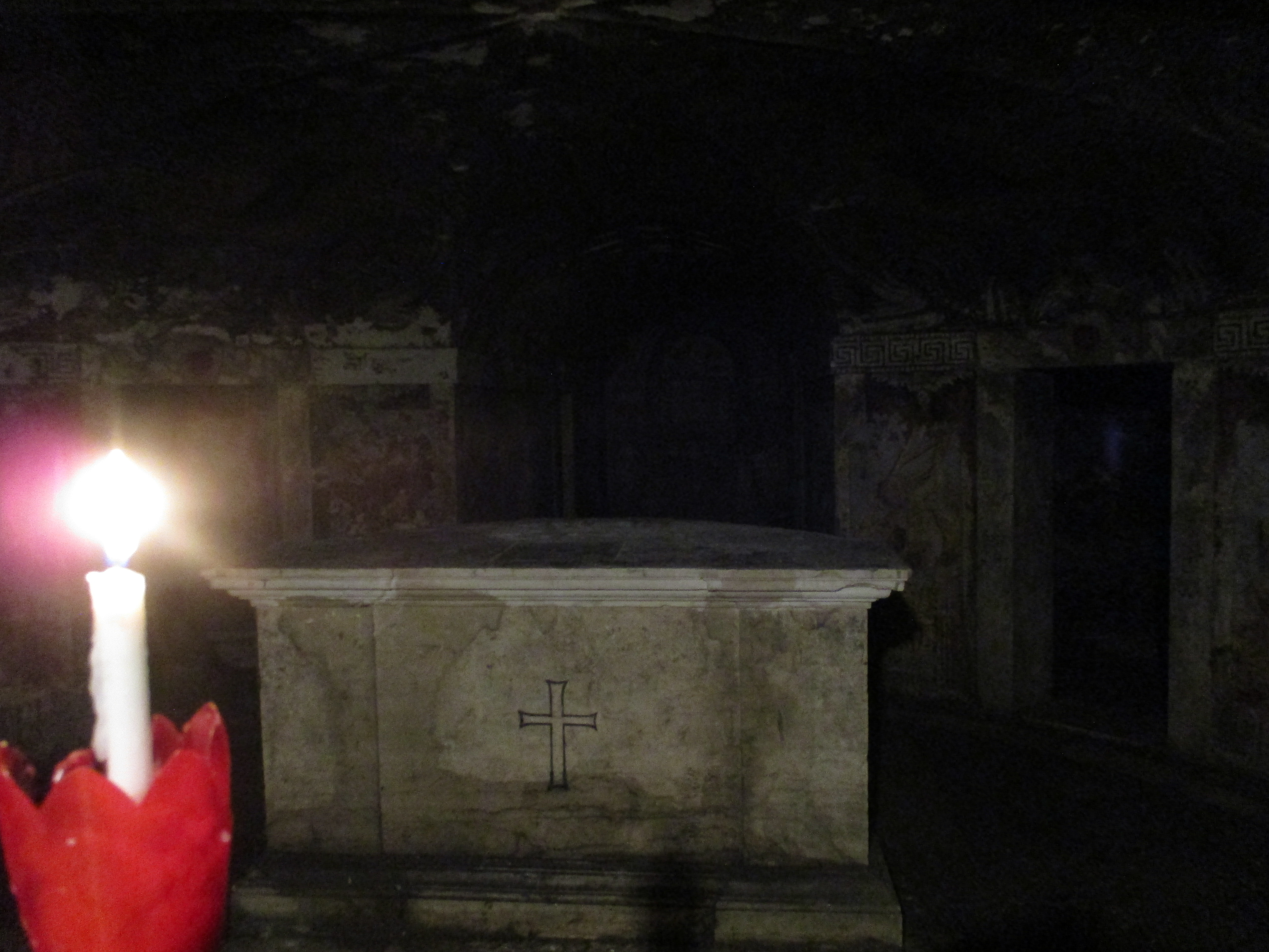 Petite subtilité pour les claustrophobes : ce souterrain est en fait directement situé sous l’escalier d’accès à l’église, au niveau du sol ! La rue est d’ailleurs visible à travers une petite porte, créant un contraste assez saisissant alors que l’on s’imagine être à plusieurs mètres sous terre…