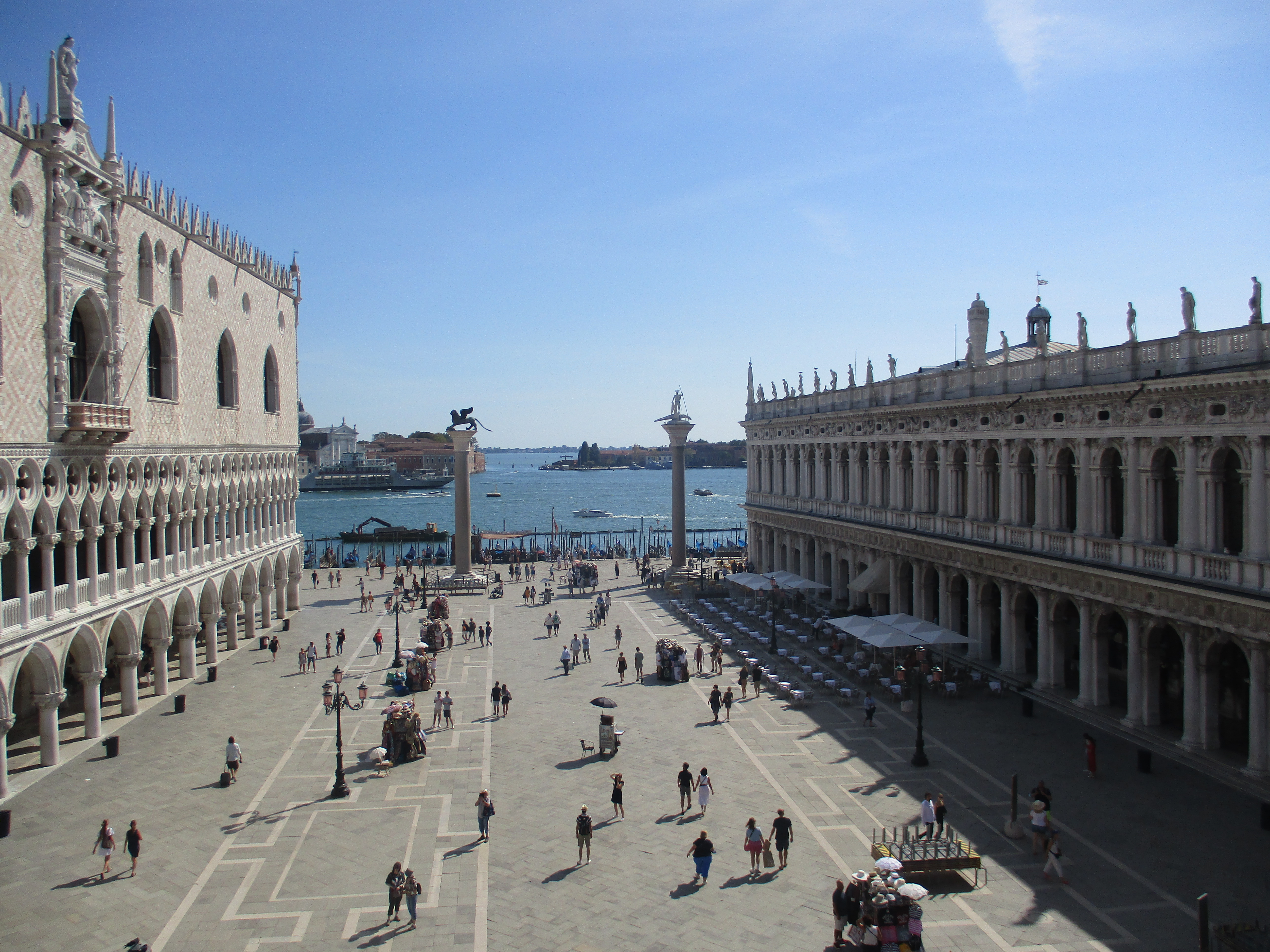 Le palais des Doges : reconstruit de 1340 à 1441 suite à l’incendie qui a aussi eu raison de la première basilique de Saint-Marc, C’était la résidence des maîtres de Venise jusqu’à la fin du XVIIIème siècle. Il abritait également des organes politiques, administratifs ou judiciaires, et accueillait une prison, à laquelle menait le fameux pont des Soupirs. L’histoire veut qu’on entendait les prisonniers soupirer depuis la lagune…