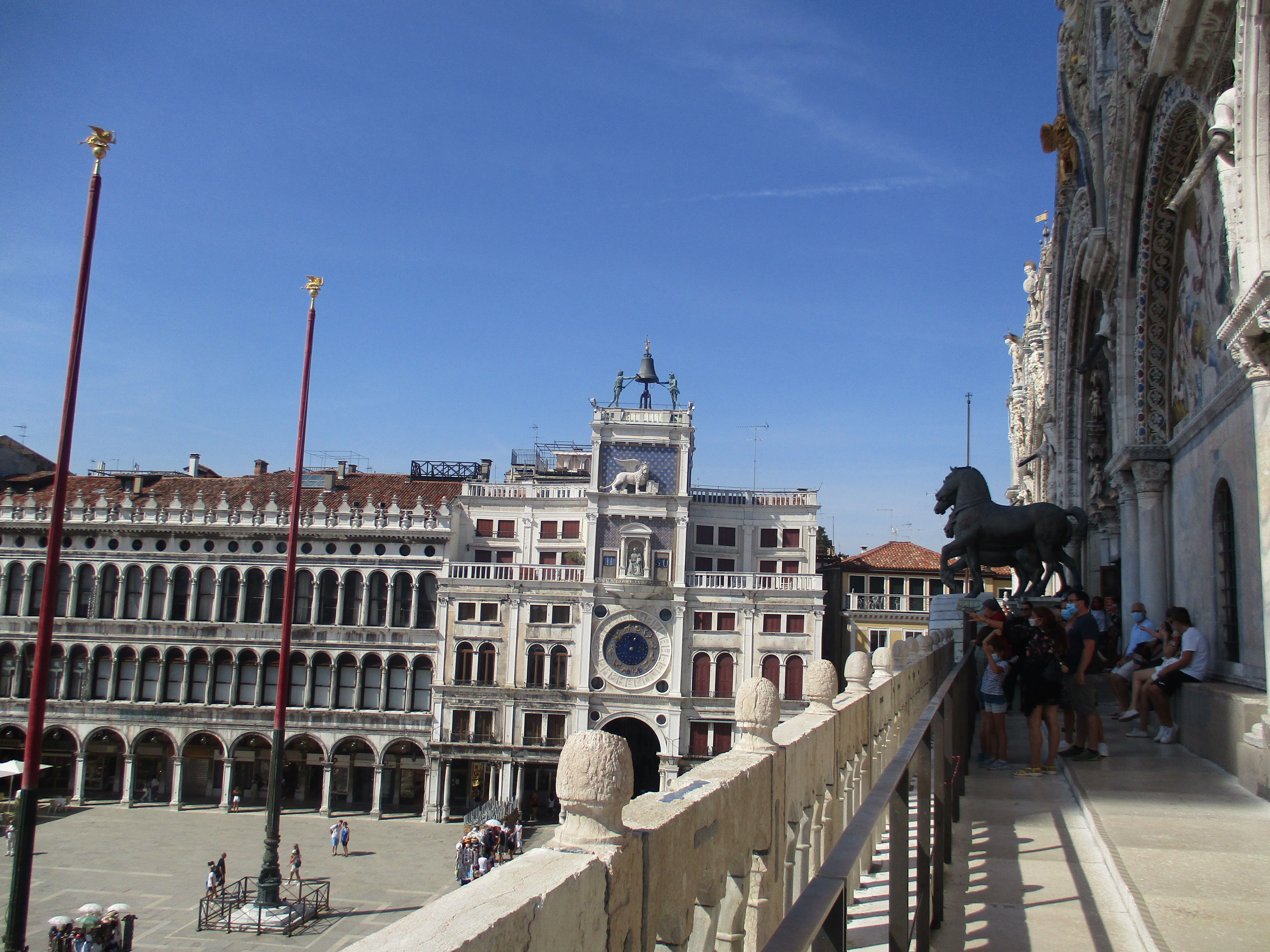En travaux lors de notre venue, le 1er étage reste néanmoins accessible, permettant d’avoir une vue plongeante sur la nef du bâtiment. Le circuit vous emmène vers la terrasse panoramique afin d’avoir une vue d’ensemble sur la place et le Grand Canal, afin de vous découvrir le petit musée d’archéologie absolument superbe : on y découvre notamment les originaux du quadrige présent sur la terrasse, héritage de Constantinople, rapportés à Venise durant les croisades… Il y a également la possibilité d’accéder à une salle de réception du Palais des Doges et d’y admirer les tapisseries médiévales ainsi que des manuscrits.
