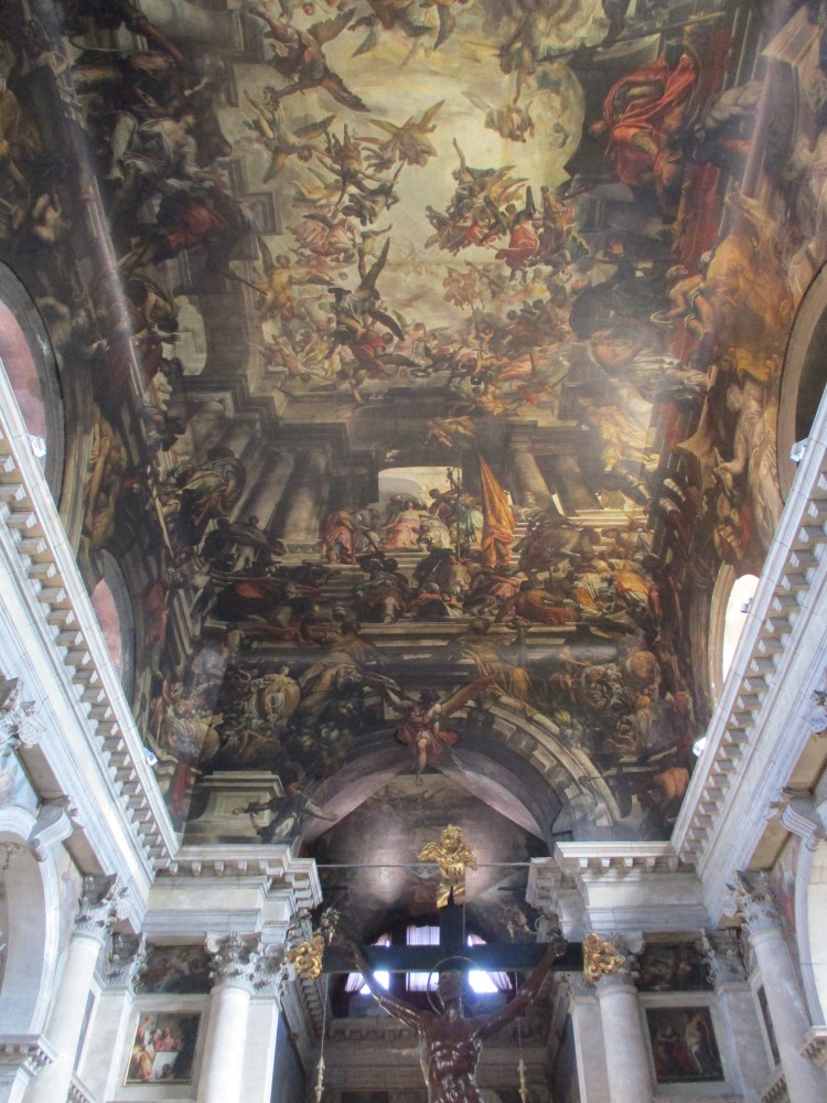 L’église San Pantalon : tombés par hasard sur cette église de quartier, quelle surprise nous avons eu en pénétrant à l’intérieur ! le plafond, entièrement peint, donne la sensation d’être aspiré vers le ciel… Le maître, Antonio Fumiani, mit 25 ans à réaliser cette œuvre qui lui en coûta la vie, suite à une chute de son échafaudage. Son corps repose dans l’église.