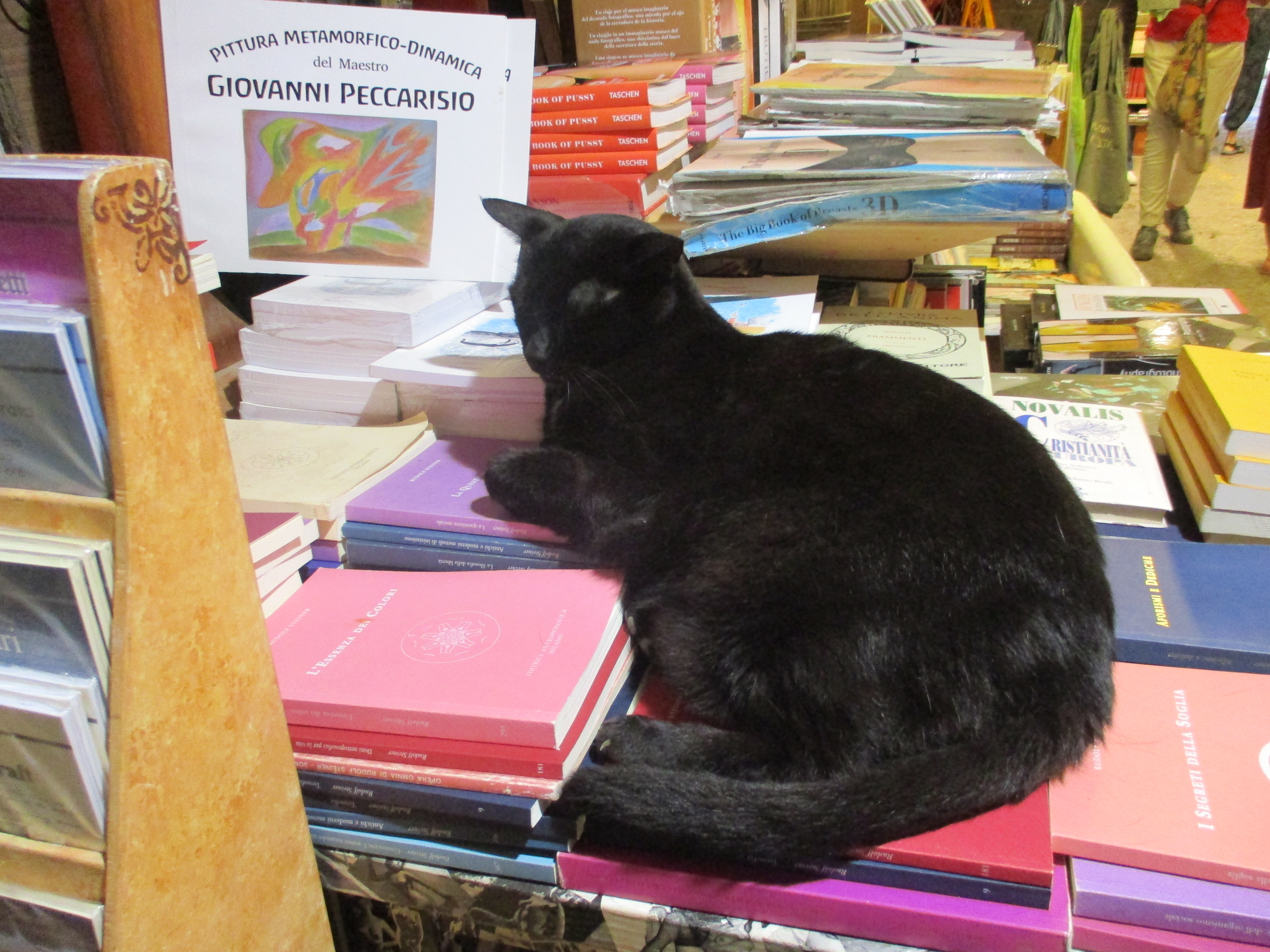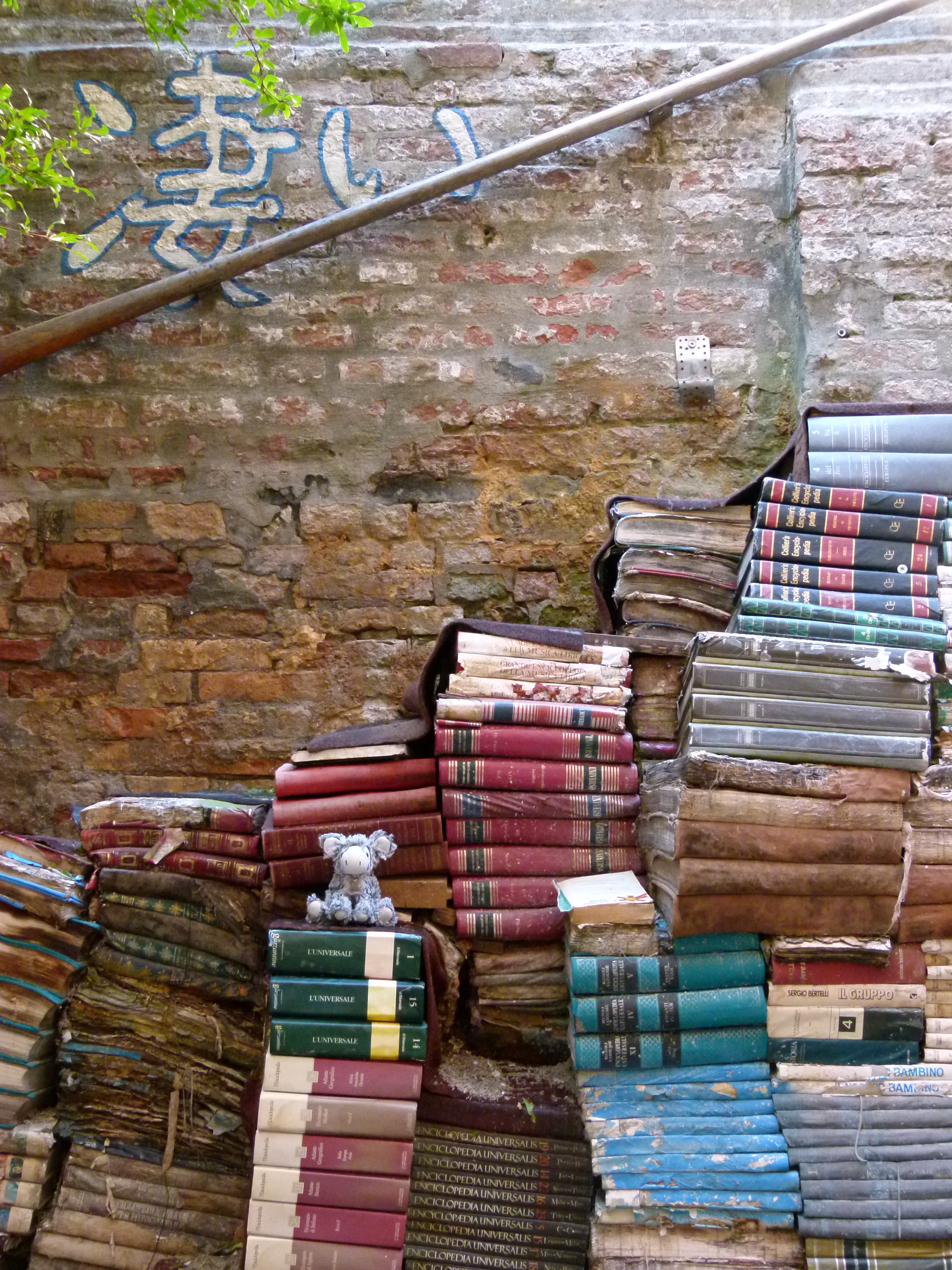 La librairie Acqua Alta : découverte via les réseaux sociaux, et visiblement très connue des instagramer qui font la queue pour se faire prendre en photo sur des piles de livres ou au milieu des rayonnages (Célestin s’est d’ailleurs prêté au jeu), cette librairie est un véritable bric-à brac pour les amoureux de la lecture. Guides de voyage, romans internationaux, ouvrages d’art, livres pour enfants s’amassent sur des étagères de guingois ainsi que dans des baignoires, des gondoles, des bacs de lessive… Un plaisir de fouiller dans les rayonnages (très ordonnés, malgré l’effet fouillis volontaire), d’autant plus que les chats sont les bienvenus, et se laissent volontiers caresser. L’humour est également au rendez-vous : l’issu de secours en cas d’incendie aboutit directement dans le canal !