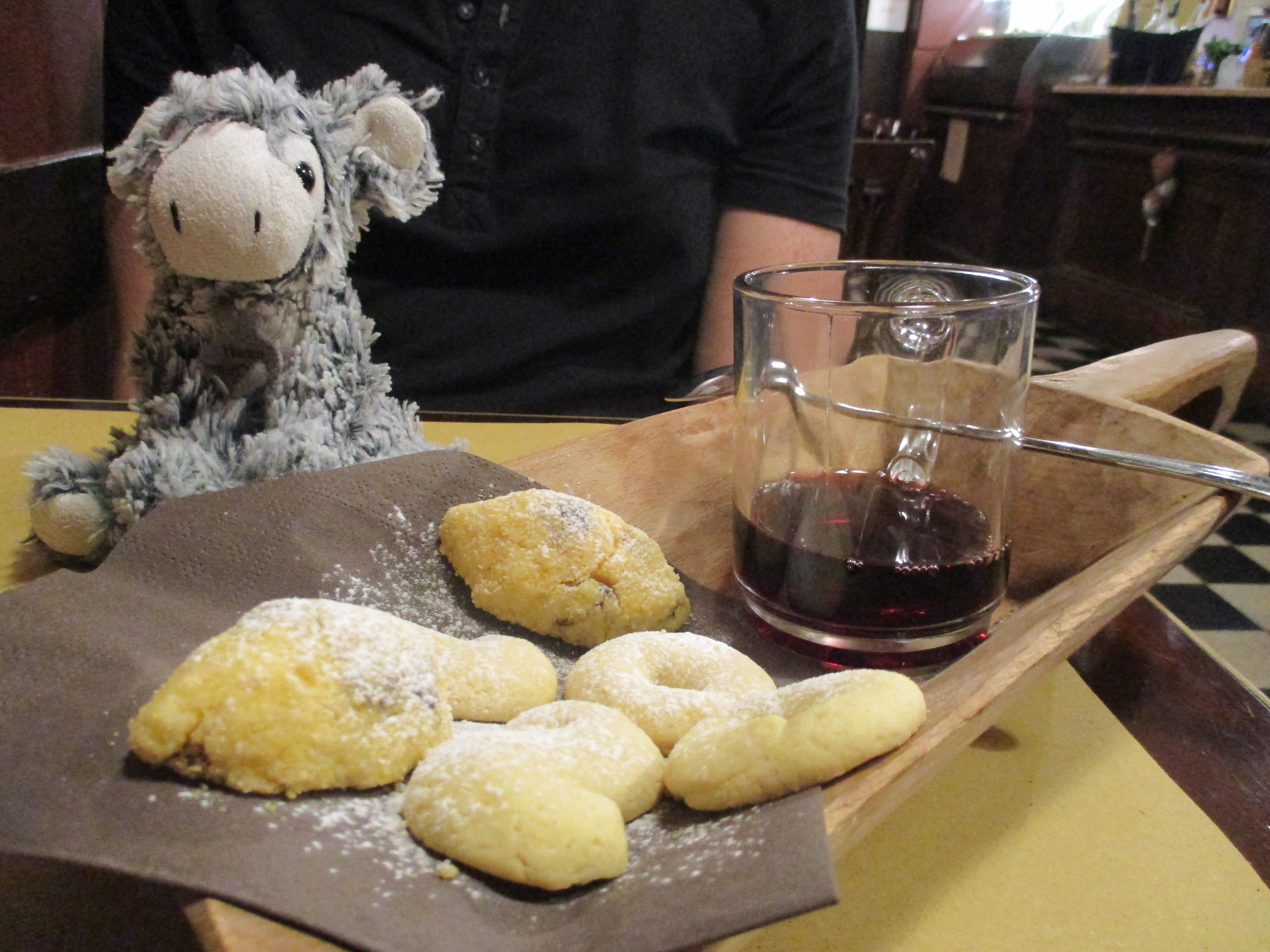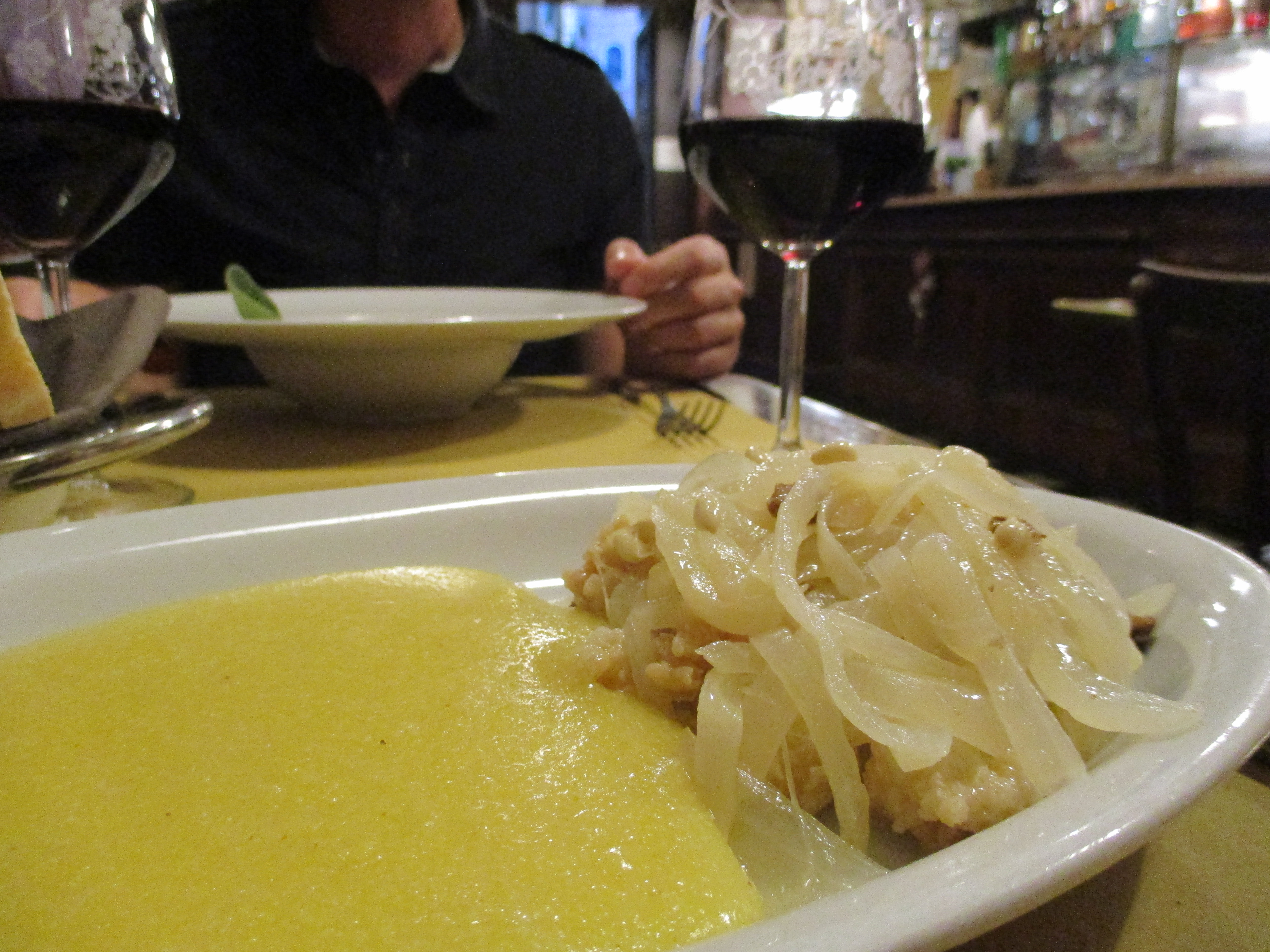 • Ostaria Antico Dolo, Ruga Rialto, 778 (quartier San Polo) : la Riva del Vin, rue des restaurants au pied du pont du Rialto, est peuplée de serveurs racoleurs succédant à des serveurs insistants, vous proposant tous des lasagnes, pizza ou spaghettis carbonaras au prix touriste. Et sinon, dans la rue parallèle, vous trouvez une formidable Trattoria traditionnelle tenue par un vieil homme, avec cuisine faite maison ! Au menu : gnocchi de potiron, crevettes aux oignons et polenta (chaud/froid/sucré/salé, très surprenant et excellent), et pour conclure desserts traditionnels de Venise à tremper dans une liqueur locale. Parfait !