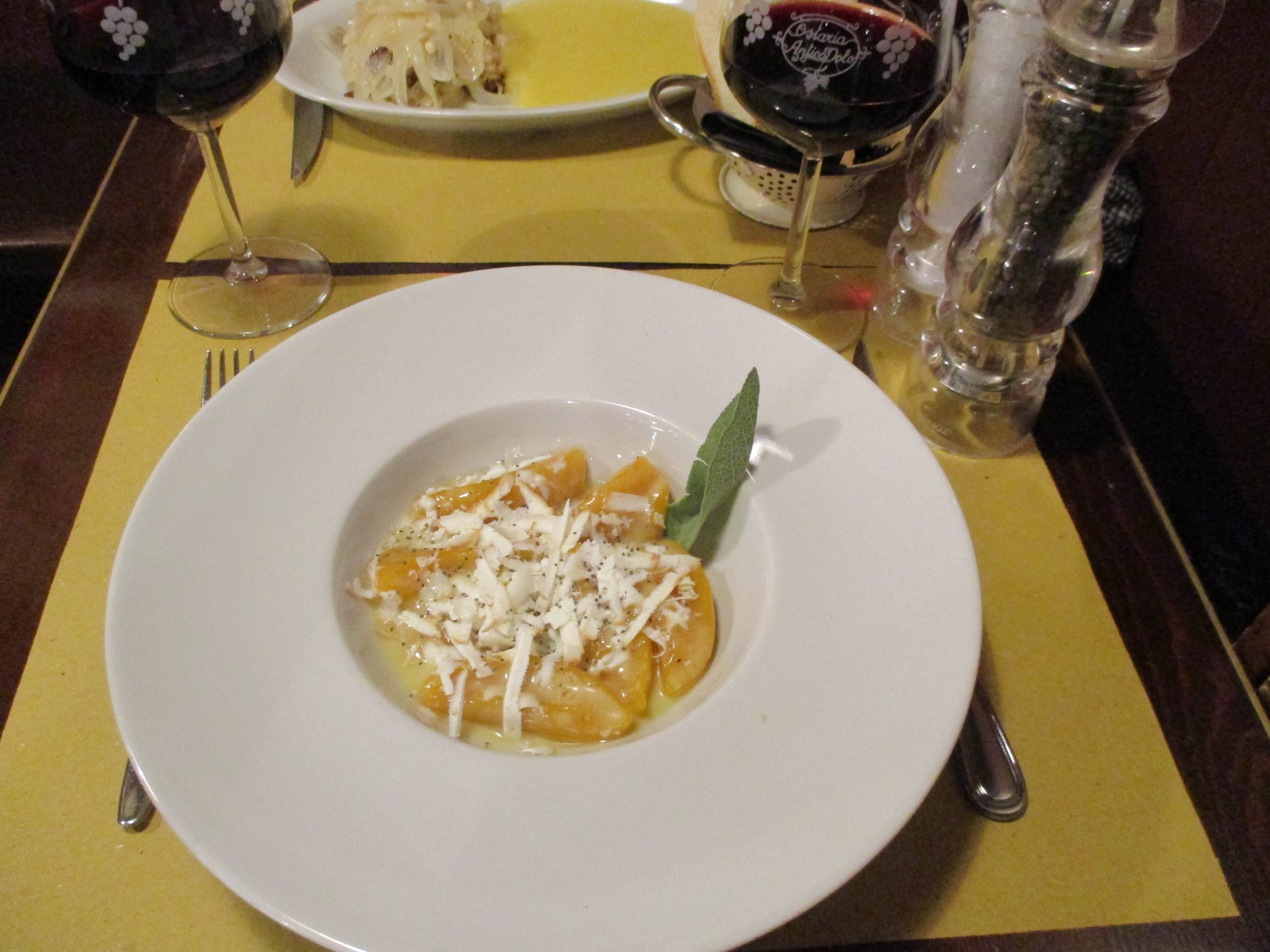 • Cà D’Oro alla Vedova, Ramo Ca’ d’Oro, 3912 (quartier Cannaregio) : ce restaurant au fond d’une ruelle nous a interpellés depuis la rue principale. De bonnes odeurs flottaient dans l’air, une bonne ambiance semblait se dégager du lieu, et la décoration était totalement dans nos goûts : un style brocante du sol au plafond, avec meubles réutilisés et décorations en tout genre. Forcément, c’était complet… Mais le restaurateur s’est plié en 4 pour nous trouver une petite place dans une alcôve. Plats traditionnels de Venise, tels la sèche et son encre sur de la polenta, ou encore le foie de veau aux oignons : un régal, tant pour les yeux que les papilles. Vin au verre, local aussi, nous avons passé un très bon moment, pour un prix plus qu’abordable (moins de 50 euros pour deux, pour une entrée de fruits de mer à partager, deux plats viande ou poisson dans la partie « tradition » de la carte et une petite bouteille de vin).