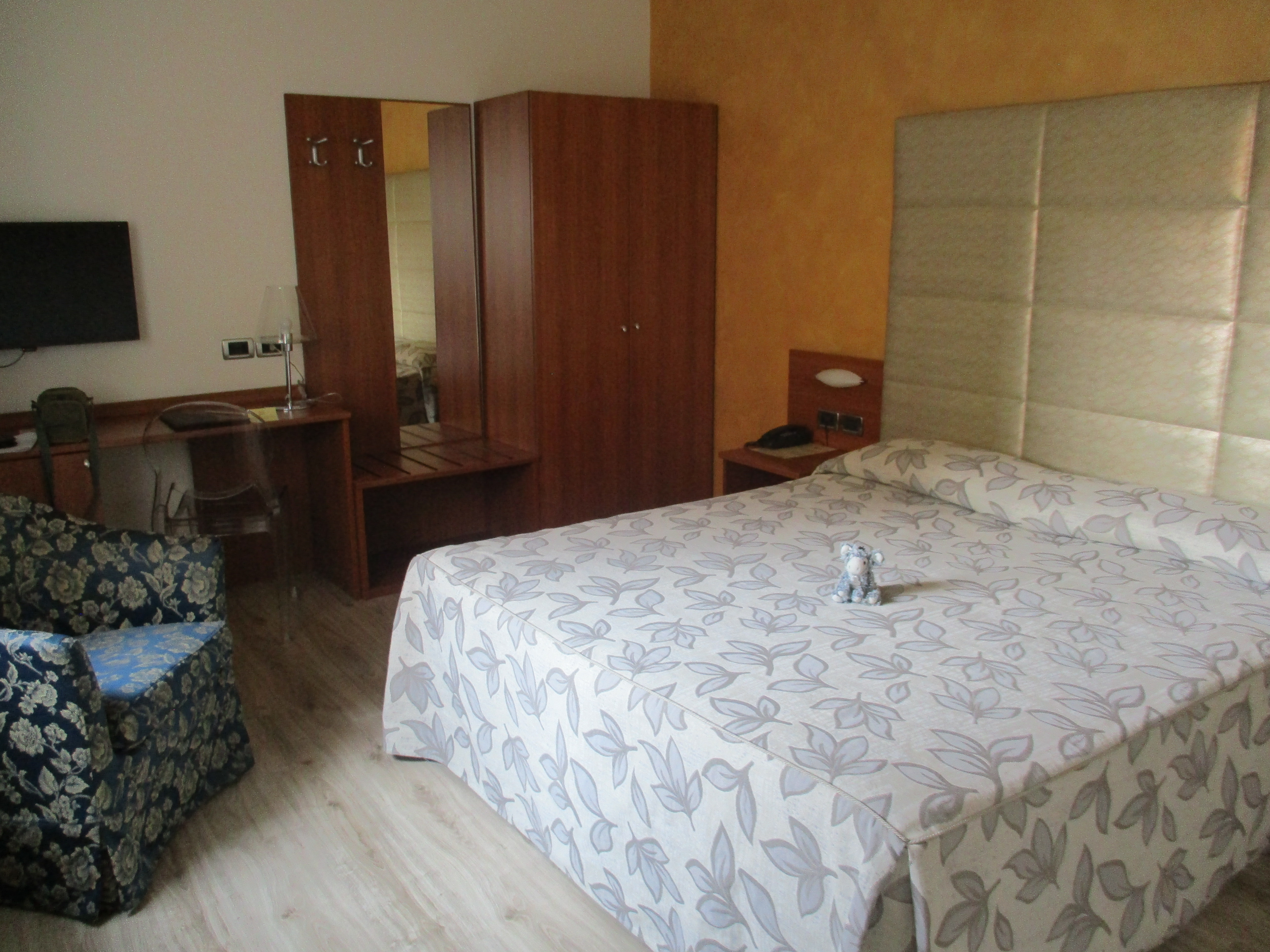 Nous avons fait une escale d’une journée et une nuit dans cette ville, et avons jeté notre dévolu sur un hôtel au nom tout à fait local : l’hôtel Doge, situé un peu à l’écart du centre-ville (mais répondant à nos critères habituels : parking et petit-déjeuner inclus !) La décoration était très différente de ce que nous avions déjà pu voir, mais avait un certain charme… et prendre le petit-déjeuner en terrasse couverte, quel bonheur !