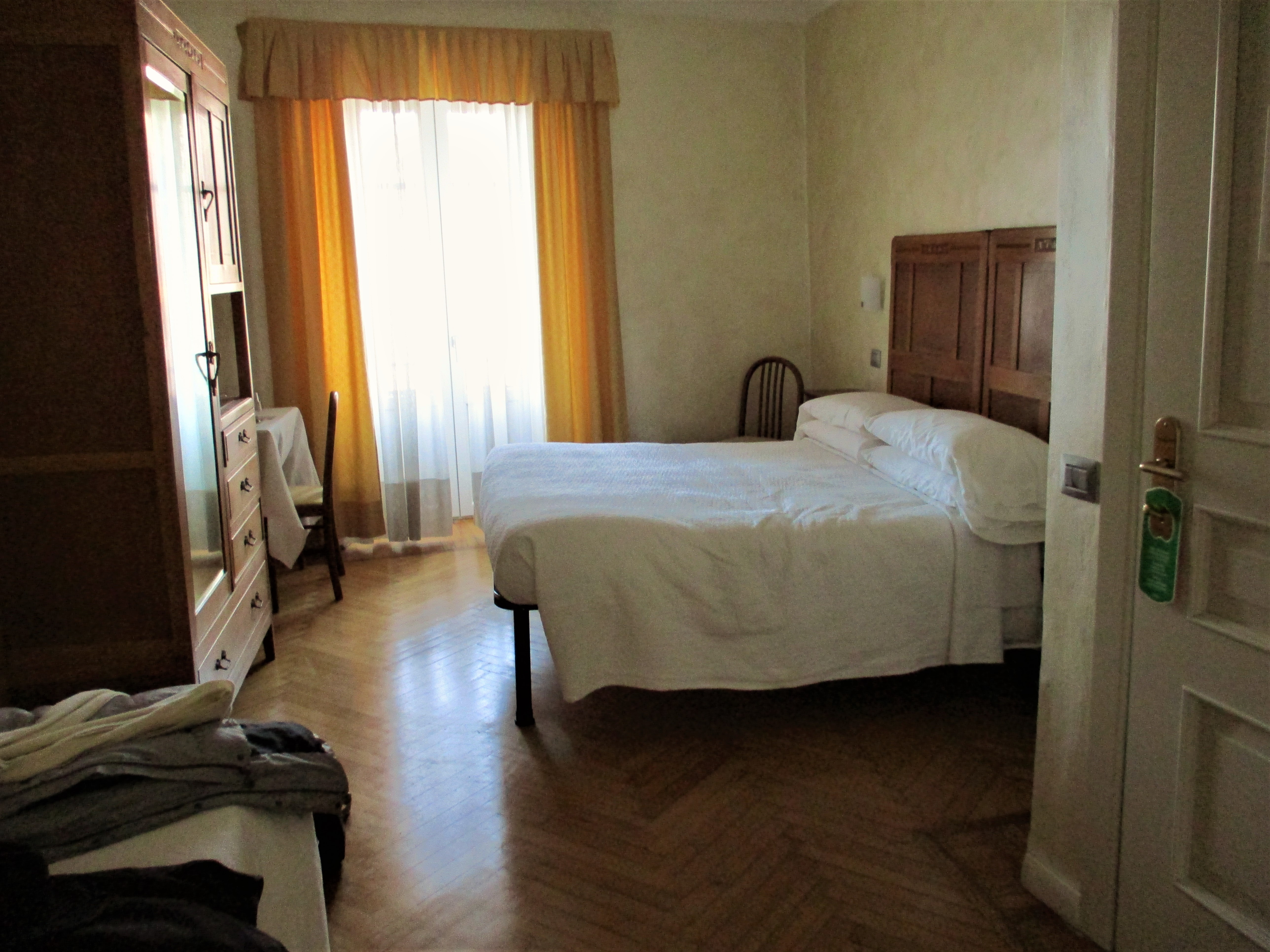Nous sommes descendus dans le charmant hôtel Suisse de Bellagio, situé directement sur le lac. La chambre (au charme un peu désuet) était très confortable, avec une magnifique vue sur l’étendue d’eau, le petit déjeuner était tout à fait appréciable, et le restaurant du rez-de-chaussée, ouvert aux personnes extérieures le soir, nous a permis de découvrir une cuisine plus ou moins typique (car oui, apparemment, les fameuses spaghettis trempées dans une meule de parmesan ne sont mangées que sur les réseaux sociaux, et non sur place !)