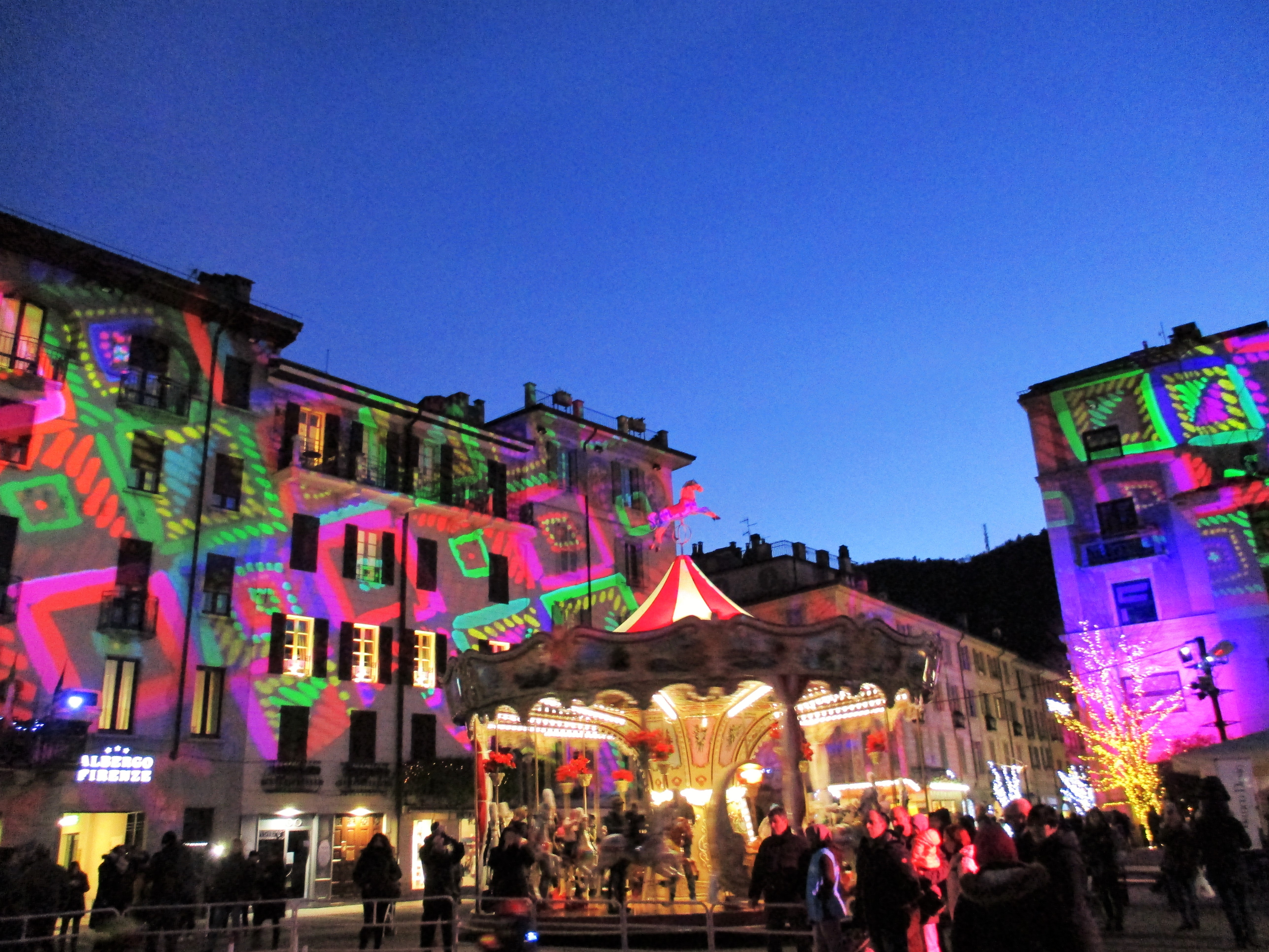 Le soir du Nouvel an approchant, et souhaitant tout de même fêter cet évènement dignement, nous sommes revenus vers Côme : autre ambiance, totalement festive, restaurants et bar absolument complets… Le hasard a finalement fait qu’une place s’est libérée sous notre nez au même Caffè Duomo où nous étions la veille : tant pis pour la recherche d’un nouveau lieu, nous avons bien profité de la terrasse chauffée (pas bien, on sait…) et avons rempilé sur le Cardinal, cette fois avec une belle pizza italienne ! Un peu touristique pour le coup, mais tellement heureux d’être dans l’ambiance !