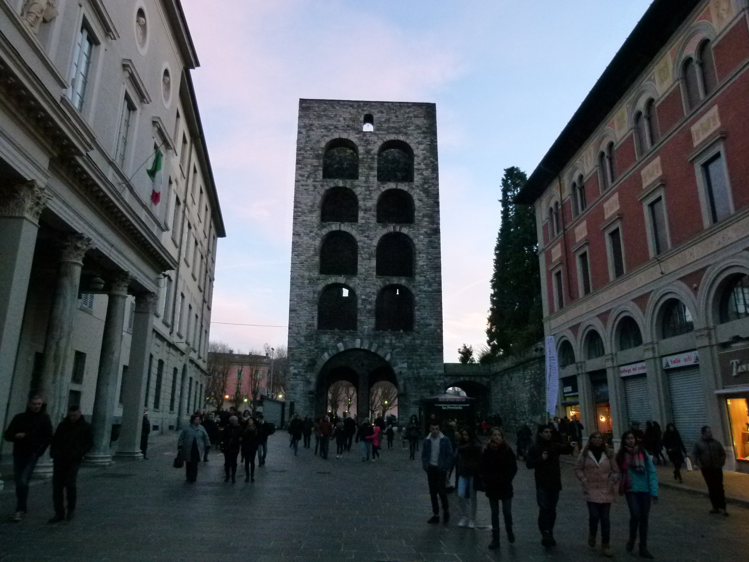 La place Cavour : située à l’emplacement d’un ancien marais étant devenu zone portuaire de la ville au XIVe siècle, elle constitue une place importante de la ville depuis le XIXe siècle. Accueillant un marché de Noël lors de notre venue, elle permet d’admirer le lac depuis un joli cheminement organisé rien que pour les piétons : un vrai plaisir de se promener sans devoir surveiller ses arrières et de pouvoir vraiment profiter de la jolie vue depuis des bancs ou accoudés à la belle balustrade aux symboles maritimes…