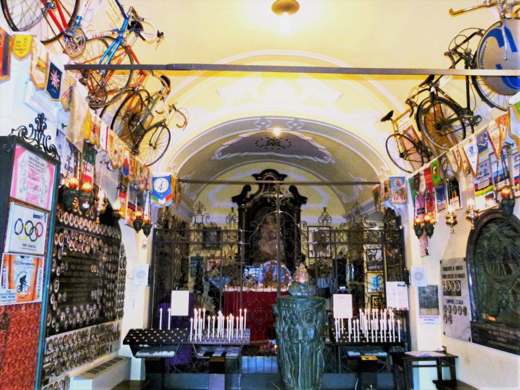 Quatrième et dernier jour, le jour le plus triste, le jour du retour. Comme à nos habitudes, nous faisons de la résistance : courses alimentaires de produits locaux dans la plus vieille Pasticceria de Bellagio, le Caffè Bar Sport, datant de 1919, étape sur la route avec découverte d’une chapelle dédiée aux cyclistes à Ghisallo (avec petite halte au bistrot du site pour nous resustenter)…