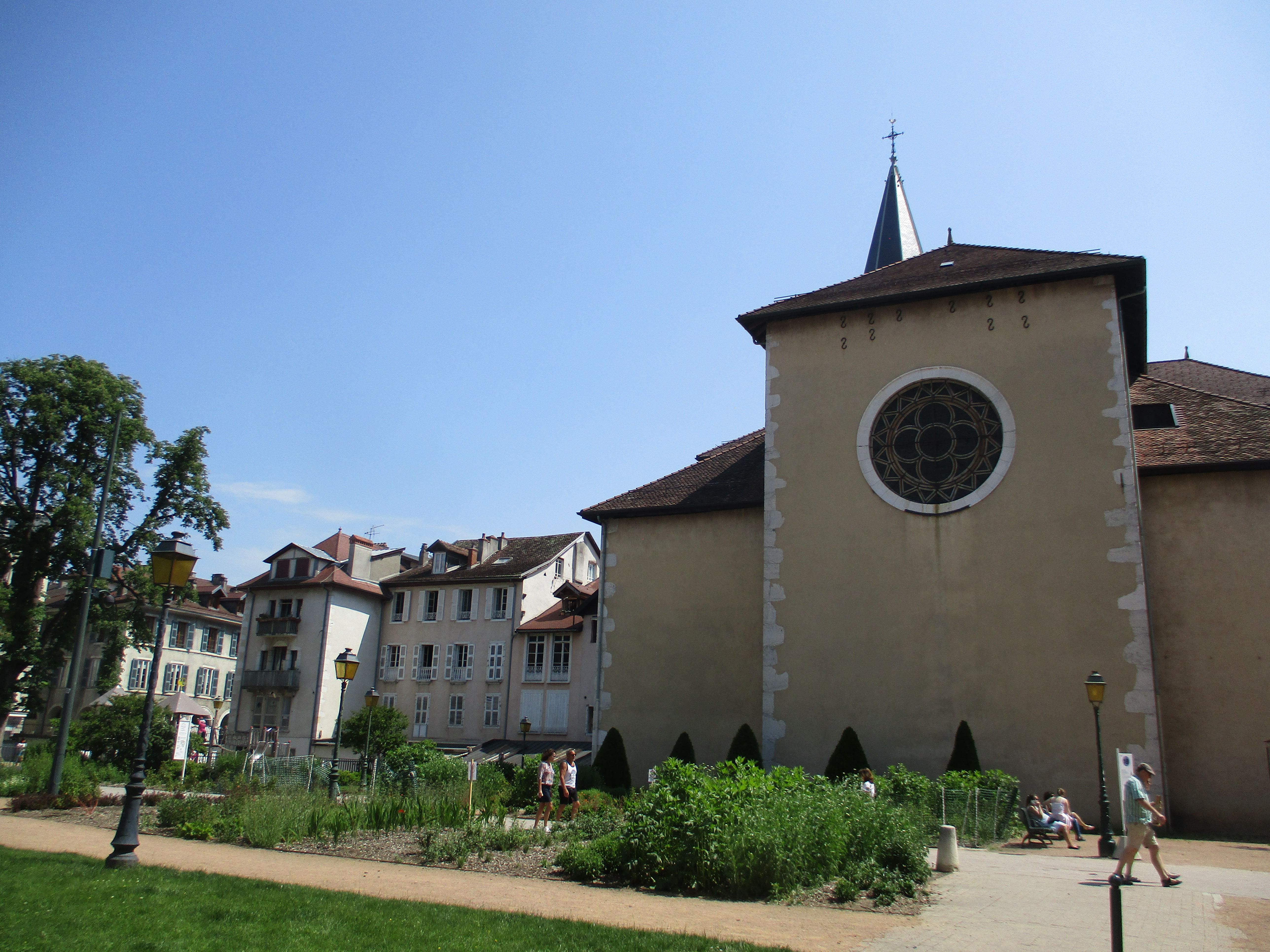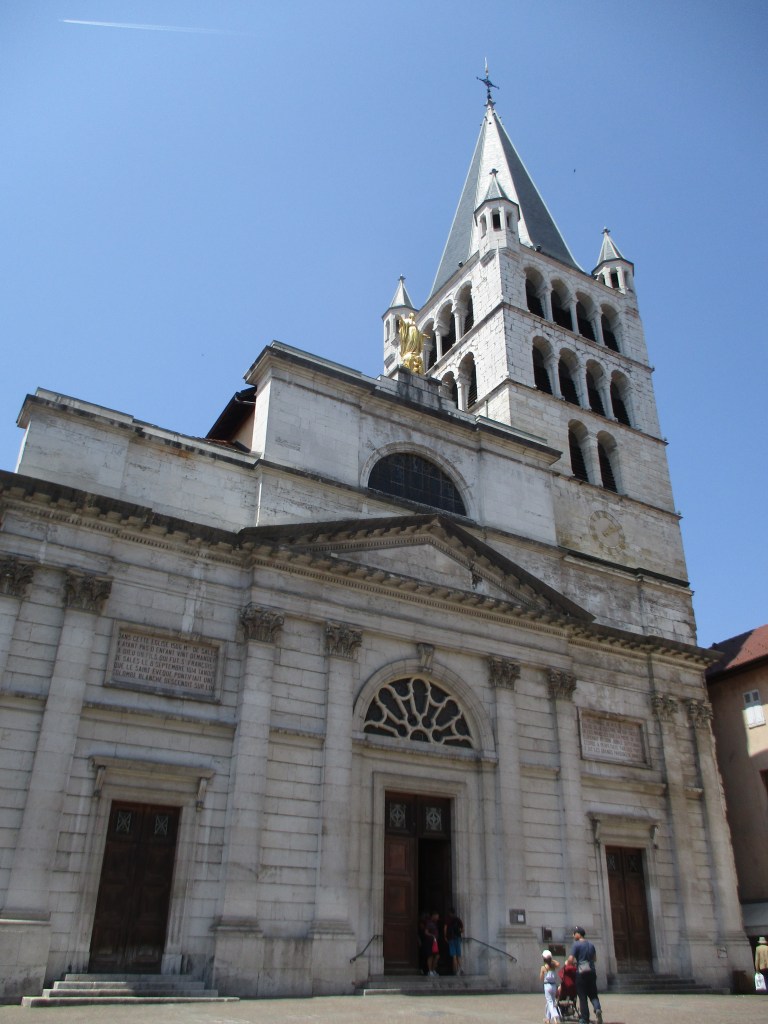 La promenade se poursuit dans la ville au gré de nos pas : on tombe par le plus grand des hasards sur la cathédrale, très discrète (il n’y aurait pas eu le panneau « passage des Célestins » qu’on ne se serait peut-être même pas arrêtés !) et pourtant majestueuse une fois qu’on la découvre. Datant du XVIe siècle, elle a été remaniée à plusieurs reprises ; son clocher est notamment détruit à la Révolution française. Saint François de Sales, dont nous avons précédemment visité l’église, y a officié comme évêque.