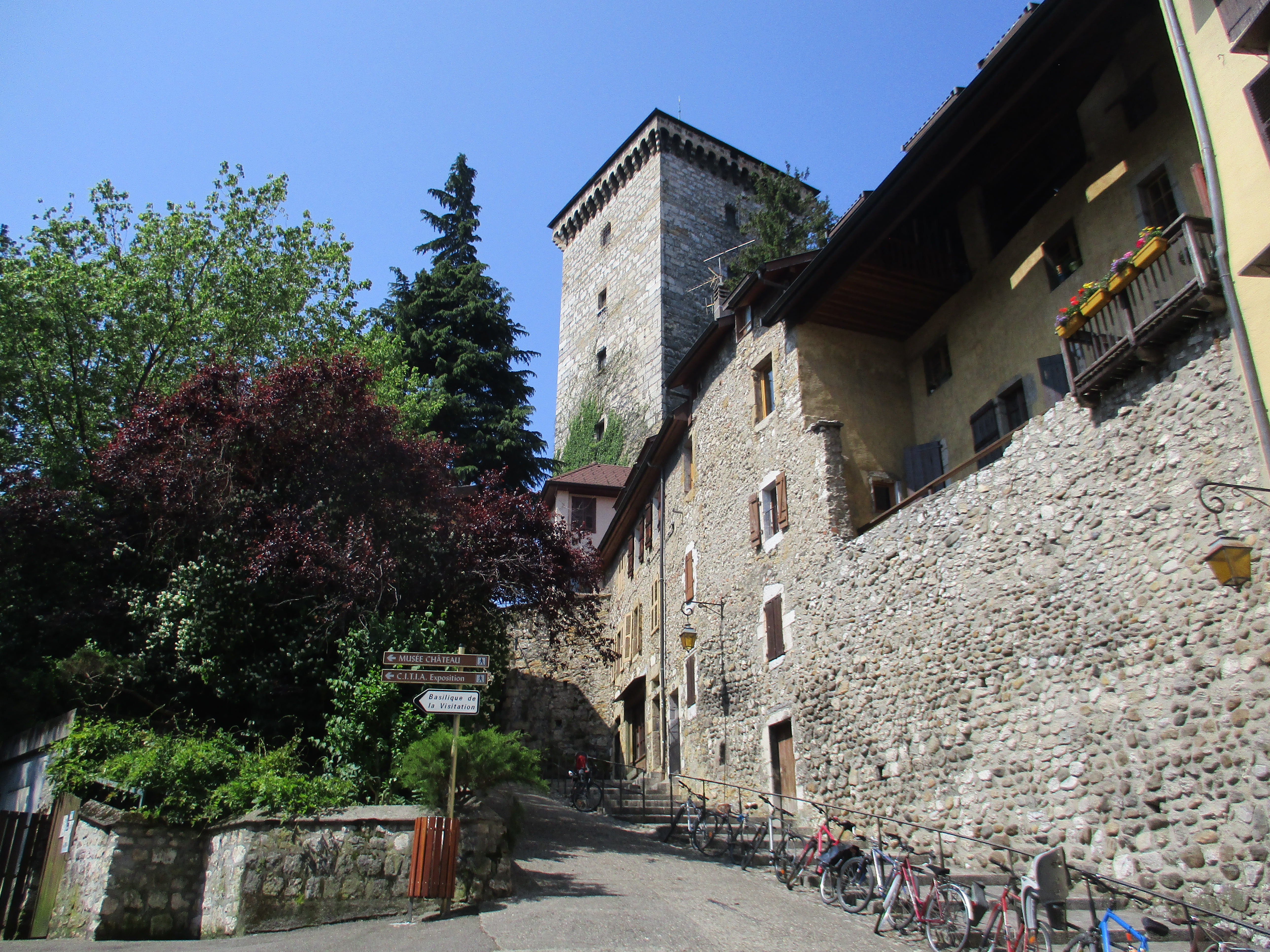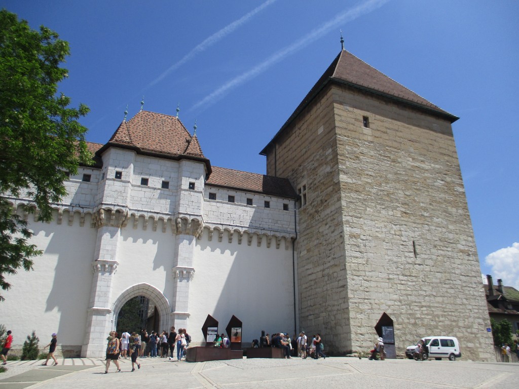 Nouvelle étape de l’après-midi : aller visiter le Musée-château d’Annecy. On gravit difficilement la pente (il fait TRÈS chaud), on voit le site apparaitre… de même que la queue monstrueuse pour rentrer à l’intérieur. Nous déclarons forfait, car nous étions plus intéressés par l’architecture du château en lui-même que par les musées qui sont aujourd’hui situés en son sein. Et pas moyen d’aller ne serait-ce que regarder la cour depuis la barrière, faire la queue est obligatoire ! Tant pis, on reviendra… en hiver ?