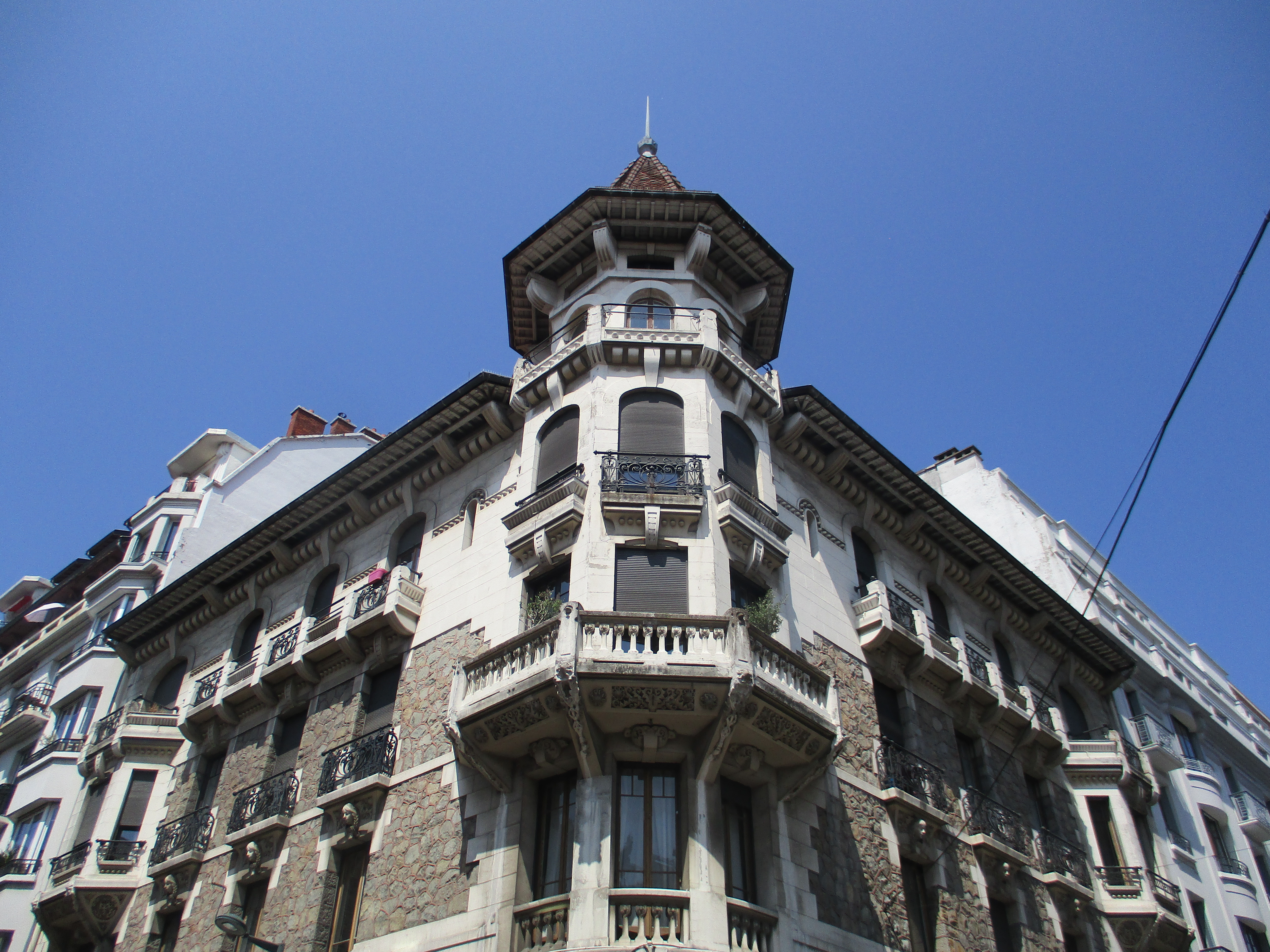 On visite tout d’abord l’église Saint-François de Sales à l’entrée du quai, puis on se laisse porter par nos pas vers les rues étroites du centre, où un marché type brocante se tient sous les arcades. On dit ensuite bonjour au Palais de l’Île (et on constate la faiblesse du niveau de l’eau l’entourant…) Mais au bout de quelques minutes, la faim… et la soif, se font sentir. Il faut dire qu’il est 11h15 et que nous n’avons rien mangé depuis la veille au soir (ni bu, on y revient toujours). La chasse commence…