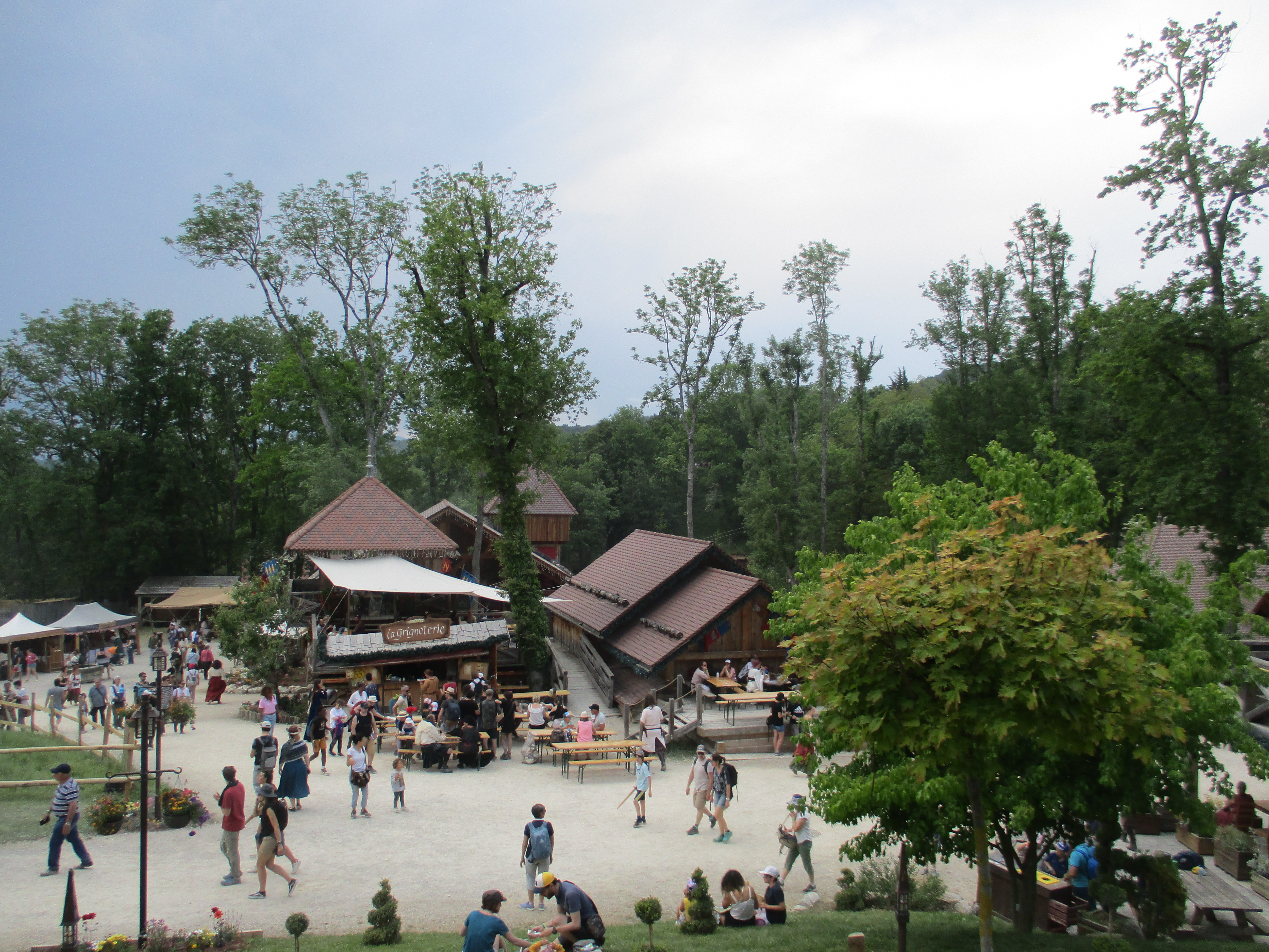 Et à 22h30, c’est le spectacle nocturne : joutes équestres, funambules au dessus de la foule, danse aériennes avec des rubans, on s’imagine bien au Moyen Age, lors des festivités organisées par les seigneurs. La foule est immense mais nous arrivons à trouver une bonne place en hauteur pour profiter de l’intégralité du spectacle, toujours aussi hypnotisant. La magie se poursuit jusqu’à la fin de la journée, puisque les bénévoles du spectacle tendent des torches aux visiteurs pour qu’ils s’éclairent jusqu’à la sortie : 16000 personnes marchant dans le même sens avec des flambeaux en main, ça fait de l’effet. Il va de soit qu’avec une telle foule, nous n’avons jamais réussi à retrouver les membres de la famille également présents dans le parc !