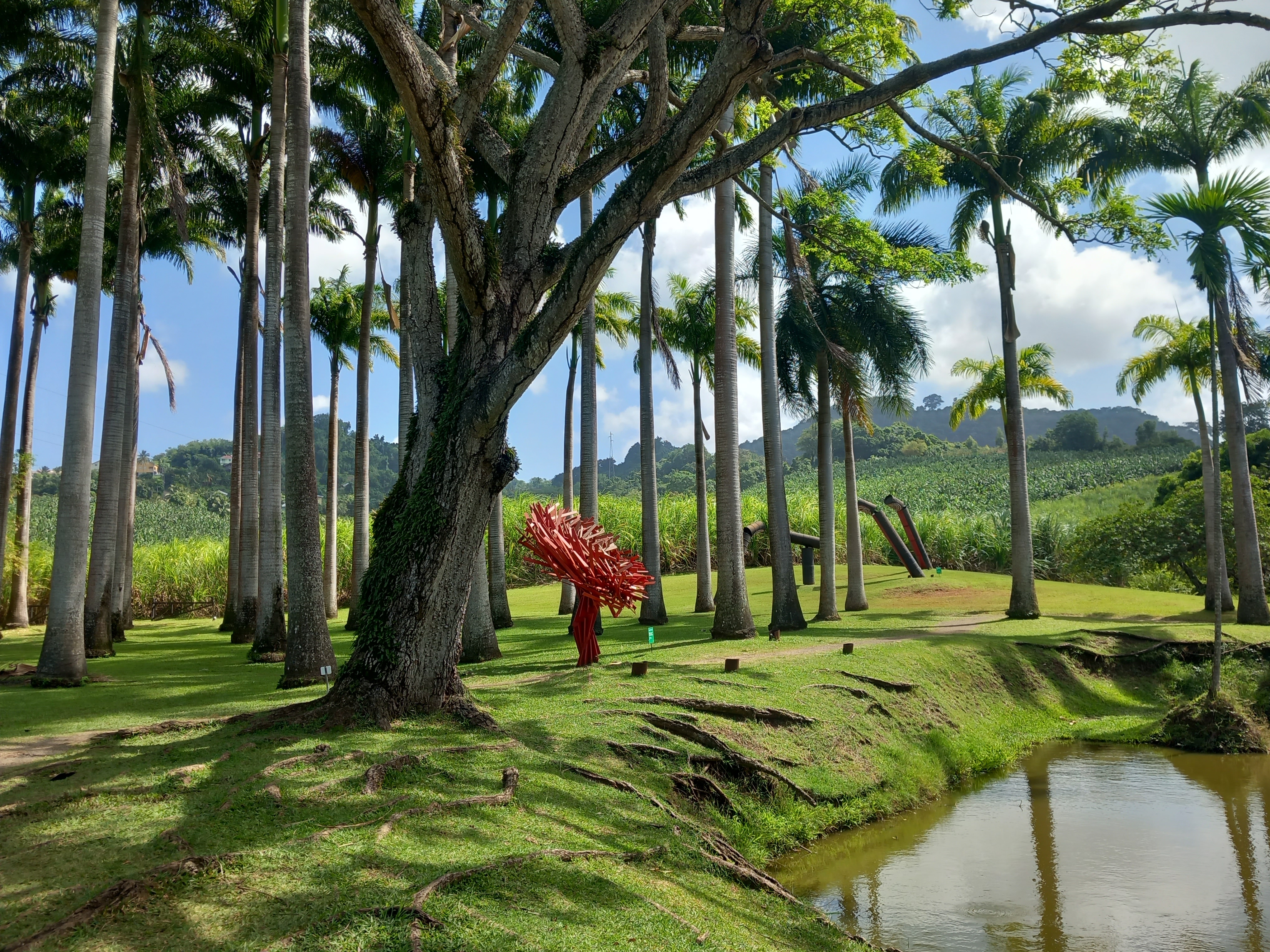 Après cette découverte intellectuelle et gustative, nous nous dirigeons vers une autre Habitation, agricole également, mais avec une particularité artistique : l’Habitation Clément, ou Habitation Acajou, sur la commune du François. Classée au titre des Monuments historiques, cette dernière abrite l’ancienne distillerie aujourd’hui transformée en musée, qui détaille les étapes de l’élaboration du rhum, des maisons créoles traditionnelles, mais surtout un jardin tropical labellisé « Jardin remarquable » en 2015 dans lequel sont dispersées de nombreuses œuvres d’art moderne.