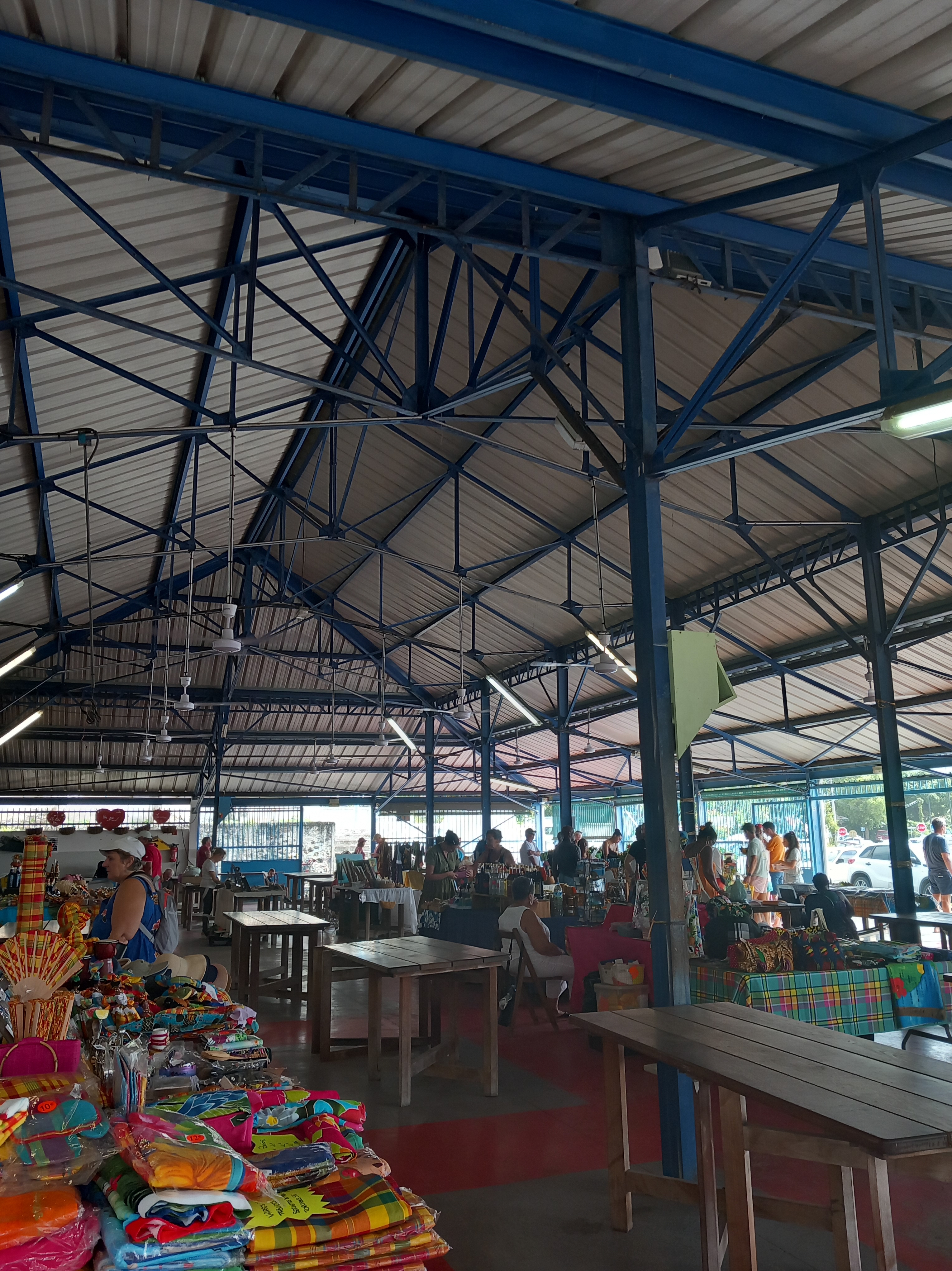 Nous terminons ensuite la journée par un petit passage par la ville de Lamentin, dont la zone industrielle héberge de nombreuses entreprises agro-alimentaires, au regard de la provenance de nombre de produits de Martinique que nous avons eu l’occasion de goûter et qui étaient fabriqués ici (et notamment la BAM, bière artisanale locale). Un petit tour devant l’église et le marché couvert, et il est déjà temps de rentrer à l’hôtel pour une petite soirée musicale proposée par le lieu avant le repas du soir. Repas qui sera d’ailleurs une épreuve pour moi, le décalage horaire de 5 heures nous tombe dessus comme une chape après cette journée de vadrouille !