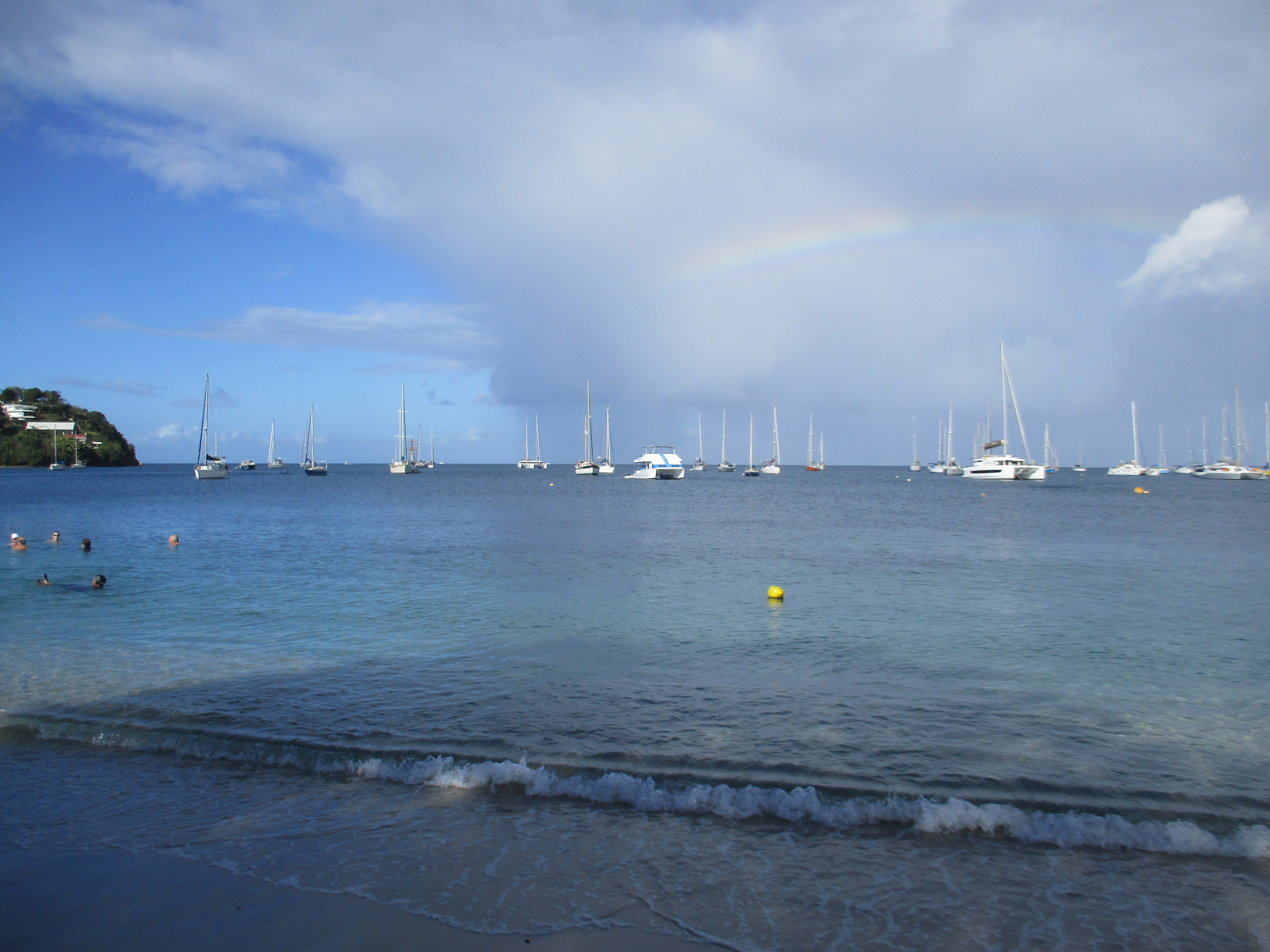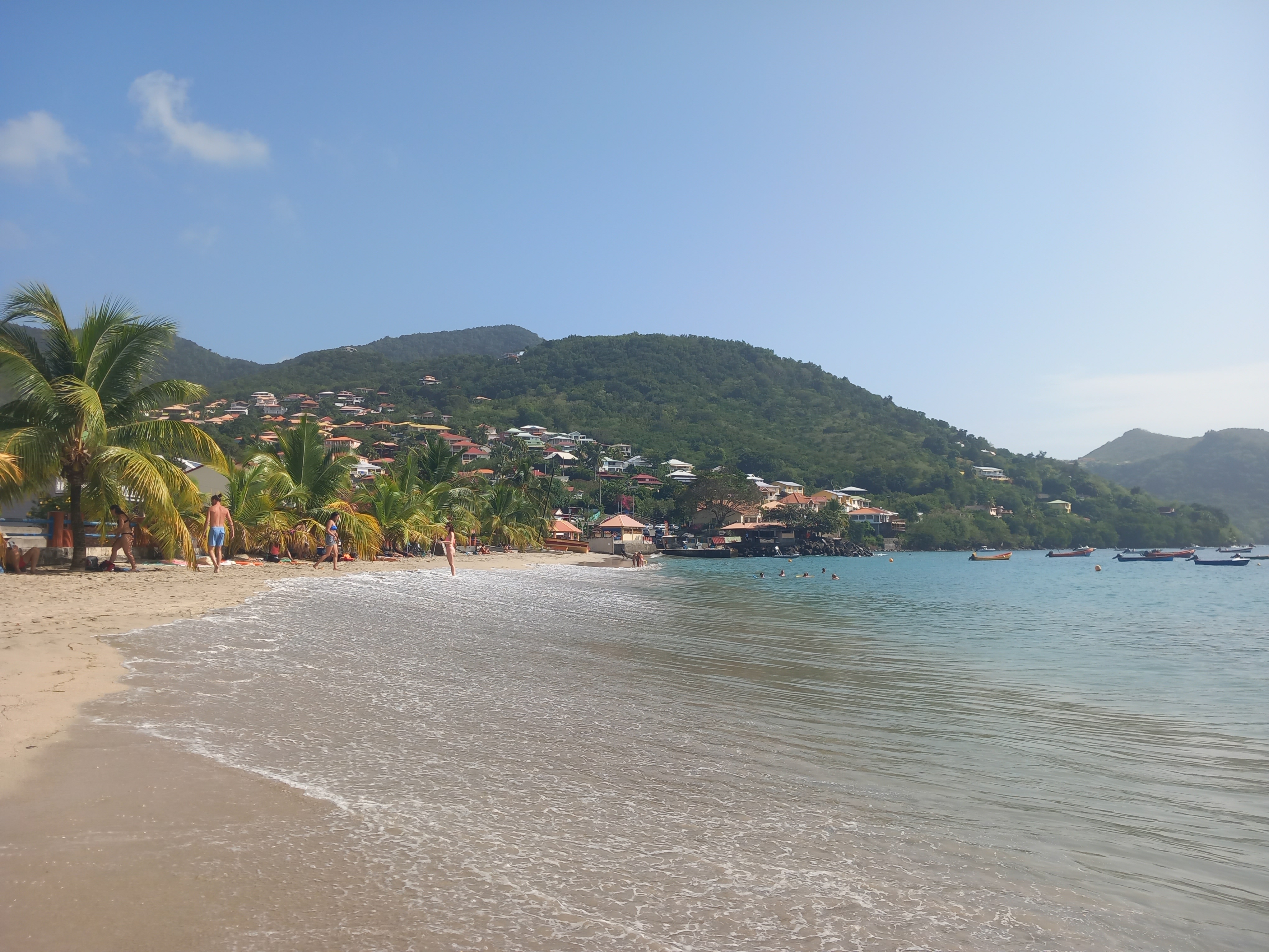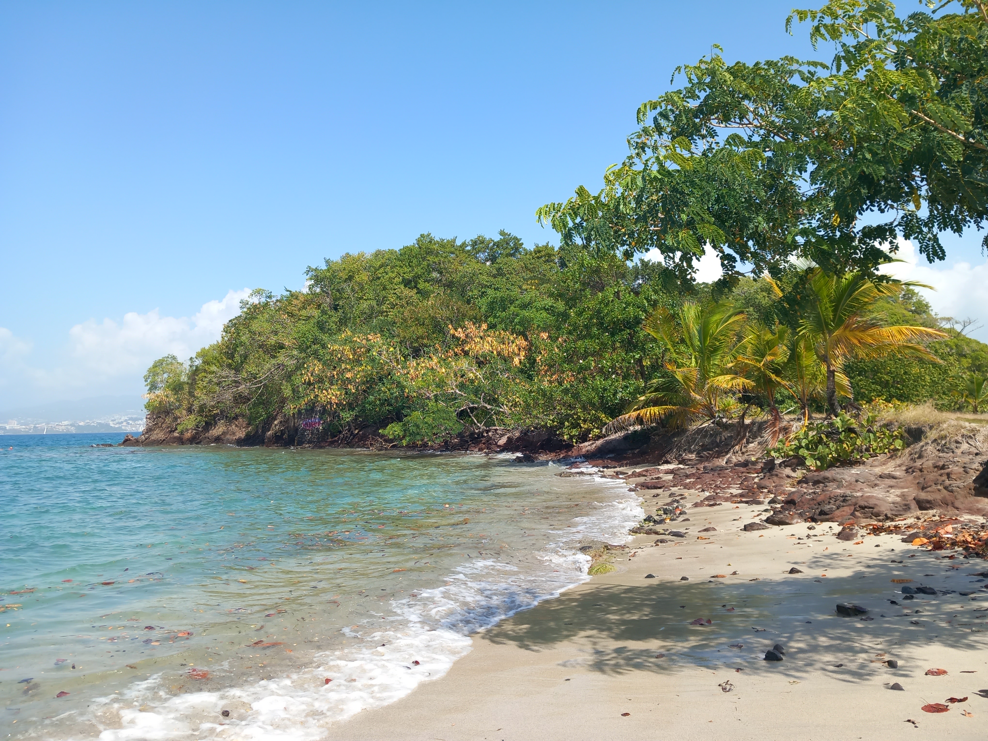 Le vol n’est qu’en soirée, et il est hors de question de gâcher notre dernière journée à penser aux modalités pratiques du retour (rien que l’idée de remettre un pantalon et des chaussures nous fait horreur). Nous profitons à fond du petit déjeuner, faisons les valises, les déposons à l’accueil de l’hôtel et décidons de nous promener aux Trois-Ilets, et même de revoir les lieux que nous avions visités le premier jour sous un ciel incertain. Nous retournons à la Pointe du Bout voir le fort abandonné sous un autre angle, plus ensoleillé, marchons le long de la plage à des endroits que nous n’avions même pas encore découverts, prenons une boisson fraiche face à la mer… Nous retournons même aux Anses d’Arlet, lieu qui nous avait tellement charmé…