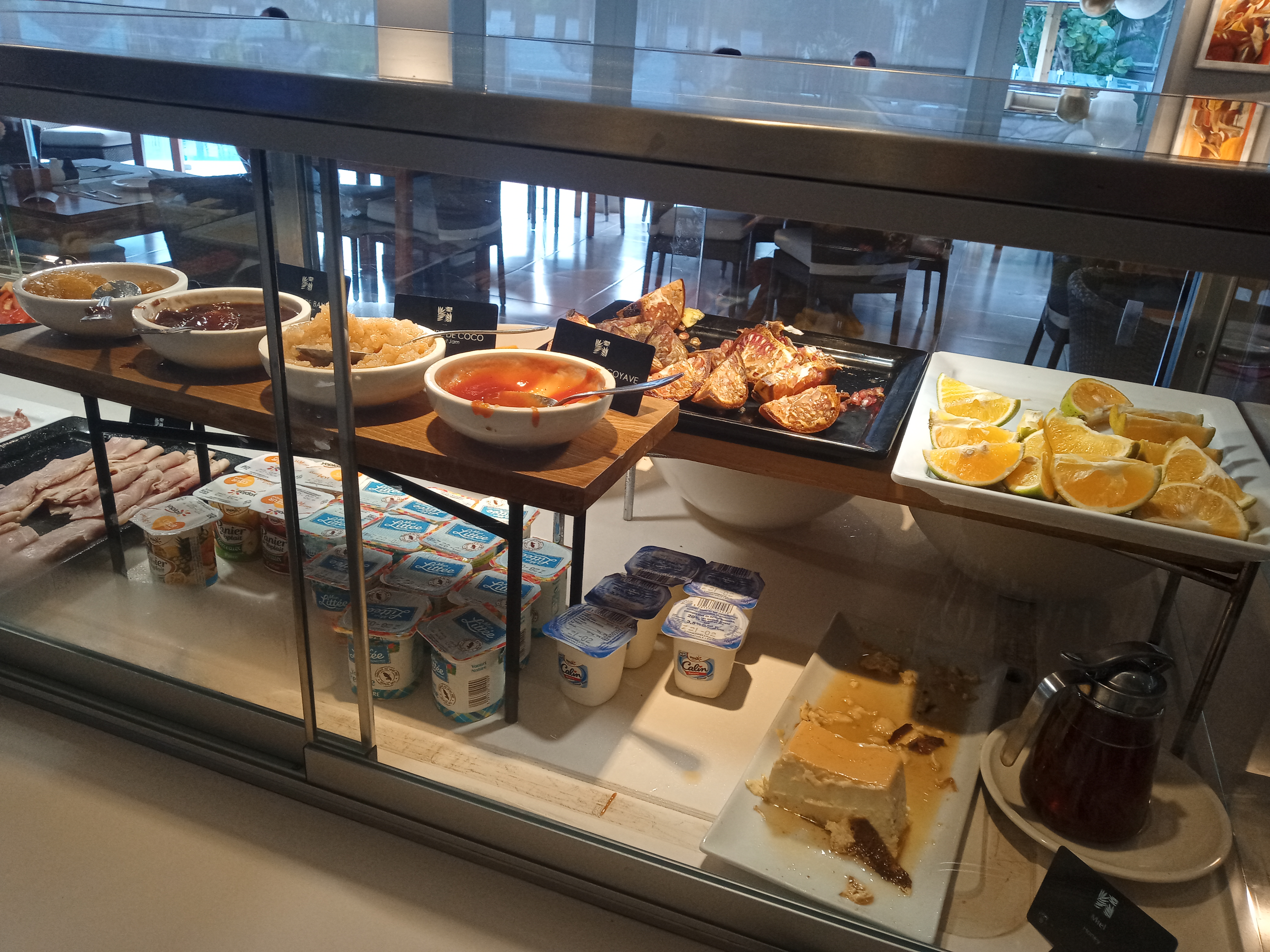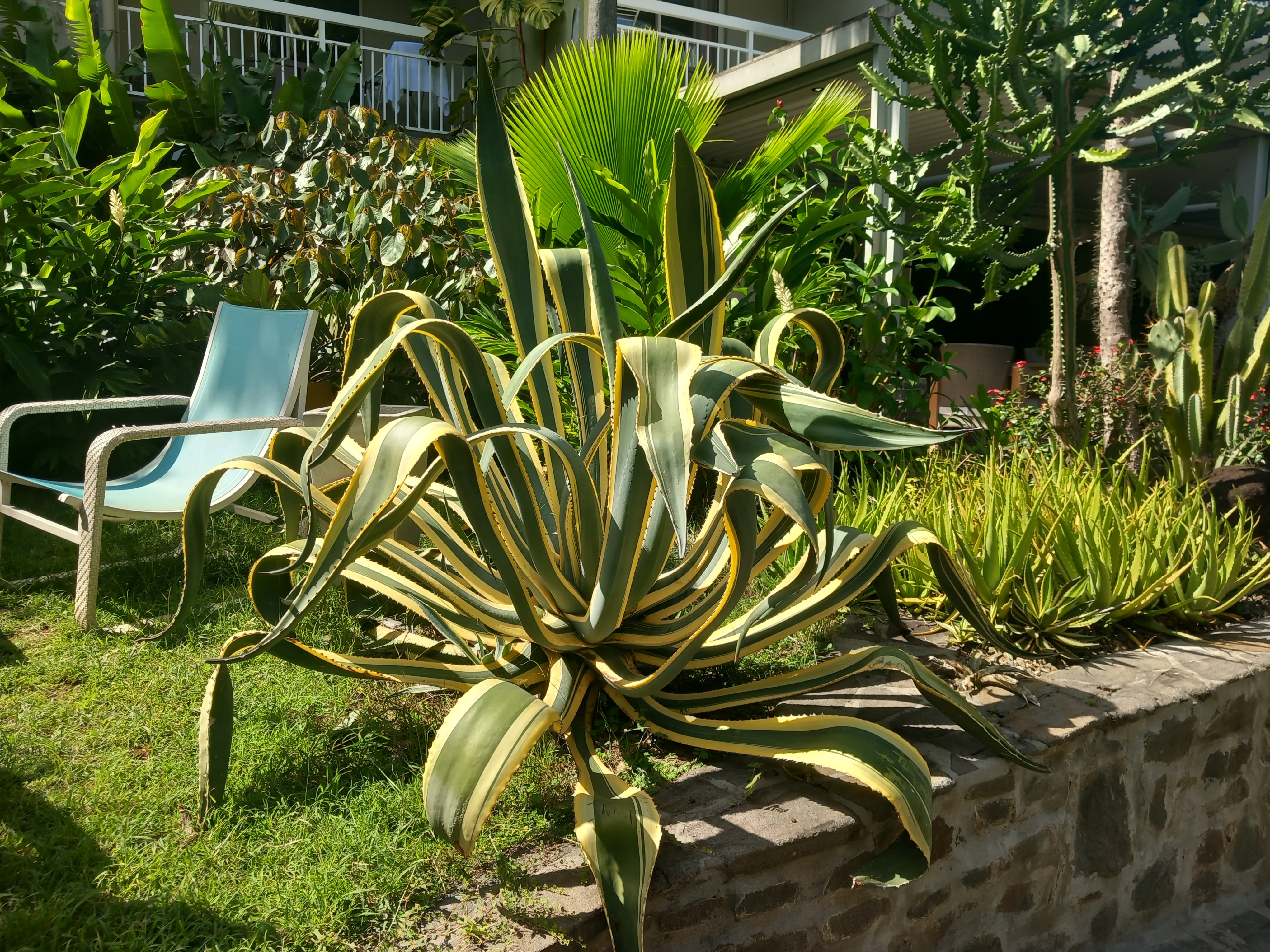 Après une nuit de sommeil très courte pour moi (en pleine forme à 4h du matin, soit 9h chez nous…), nous découvrons l’hôtel de jour, ainsi que son magnifique jardin au sein duquel la salle de restaurant se situe. Nous prenons donc notre petit-déjeuner en compagnie d’oiseaux (un peu chapardeurs), au pied de cactus, de succulentes et de plants d’ananas. Le menu est fabuleux : des fruits exotiques, des gâteaux faits maison, des salades de poisson, de viande, des jus de fruits locaux… Il y a évidemment également du bacon avec des œufs brouillés ainsi que des viennoiseries pour les européens en manque de chez eux, n’en doutez pas ! De notre côté, nous nous sommes gavés de fruits pendant tout le séjour.