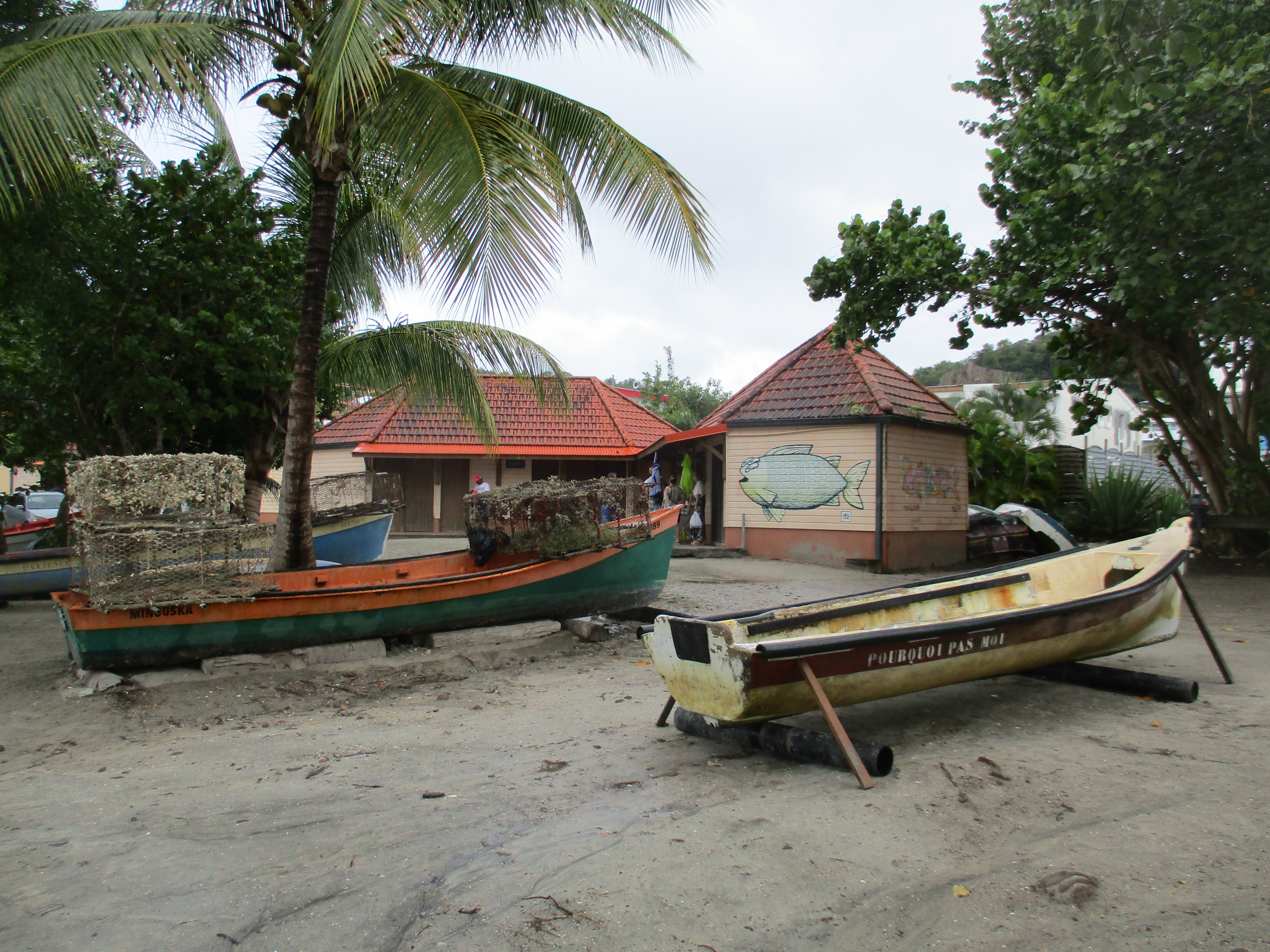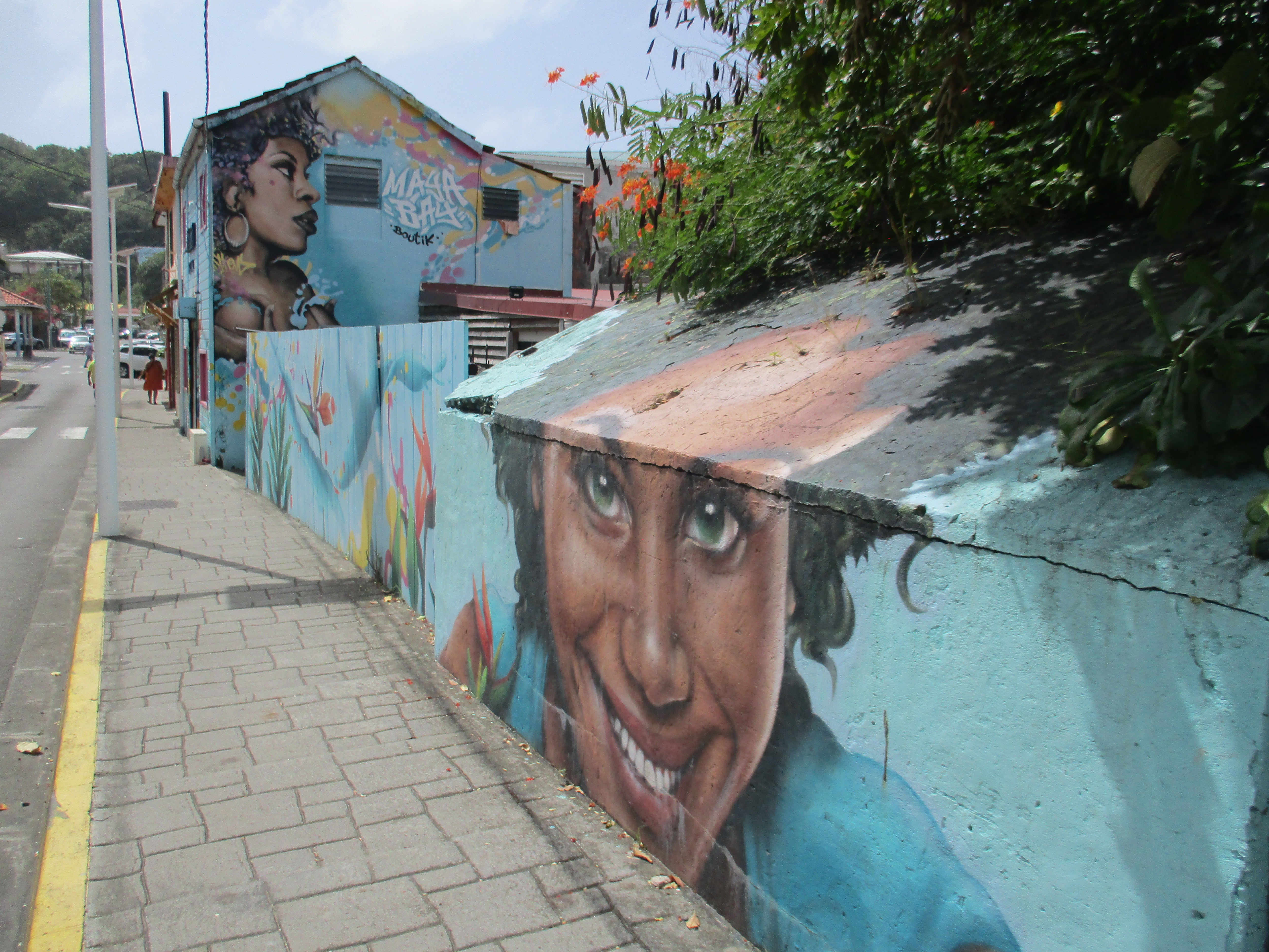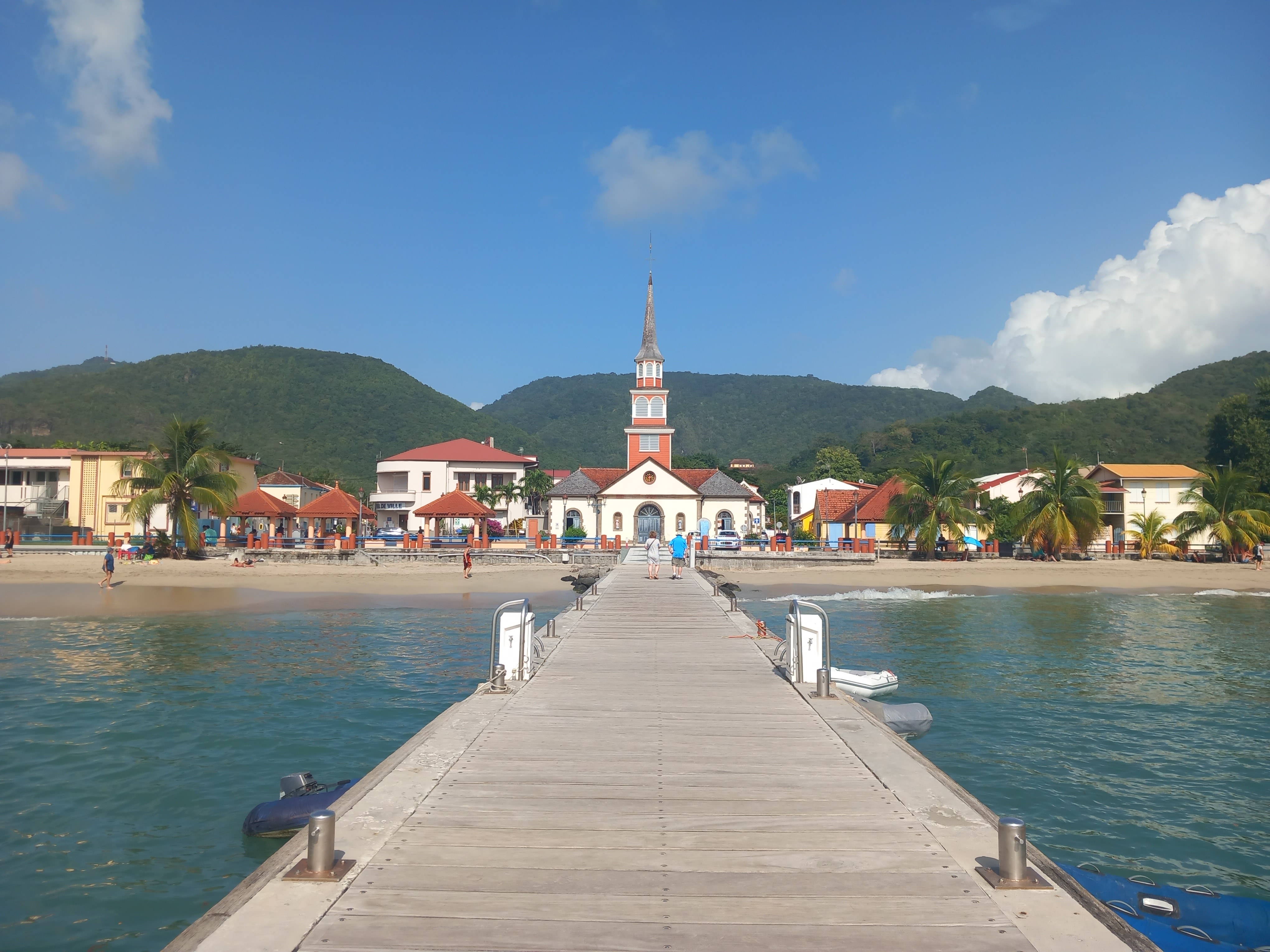 Nous nous dirigeons ensuite vers la commune de Sainte-Anne afin de tout simplement nous promener au soleil dans une cité balnéaire, en ce dernier jour complet sur l’île… Nous découvrons la jolie petite église ouverte, déambulons sur le front de mer, achetons quelques souvenirs (dont les cartes postales, il était temps). De nombreux murs peints ornent les façades, ce qui ajoute au charme de cette charmante ville.