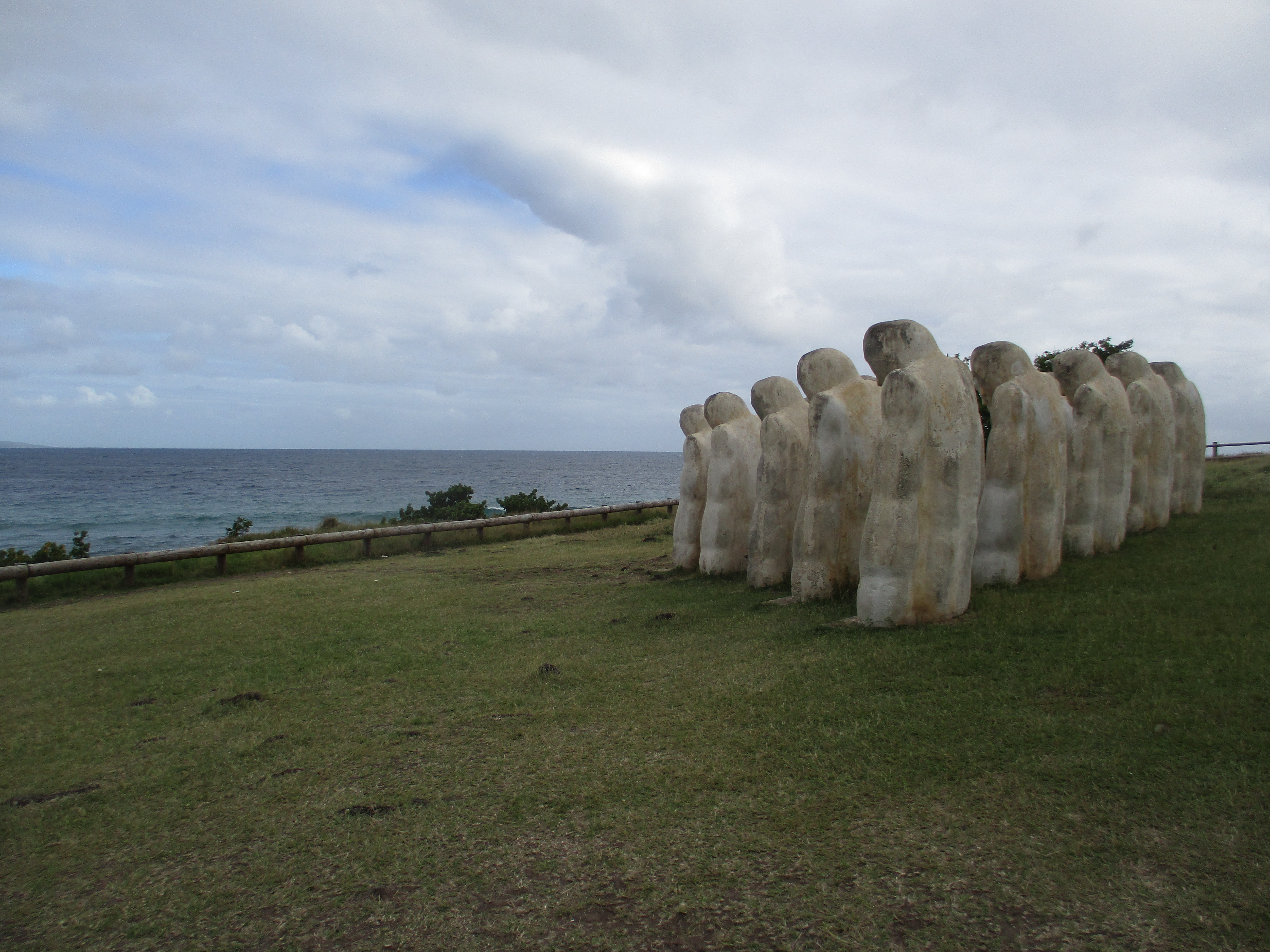 Et pour poursuivre la journée avec un peu plus de légèreté, nous nous dirigeons vers la commune du Diamant afin d’enfin dire bonjour à l’océan. Mais avant cela, nous passons par le Mémorial de l’Anse Cafard, dit Cap 110 : on y voit quinze statues de 2,50 mètres tournées vers l’horizon, lesquelles rendent hommage aux innombrables victimes de la traite des noirs durant l’esclavage. Un navire négrier a en effet coulé à cet endroit précis en 1830 alors que le commerce triangulaire était déjà interdit, et il n’y a quasiment eu aucun survivant…