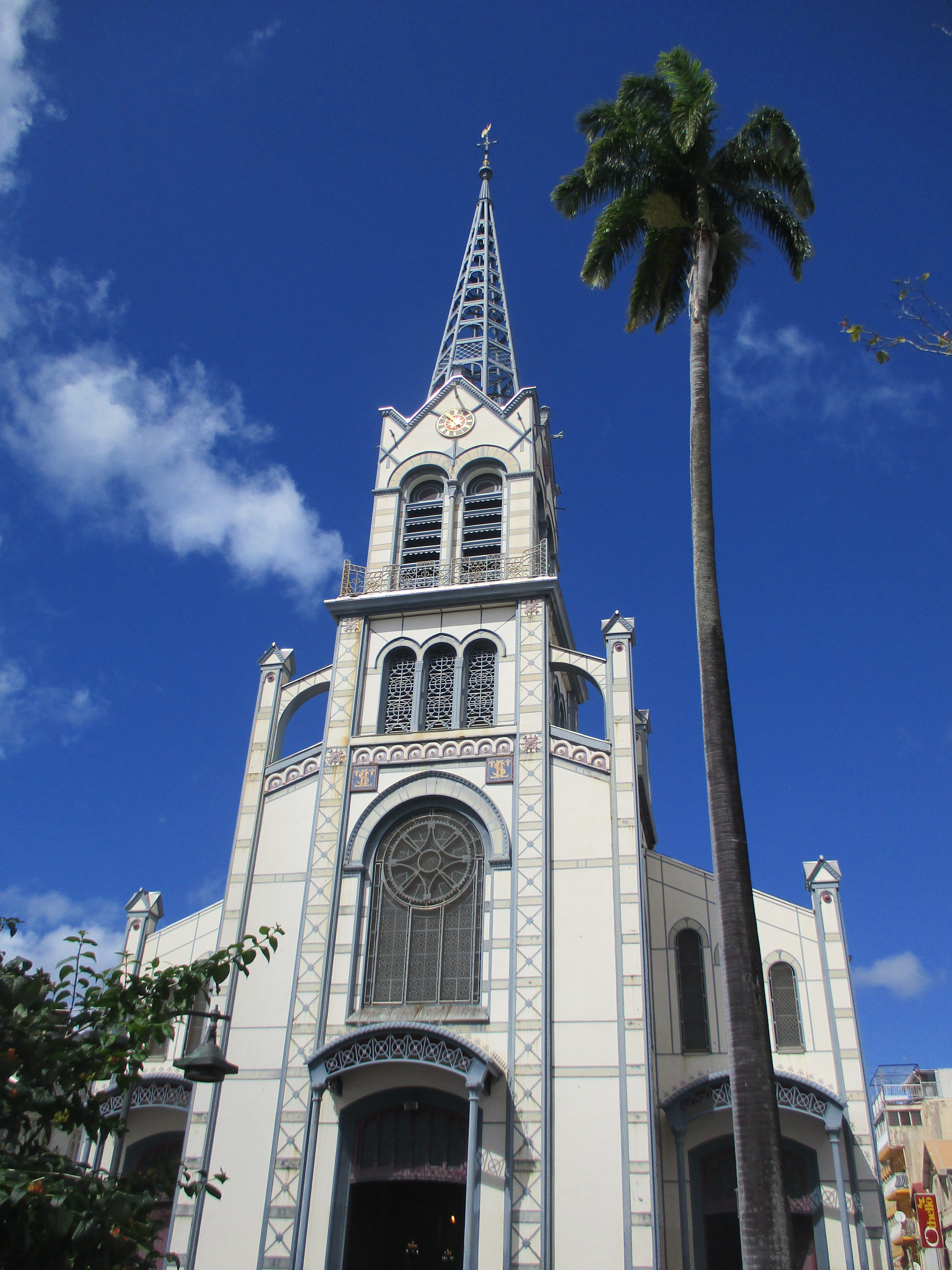 Pour ce lundi matin, nous décidons de nous diriger vers Fort-de-France, « capitale » de la Martinique. Nous choisissons volontairement ce jour afin d’éviter les hordes de touristes attirés par le marché (même si, du même coup, nous renonçons à ce dernier). Et bien nous en a pris puisque nous avons non seulement pu nous garer à deux pas de la cathédrale, mais en plus nous promener sereinement dans toute la ville pour pouvoir admirer les bâtiments sans être bousculés.