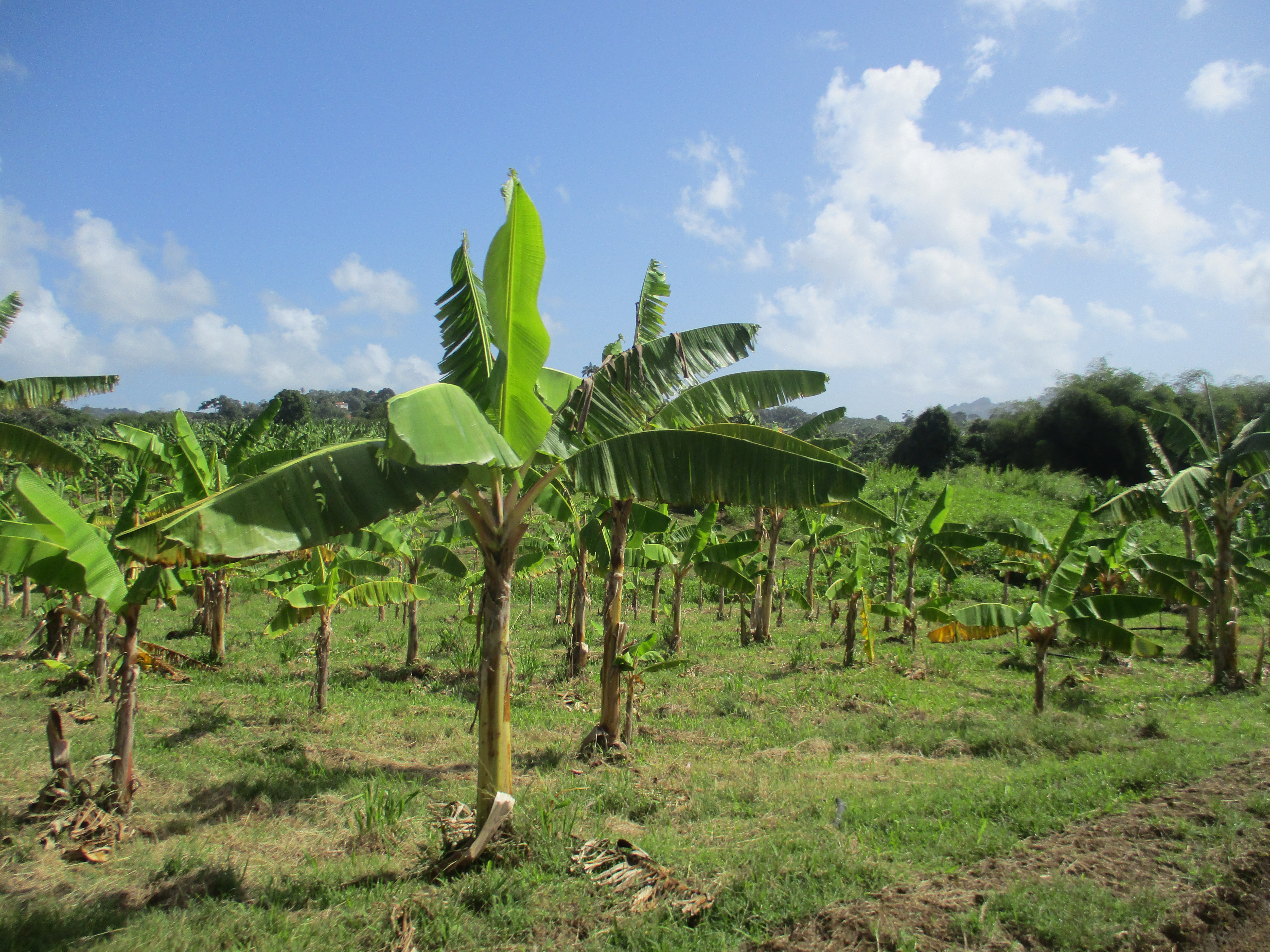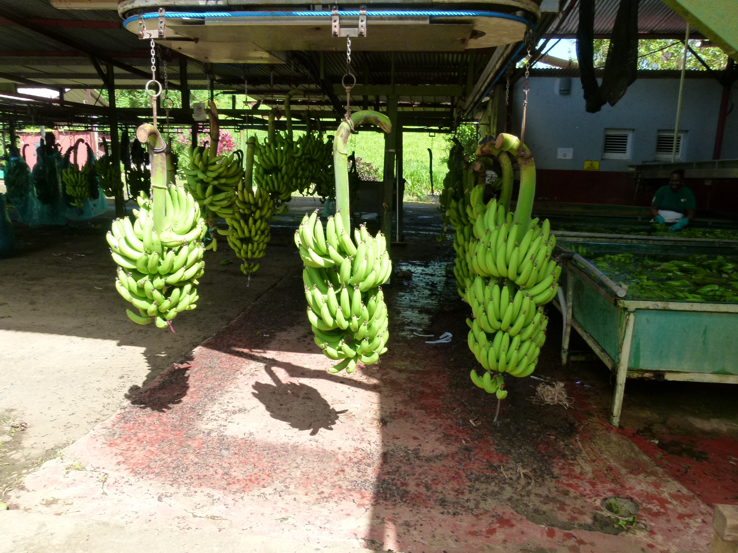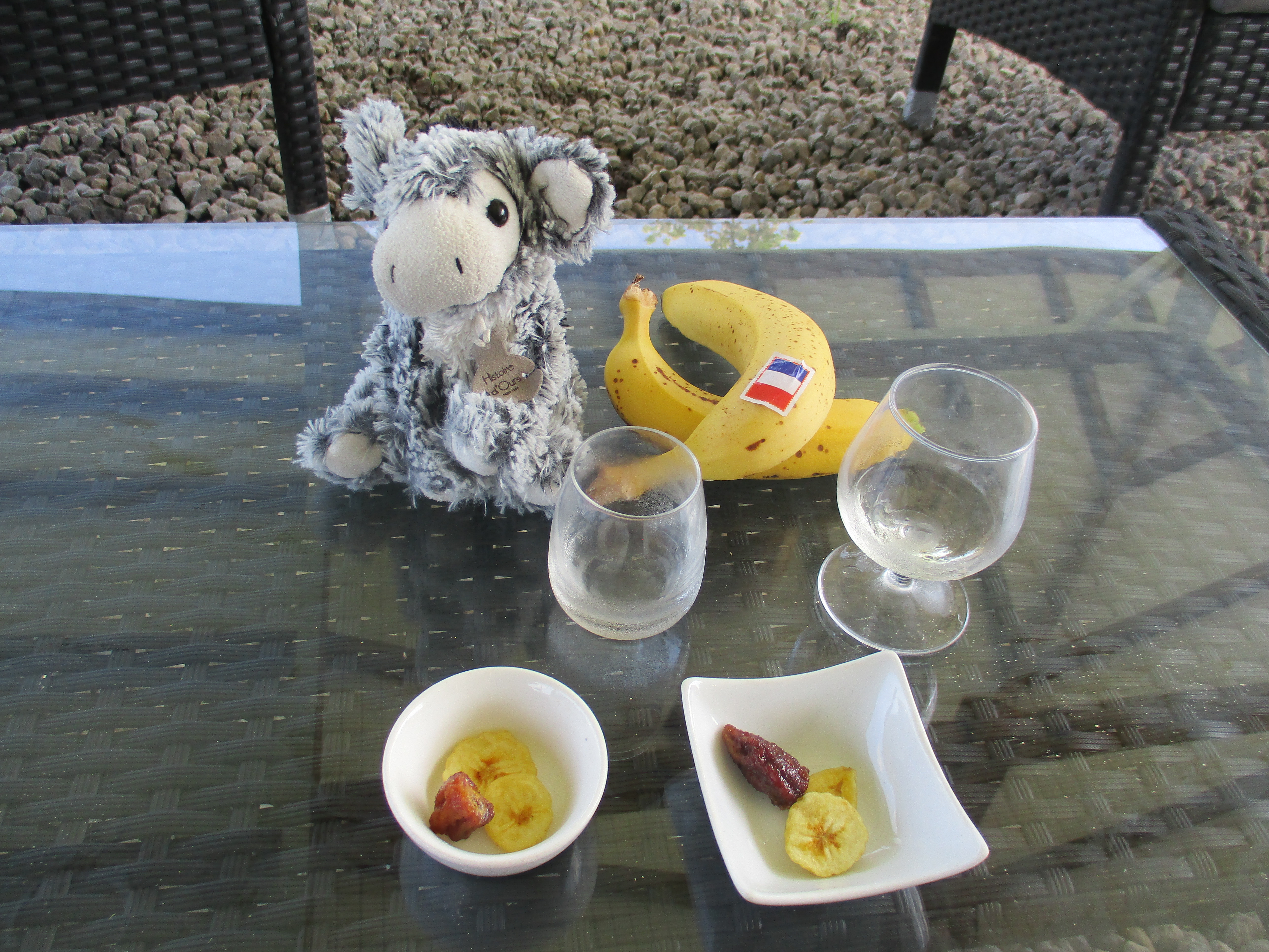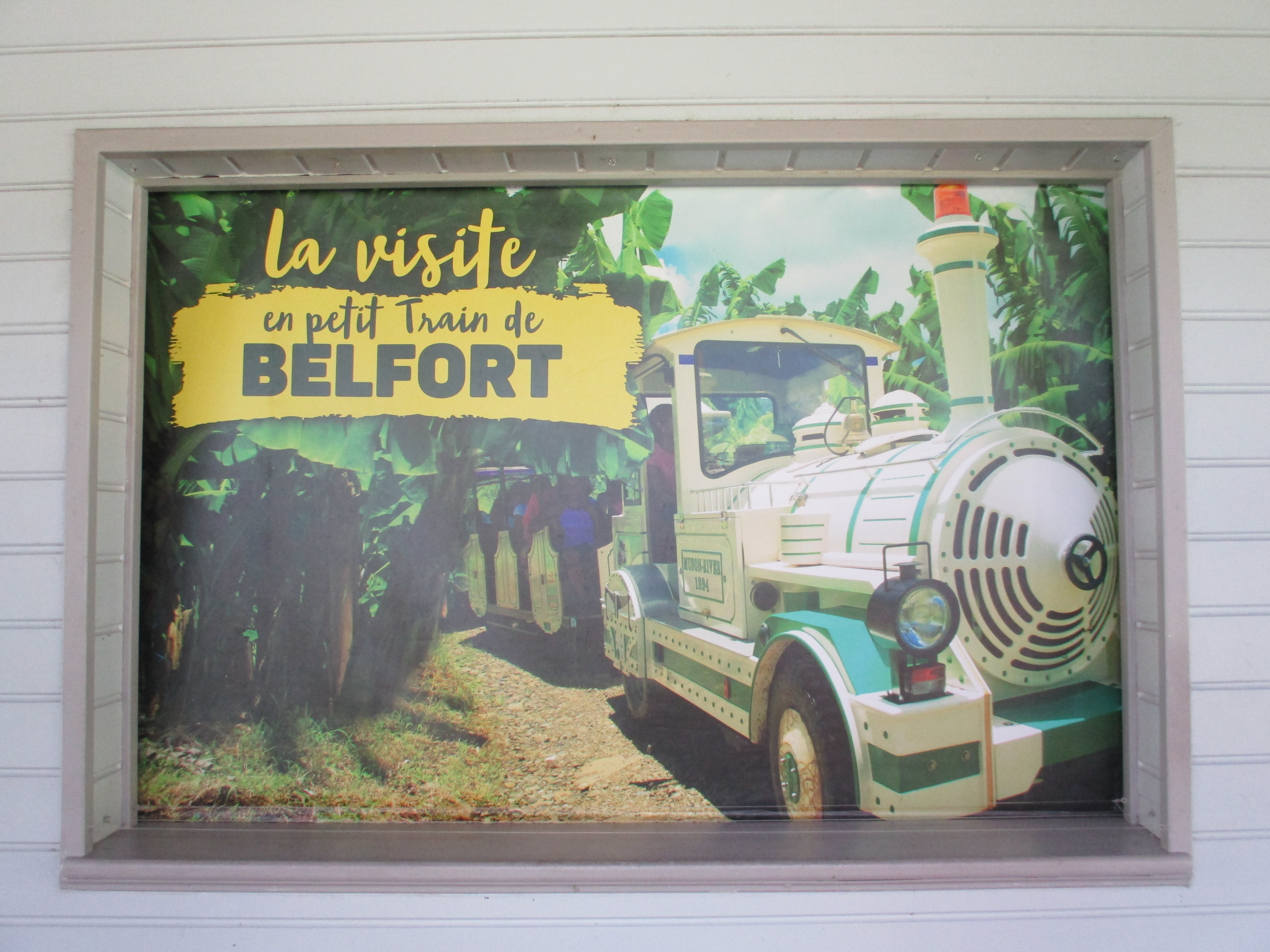 Ce sixième jour débute par la visite d’un lieu qui était un incontournable pour moi : nous avons réservé en ligne nos billets d’entrée pour une visite de Belfort ! Mais, évidemment, pas Belfort dans le Territoire du même nom, mais une Habitation, une plantation de bananes précisément. Un petit train ressemblant traits pour traits à celui que je connais dans « mon » Belfort nous a donc promené au cœur de la propriété pour une visite guidée extrêmement intéressante : nous avons tous appris (ou alors nous étions les deux seuls incultes du wagon) qu’un bananier n’est pas un arbre… mais une herbe ! Je n’avais personnellement aucune idée de la manière dont poussait une banane, ni du processus de sélection et de commercialisation de ce fruit, et nous avons pu découvrir tout cela grâce à la présentation d’un guide passionnant. La visite dure environ 1 heure et se conclut par une dégustation, en boutique, de différents produits à base de banane proposés à la vente : bananes de Martinique (ou de Guadeloupe, nous apprenons ici que le label est commun aux deux îles), vin de banane, banane séchée… Nous ne résistons pas à quelques achats, et faisons entre autres l’acquisition d’un sirop de piment réalisé sur site qui ne manquera pas d’égayer nos cocktails au retour en métropole (edit : au fond d’un verre de crémant, c’est fameux !)