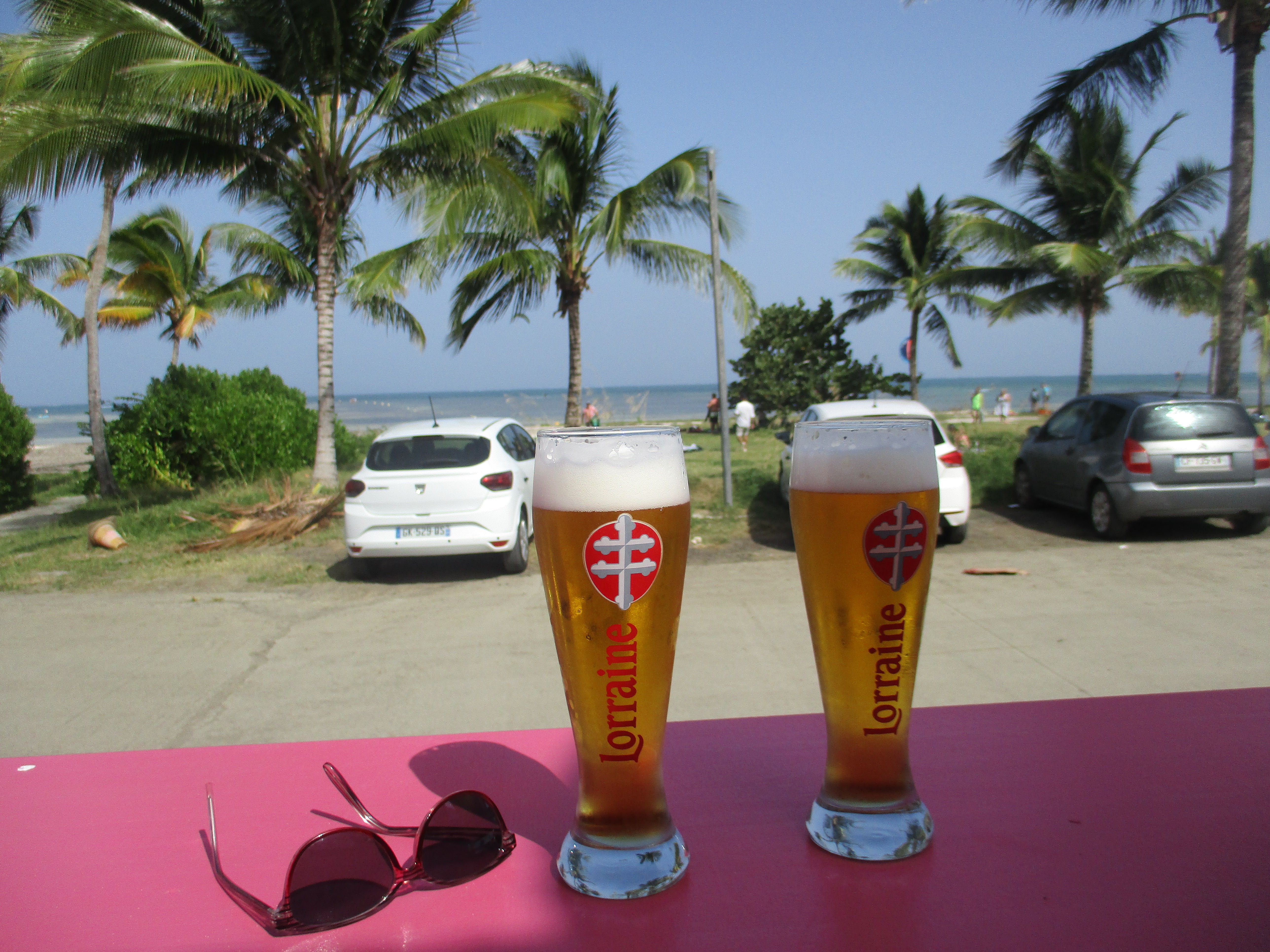 Direction maintenant le Vauclin pour notre avant-dernière destination de la journée : après un petit tour dans le port de pêche, nous roulons vers la pointe Faula afin de nous gorger de beaux paysages. La plage est en effet assez particulière, moins « image de carte postale » et beaucoup plus vivante, avec des algues, du vent… l’ambiance nous convient parfaitement ! Nous marchons au bord de l’eau, nous observons les kite-surfeurs installer leur matériel, et nous prenons finalement une bière à la terrasse du Titiri Rose face à l’océan (bar que nous avions découvert dans la revue « Choubouloute » distribuée à l’aéroport et qui nous a accompagnée durant tout le séjour).