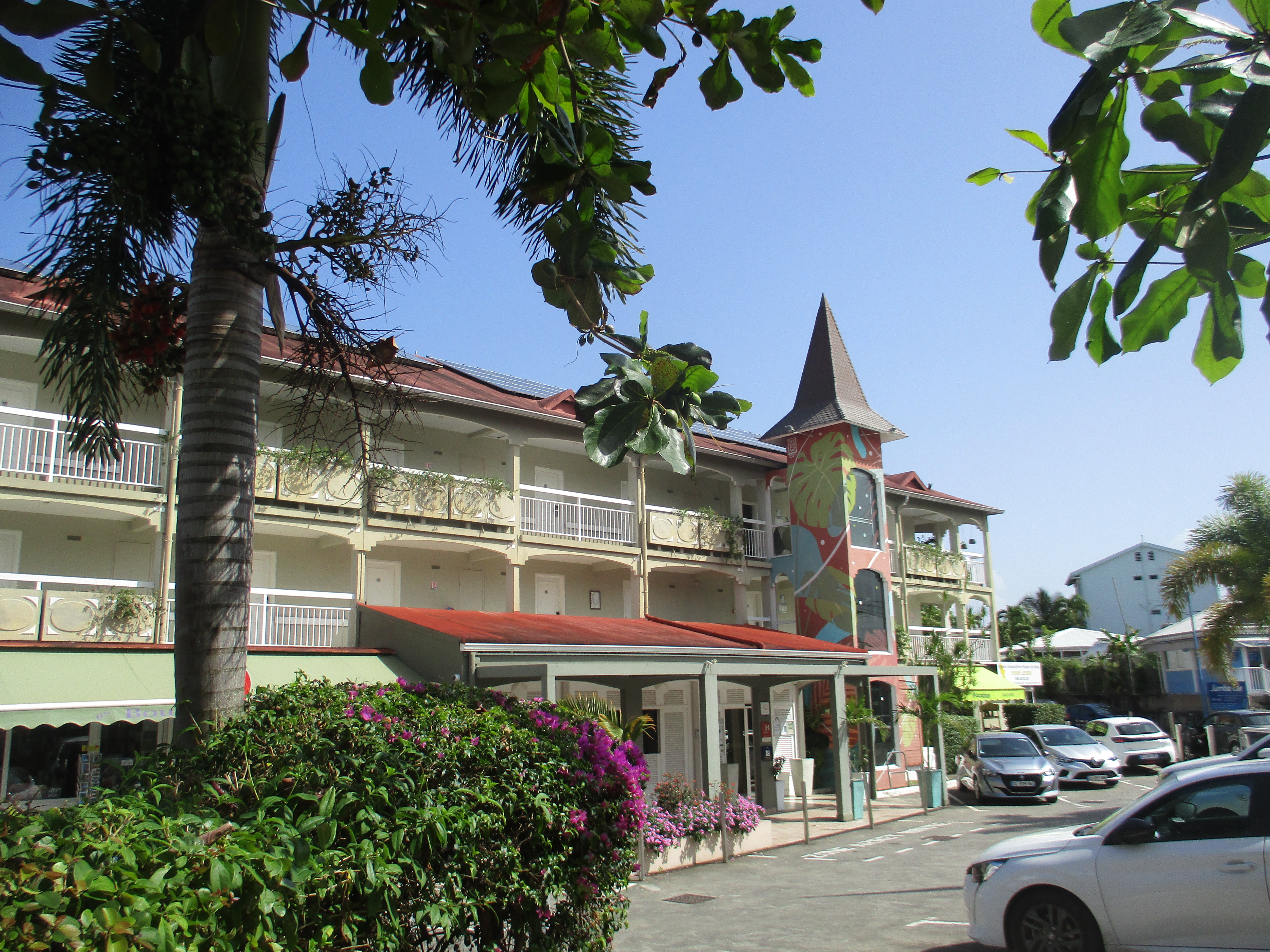 Nous testons ensuite notre vaillante voiture de location (qui ne se doute pas un seul instant de ce qu’on va lui faire vivre durant une semaine) et nous dirigeons vers le centre-bourg des Trois-Ilets afin de visiter l’église Notre Dame de la Bonne Délivrance et de déambuler dans les rues du village.