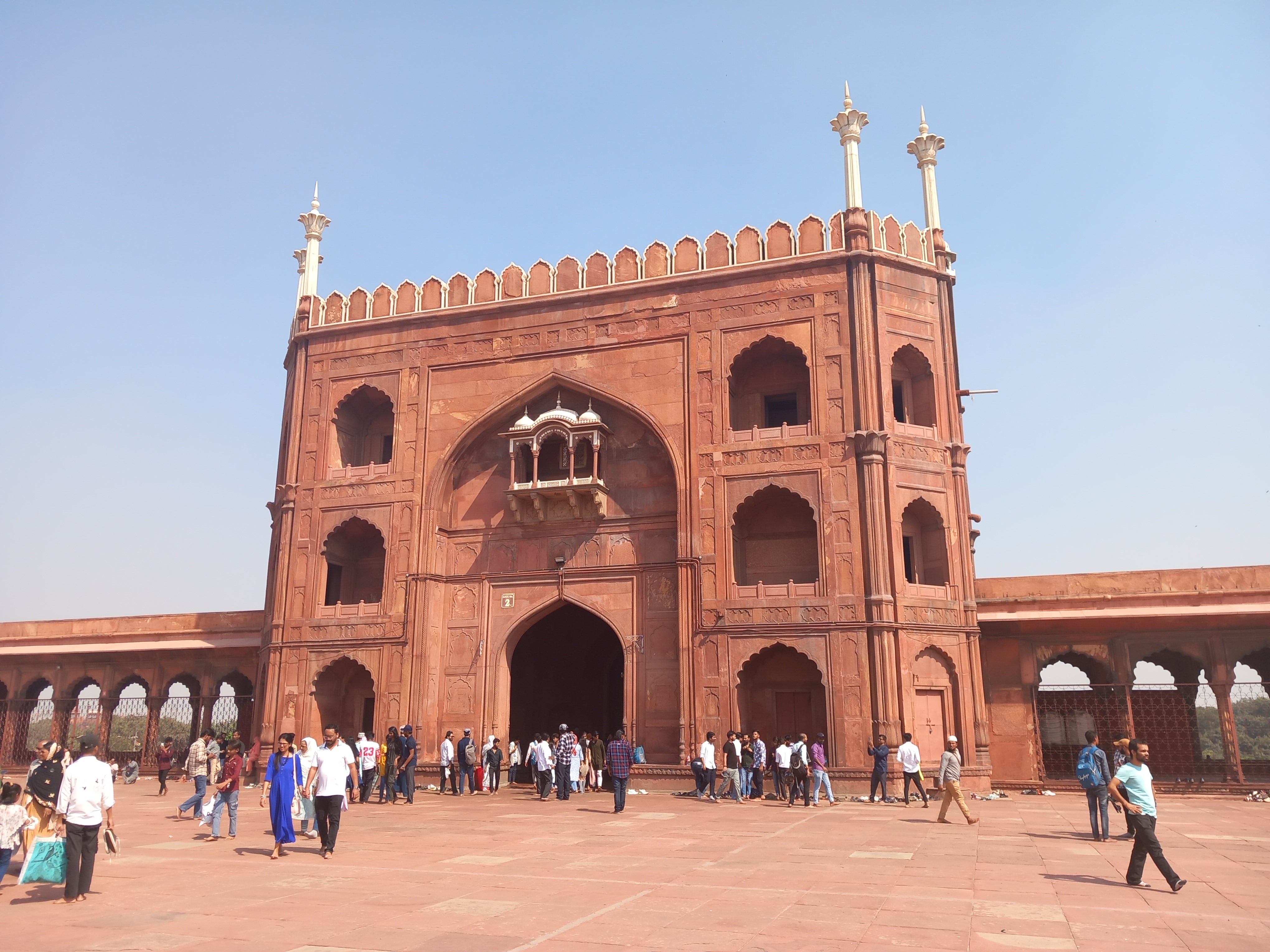 L’architecture est superbe, nous en prenons plein les yeux pour notre premier site du voyage : des bâtiments immenses tout de grès rouge et de marbre, deux minarets, trois grandes portes ornées de motifs végétaux… Une merveille pour les yeux.