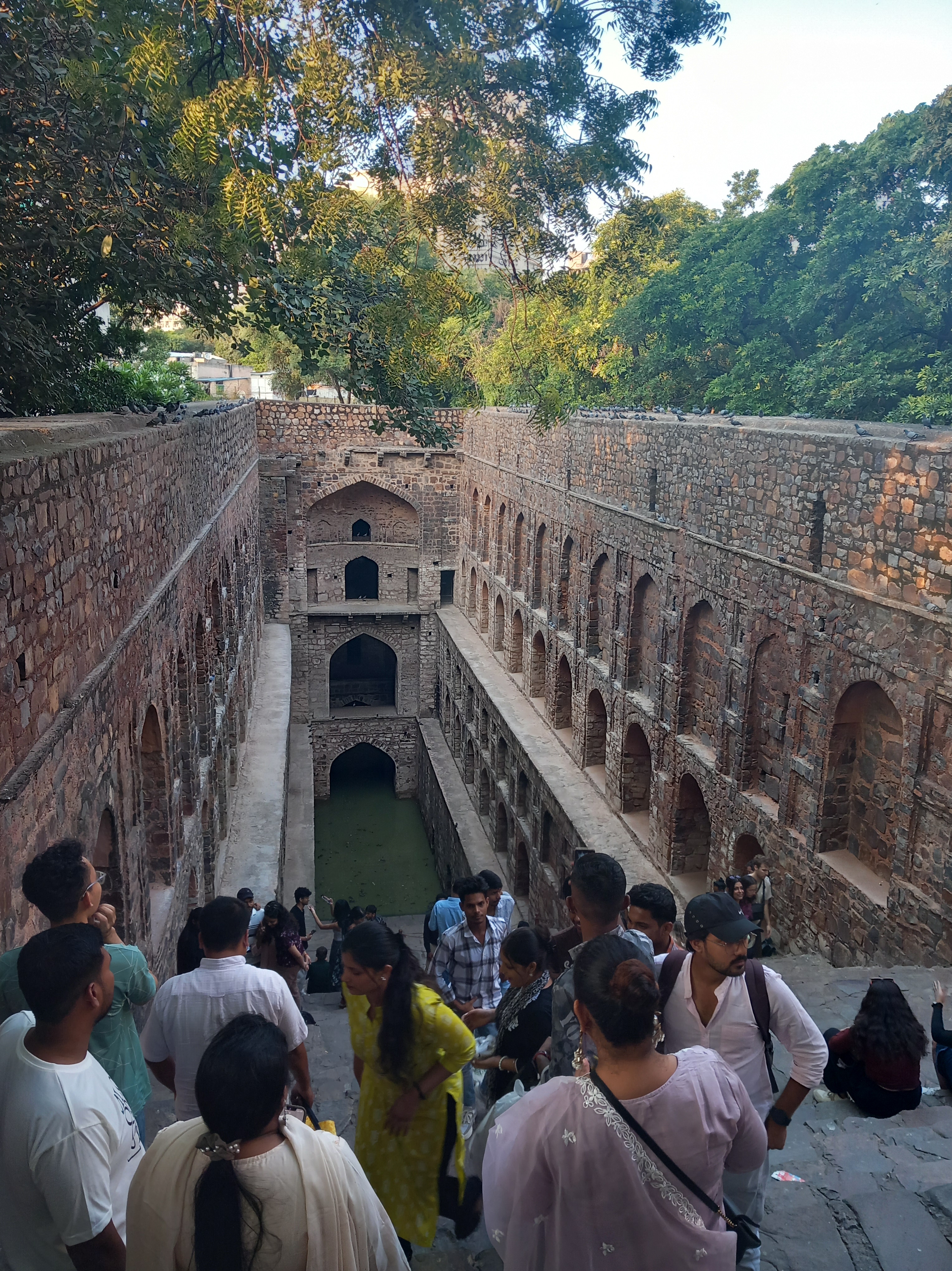 Après une pause bien méritée pour le repas de midi dans un petit restaurant traditionnel (je découvre un plat de lentilles en sauce absolument fameux), nous nous rendons à une citerne d’eau monumentale, la Ugrasen ki Baoli, de 60 mètres de long et 15 de profondeur, un lieu extrêmement paisible où les locaux viennent s’assoir pour passer un peu de bon temps (et précision : non, il n’y a pas de moustiques)