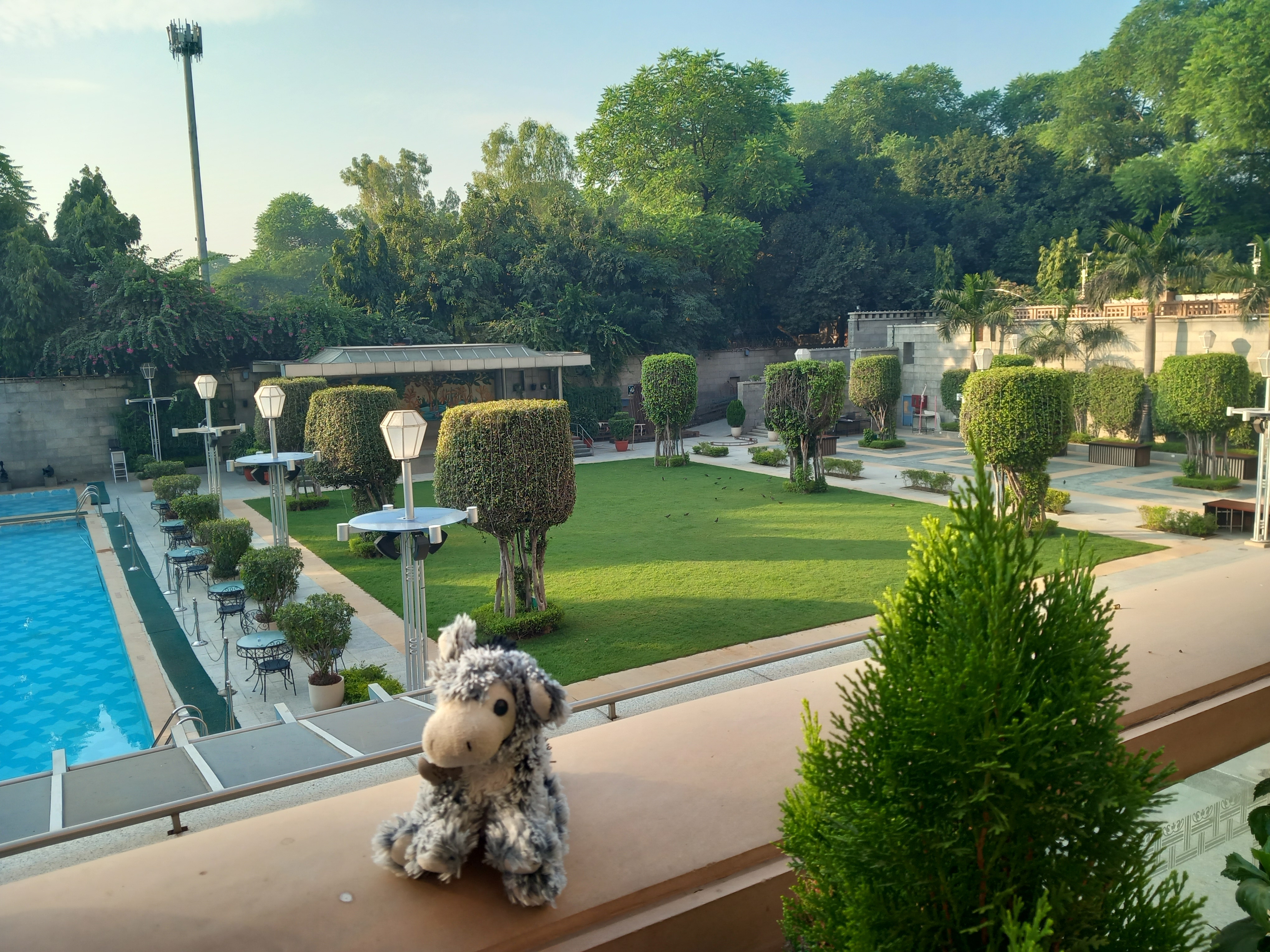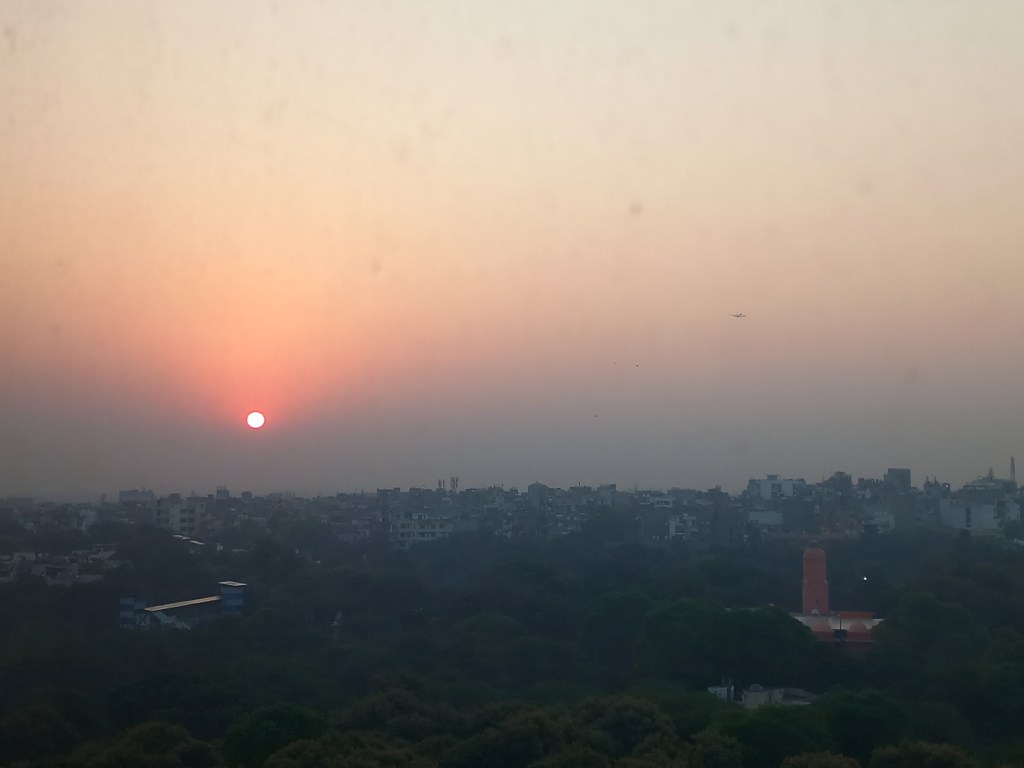 Cette première journée s’achève par un retour à l’hôtel, le Jaypee Vasant Continental, pour une bonne nuit de sommeil qui débute à… 19h et se termine à 5h du matin (nous, fatigués ?Qu’est ce qui vous fait dire ça ?), pour un superbe lever de soleil sur le parc mitoyen depuis notre chambre du 6ème étage. C’est d’ailleurs le seul lever que nous pourrons voir du séjour, du fait de notre orientation ou tout simplement de la brume environnante permanente…