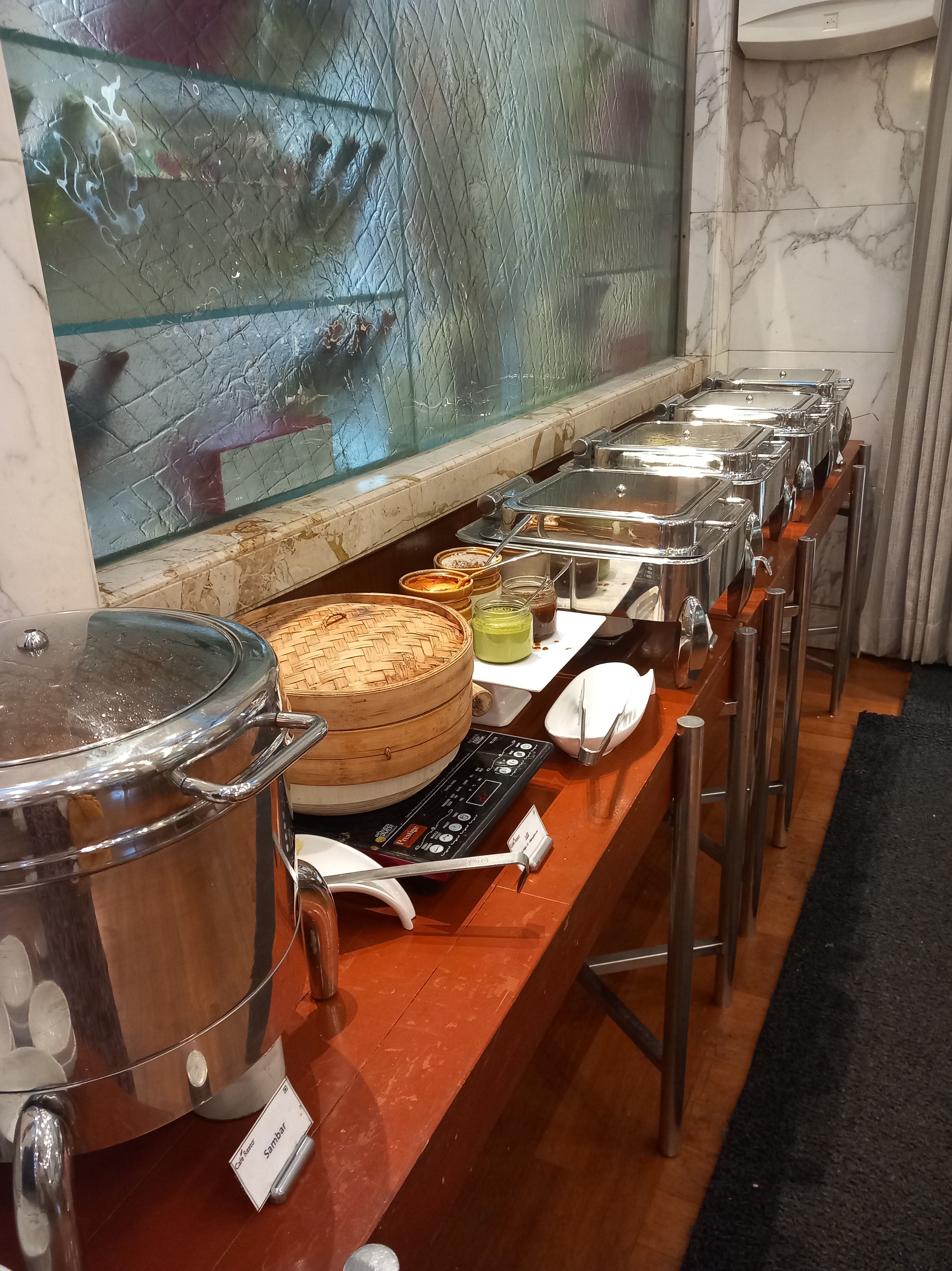 Comme à notre habitude, nous profitons à fond du buffet du petit déjeuner. Déjà parce que depuis midi la veille, nous avons faim ; ensuite parce qu’on sait quand on mange, pas quand on remangera ; et surtout parce que le choix est incroyable et local. L’objectif : goûter les plats dont nous ne connaissons pas le nom ! Nous sommes tout de même un peu frustrés par les consignes sanitaires qui nous ont été assénées en amont de notre séjour et par le guide la veille : attention aux fruits frais qui auraient pu être lavés avec de l’eau du robinet, attention aux jus de fruits, attention aux yaourts… Nous ne prenons aucun risque, bien que l’expérience et les jours passant nous apprendront à lâcher un peu prise sur la question de l’alimentation.