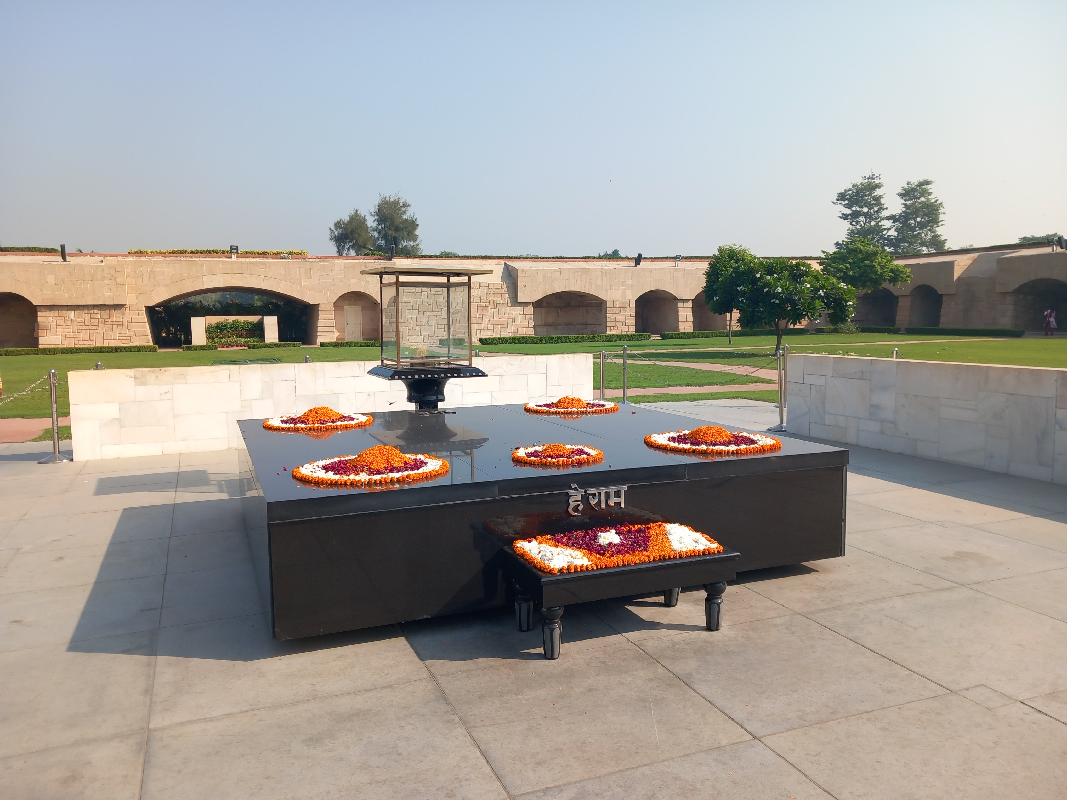 Cette deuxième journée débute par un moment extrêmement émouvant, dans un lieu très paisible situé au cœur d’un parc : le mausolée de Mahatma Gandhi, sur le site exact où son bûcher funéraire s’est tenu. Le guide est lui-même ému en nous présentant la vie de ce personnage illustre, et les quelques minutes dont nous disposons pour circuler dans le lieu passent à toute vitesse.