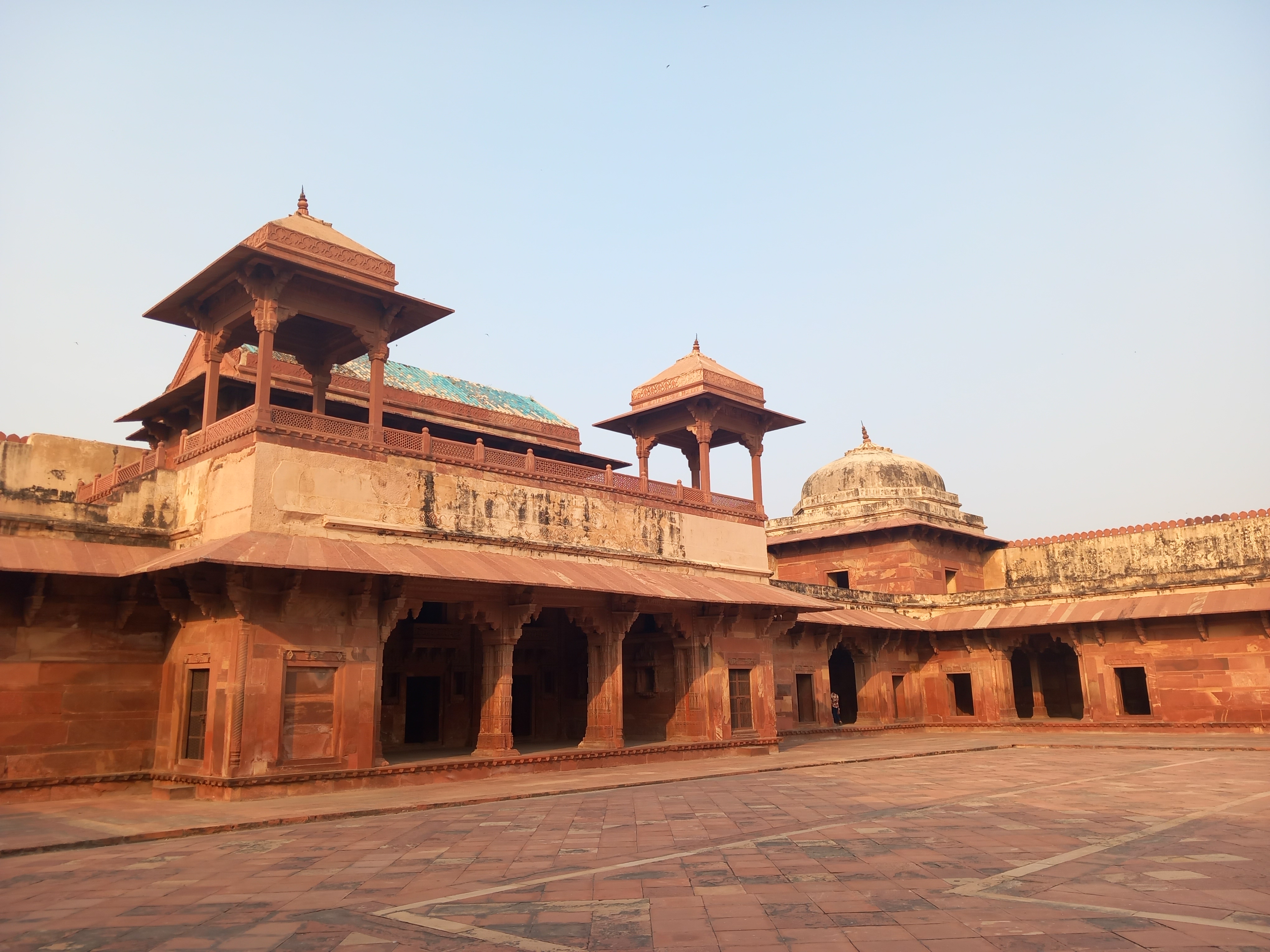 De toutes les personnes qui se sont laissées convaincre d’aller voir ce site, aucune n’est revenue déçue. Je dirais même que c’est mon site préféré de tout le séjour, tellement le lieu est juste beau et paisible. Moins « tape à l’œil » que ses camarades d’Agra, plus isolée, la « ville de la victoire » a tout de même été capitale de l’Empire Moghol au XVIe siècle ! Construite par l’Empereur Akbar (le même que celui qui a transformé le Fort rouge) sur un plateau rocheux, elle est encerclée d’un mur d’enceinte et accueille une dizaine de temples, mosquées et palais tous plus beaux les uns que les autres. Avantage pour les touristes asociaux que nous sommes : le calme absolu du site, visité uniquement par des personnes isolées, on quitte totalement le tourisme de masse du matin pour rejoindre un lieu de contemplation.