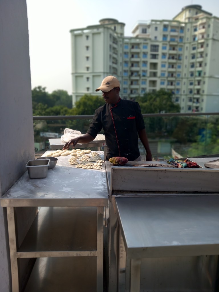 Et en plus, nous pouvons assister à la confection du naan (une sorte de galette de pain à base de farine de blé et cuite directement sur la paroi du four) directement sur le Rooftop, on ne s’est pas privé d’aller admirer !