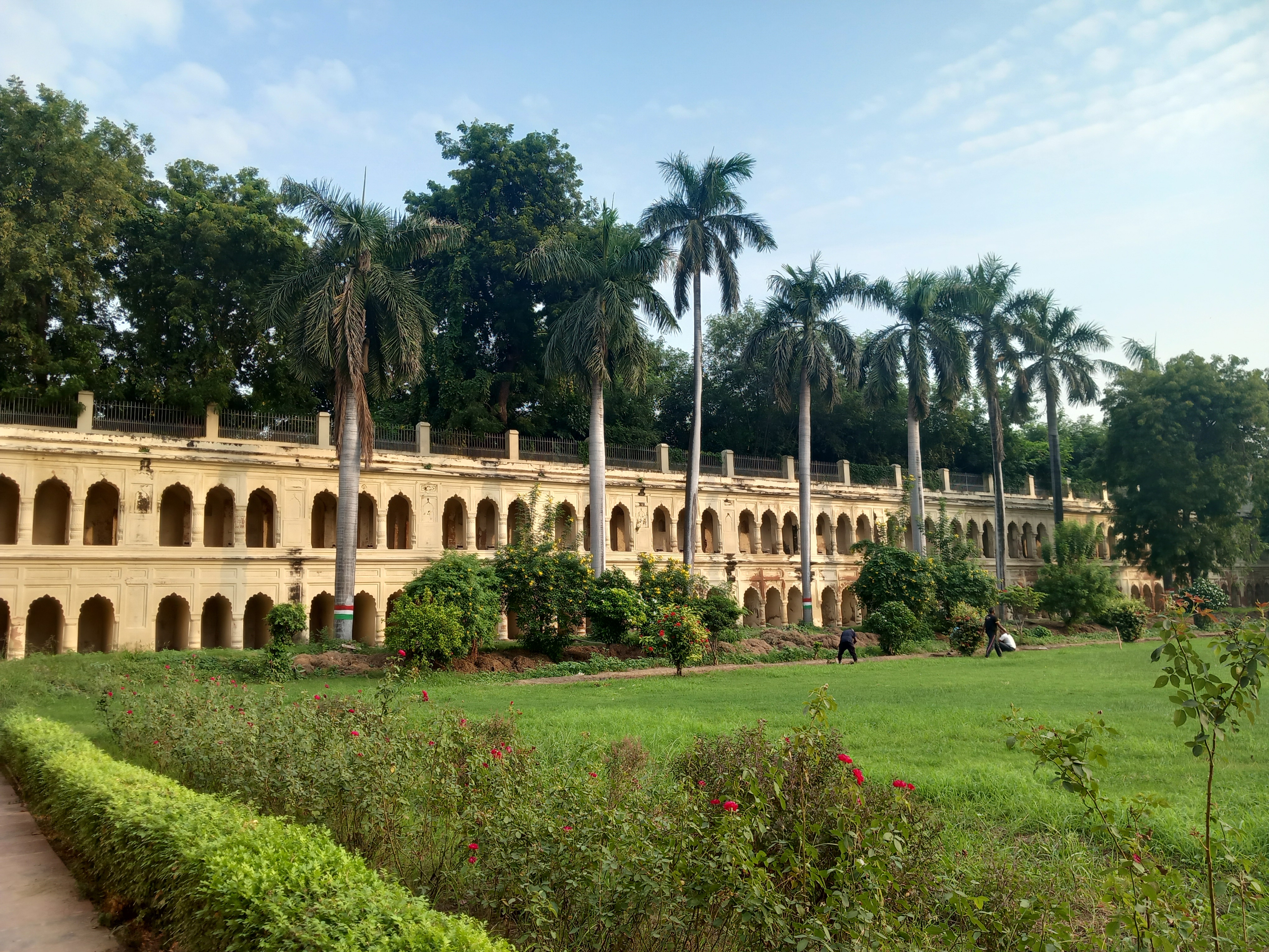 La création d’un collège a été pensée par Claude Martin, aventurier français ayant offert ses services à la Compagnie anglaises des Indes orientales puis ayant fait fortune en Inde, qui décide par testament d’apporter une éducation aux enfants défavorisés. La succession de ce monsieur a été soldée et les clauses ainsi légèrement modifiées : aujourd’hui, l’année scolaire coûte 1 million de roupies par élève, soit environ 10 000 euros, on est loin de l’éducation pour tous. Nous croisons ainsi des élèves en plein match de criquet, de football, saluons des chevaux en attente de leur cours d’équitation (qui essaient de nous chopper le bras au passage oreilles plaquées sur l’encolure), pouvons admirer les halls d’entrée des différents espaces ornés de peintures murales et de plafonds à caisson… Le lieu est beau, mais nous avons quelques difficultés à comprendre la raison de notre visite ici, d’autant plus que certains contrastes sont saisissants : devant le gardien du portail se trouve par exemple une antenne relai sur une remorque. Et sous cette remorque vit une famille… On ne peut pas ne pas la voir, et pourtant ! Une sensation quelque peu mitigée en sortant de ce lieu en tant que touriste.
