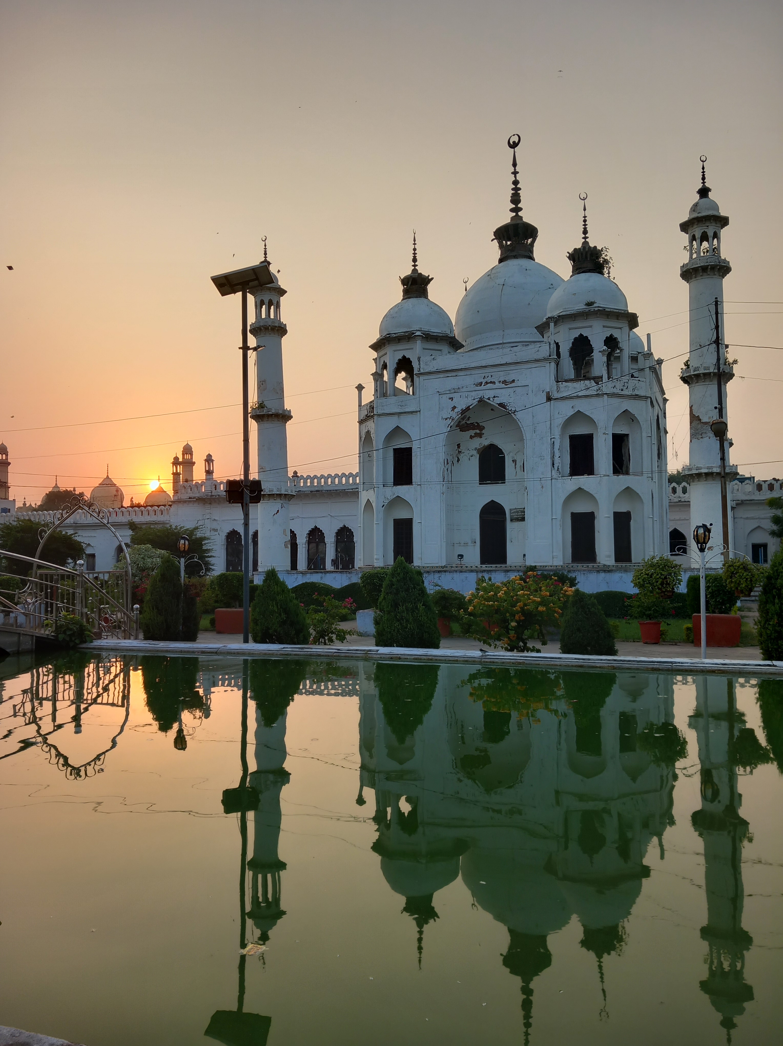 Nous terminons notre après-midi avec la visite du quartier de Chowk, auquel nous accédons en franchissant un mur d’enceinte de pierre blanche. Au regard du coucher du soleil qui arrive doucement, nous décidons d’aller encore visiter le mausolée Chhota Imambara, édifié sous le règne du Nawab Ali Shah en 1882, qui abrite le trône d’argent et la couronne rouge de ce dernier. A l’origine, nous recherchions le « petit Taj Mahal » censé se trouver dans le secteur, mais nous ne sommes pas déçus pour autant par la découverte du lieu, d’autant plus que le gardien du mausolée nous accueille volontiers pour nous proposer un petit commentaire du Trésor (moyennant petite finance, évidemment, mais c’est le jeu).