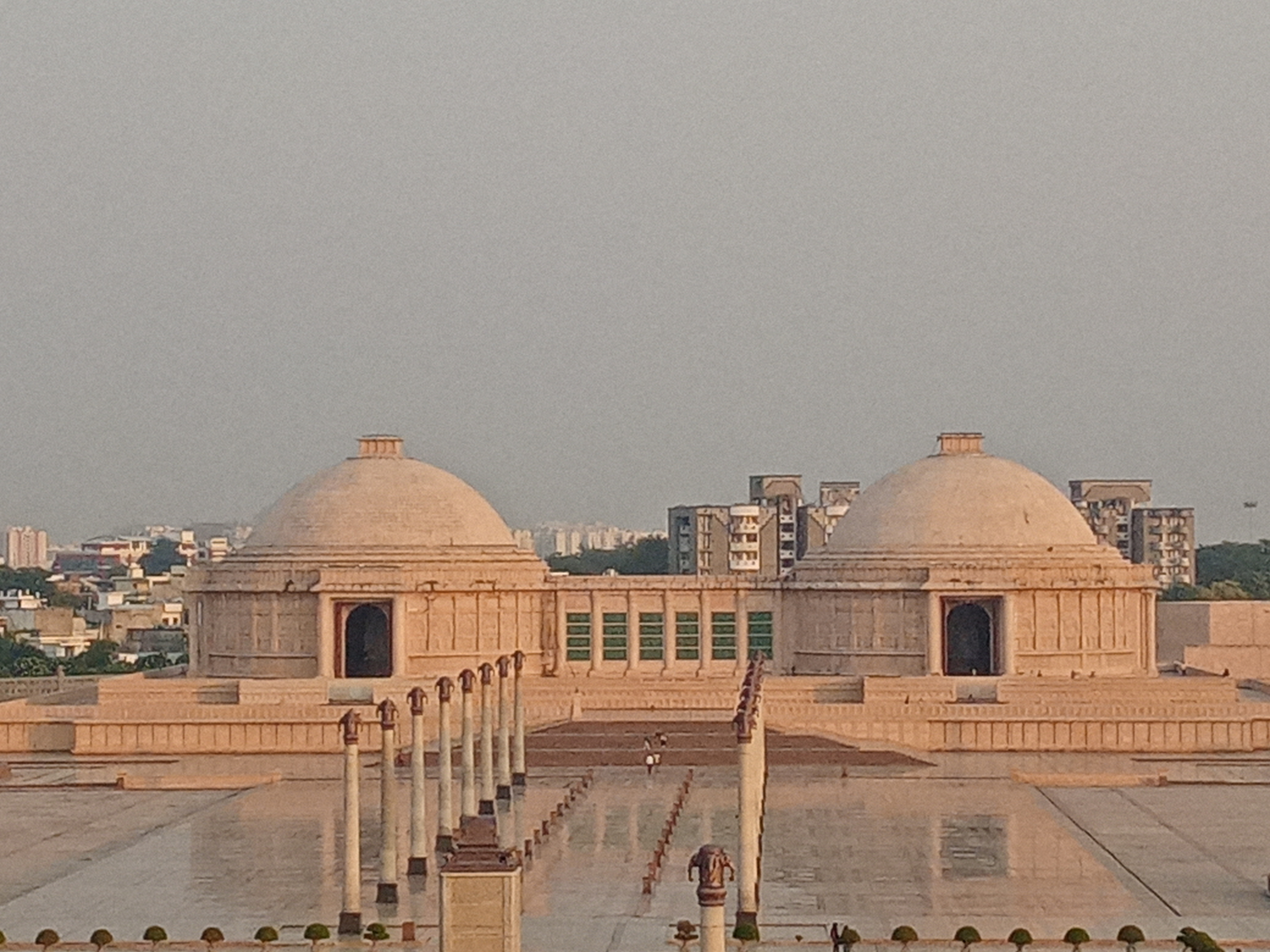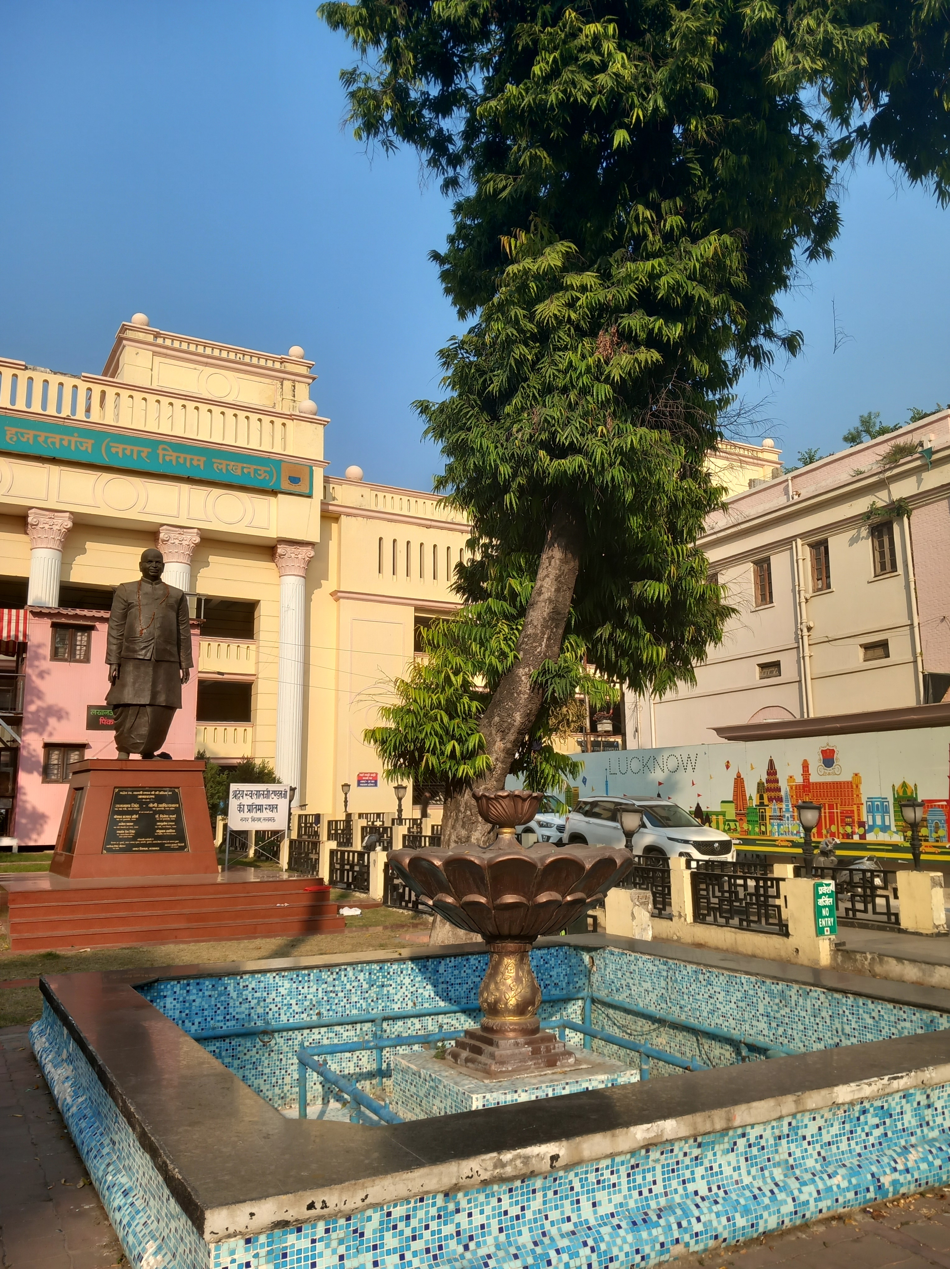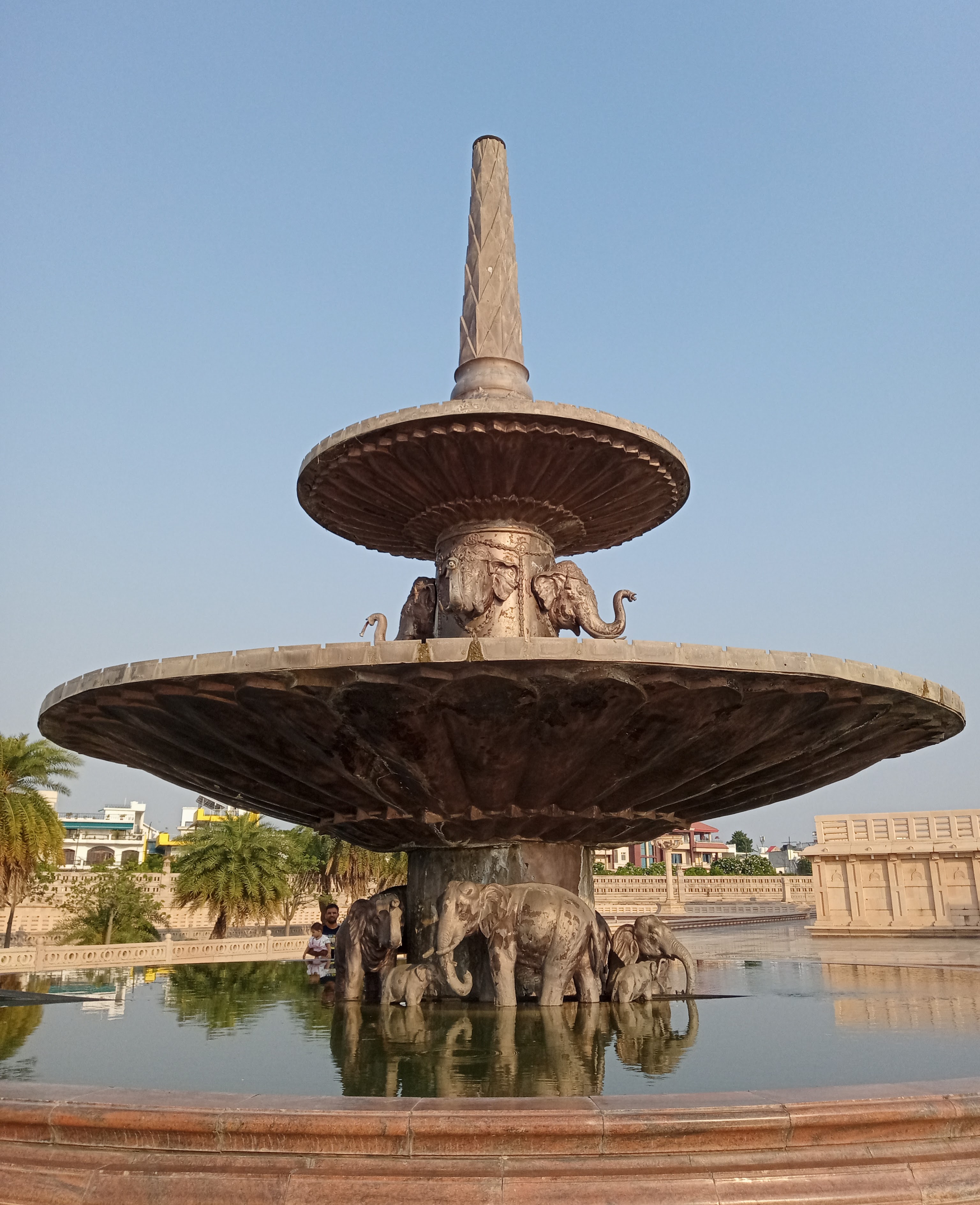Monsieur se rend donc, accompagné d’autres touristes avec lesquels nous avons sympathisé (nous ne sommes pas les seuls à être sans cesse rapatriés par le guide sur les sites touristiques, à force, ça crée des liens), au parc commémoratif d’Ambedkar, réputé comme étant l’un des plus beaux parcs de Lucknow. Entre pelouses, fontaines, étang et espaces mémoriels, le site est juste magnifique, et de nombreux monuments valent le coup d’œil, entre autres une Stupa en grès de 34 mètres de hauteur illustrant la vie et l’œuvre du Dr Ambedkar, ancien ministre et principal rédacteur de la Constitution de l’Inde après que le pays ait accédé à l’indépendance, ou encore un musée et une bibliothèque également consacrés à ses travaux.