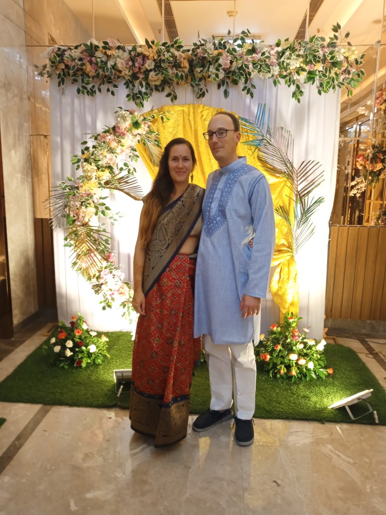 Et nous avons été ramenés sans encombre à l’hôtel, dans les temps pour le démarrage des cérémonies du soir, le point culminant du mariage, avant lequel les femmes devaient encore aller se faire habiller à tour de rôle avec leurs sarees choisis la veille après-midi alors que les hommes portaient la Kurta, tunique traditionnelle (nettement plus facile à enfiler, c’est moi qui vous le dis).
