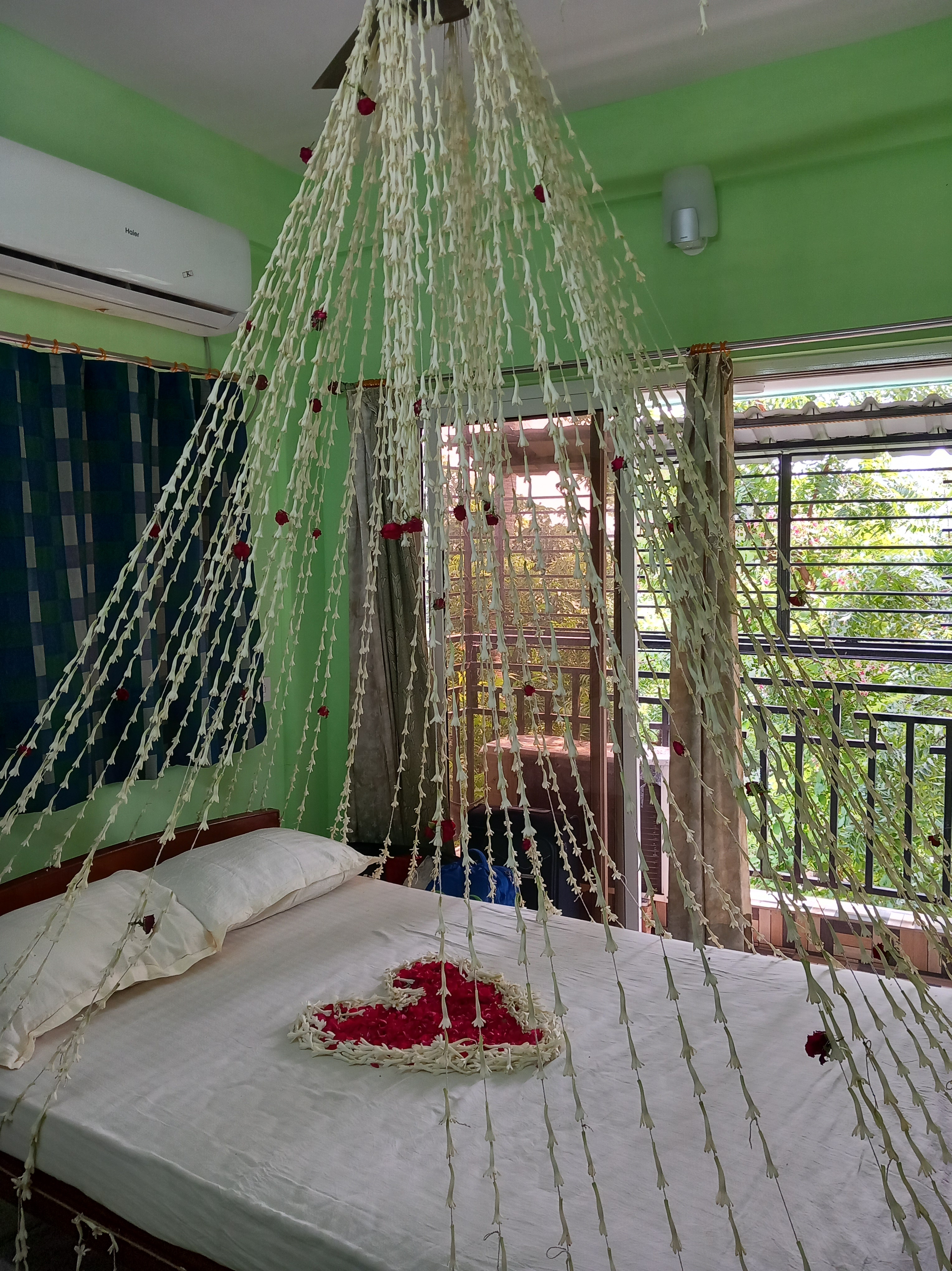 La première partie de journée est dédiée à de nouvelles cérémonies pour les mariés. Tous les convives se rendent dans la maison de famille du marié afin d’admirer le lit nuptial orné de guirlandes de fleurs de jasmin (cérémonie de Phool Sojja) avant de monter sur le toit du bâtiment pour admirer la vue sur le fleuve… et les immeubles ultra-modernes faits de verre et de jardins suspendus visibles sur la rive d’en face. Là encore, un contraste immense avec les habitats précaires qui sont installés sur les rives à nos pieds…