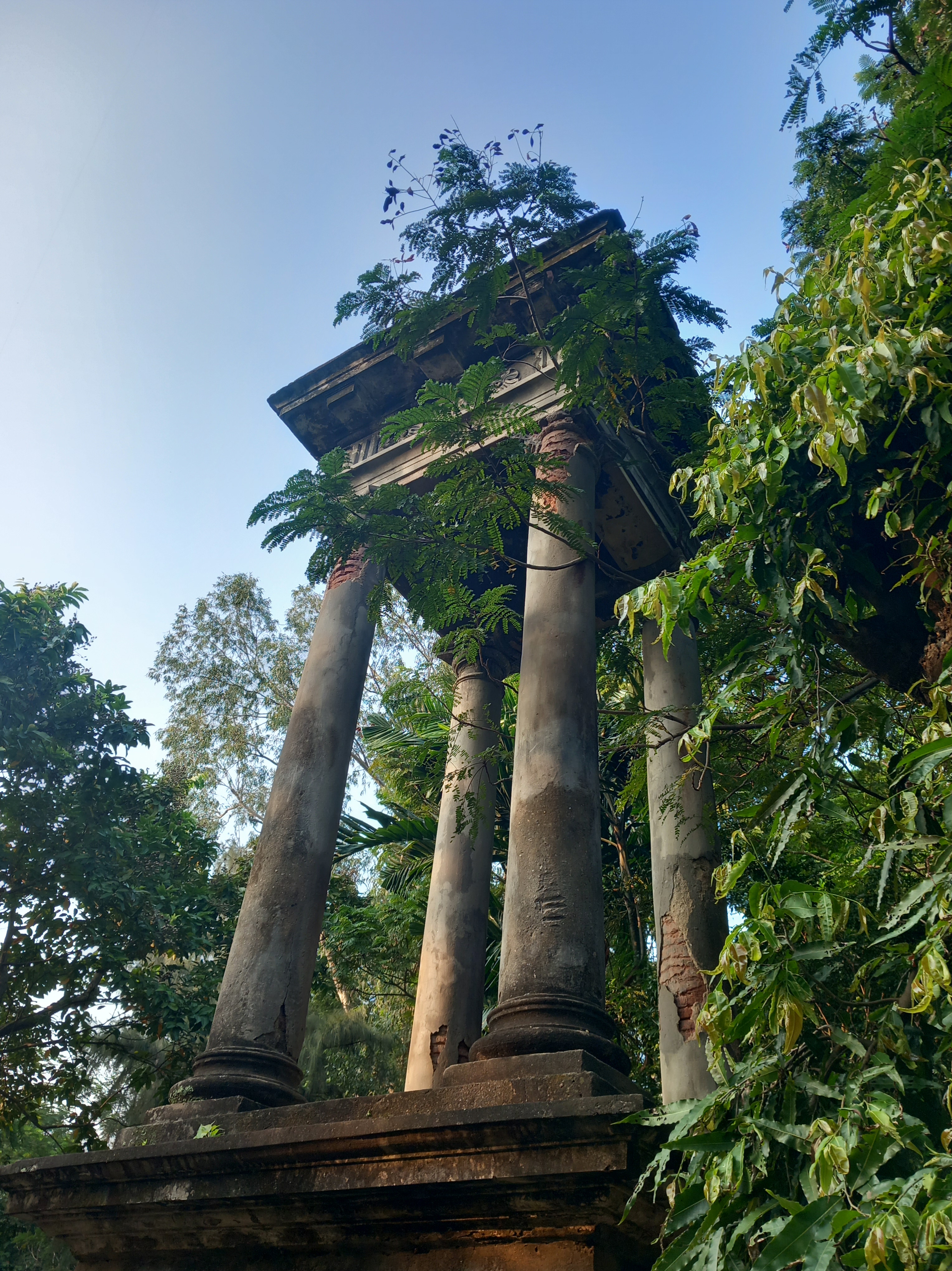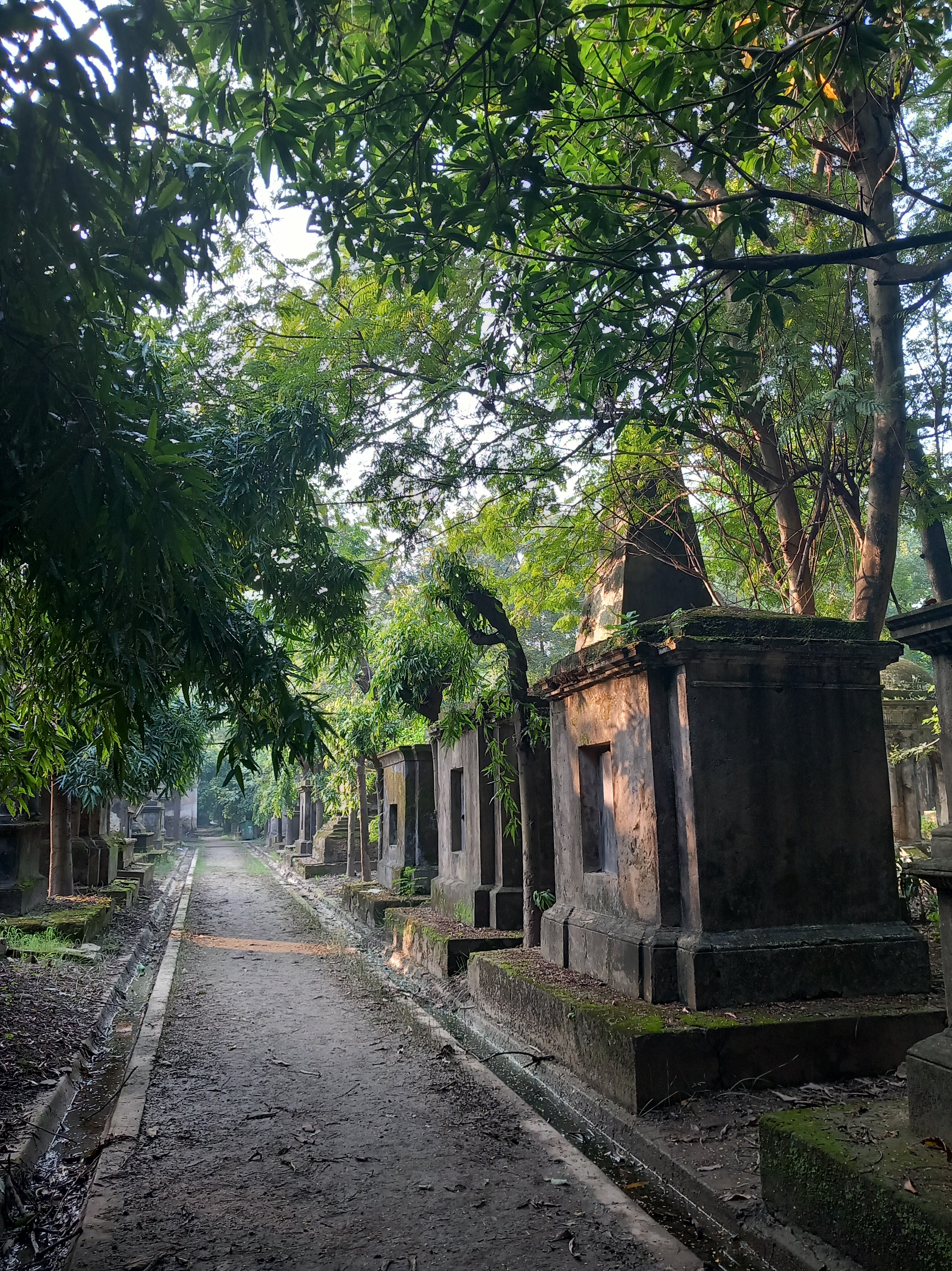 Nous décidons toutefois de ressortir encore durant l’après-midi, afin de nous rendre dans un lieu très calme, et pour cause : le cimetière de Park Street, protégé par un statut équivalent à celui de nos Monuments historiques (l’Archaelogical Survey of India), connu pour ses tombes monumentales nichées au cœur d’un jardin devenu quasiment une jungle au fil des ans. Bien que l’on se trouve au cœur du centre-ville, à deux pas de notre sortie de métro et de la circulation routière dense, le silence est quasi absolu, et nous sommes seuls dans une des villes les plus peuplées du monde. Un contraste incroyable et extrêmement ressourçant.