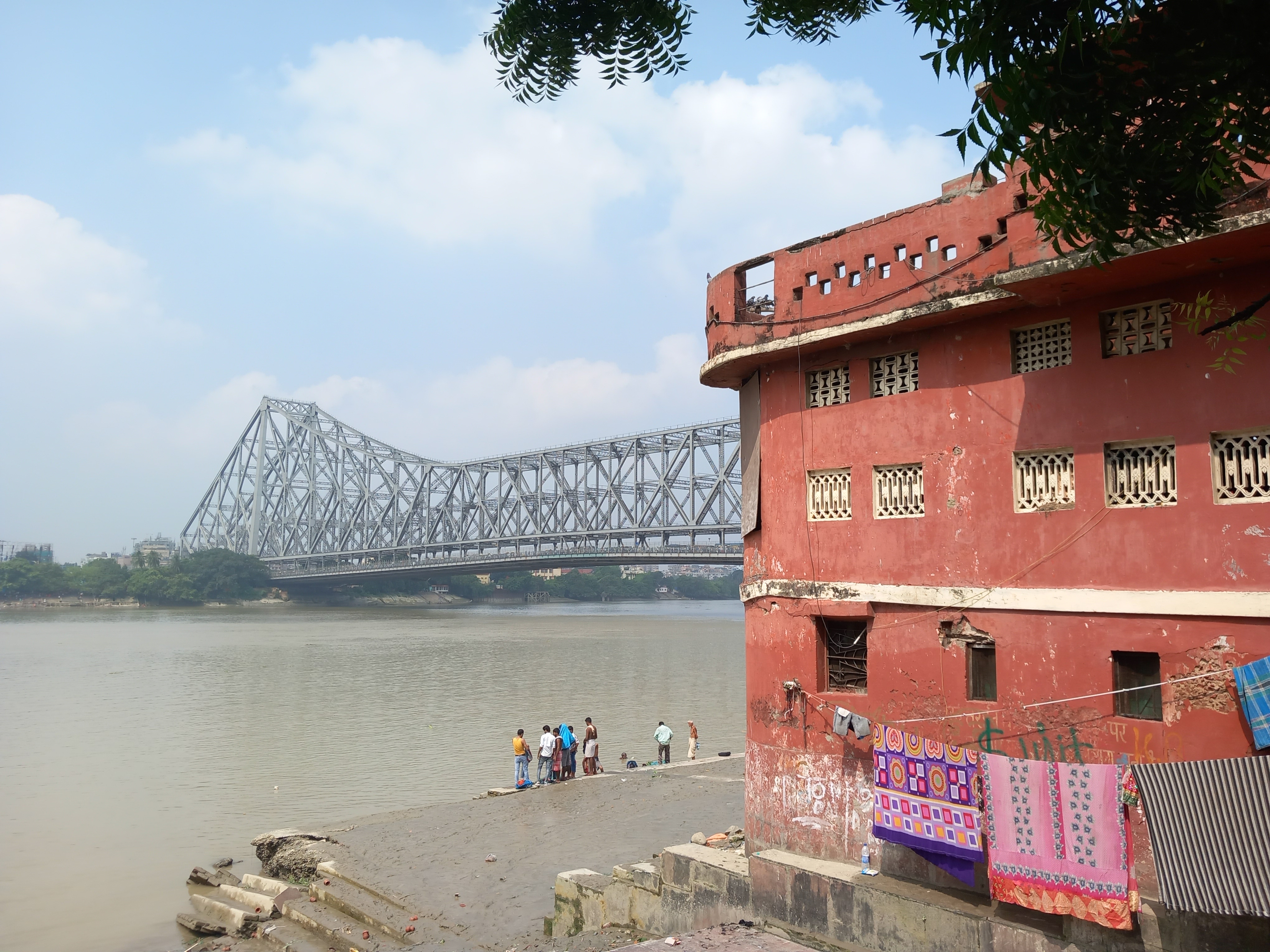 Et tout à coup, nous débouchons sur une grande esplanade au niveau du fleuve Hooglhy, un bras du Gange. La vue est assez incroyable, très dégagée, très paisible après notre passage dans le marché !