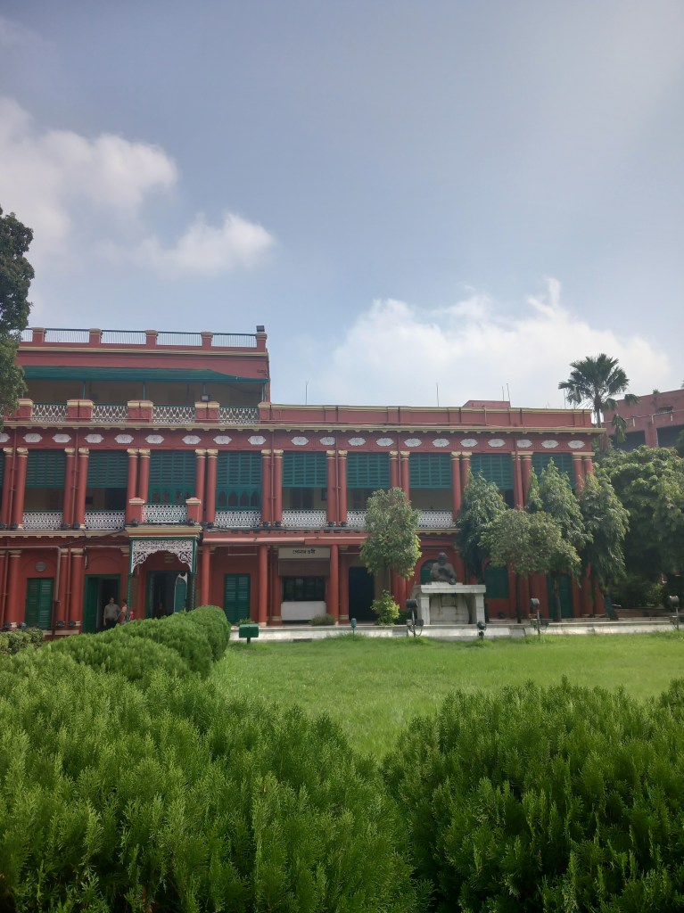 Nous retournons ensuite au bus, direction la maison-musée de Rabindranath-Tambore, écrivain, peinture, philosophe et compositeur indien titulaire du prix Nobel de littérature en 1913. Si pour ma part je ne connaissais même pas le nom de cette personne, ce n’est pas le cas d’une autre touriste de notre groupe qui, maitrisant très bien l’œuvre de cet artiste, prend plaisir à compléter spontanément le discours du guide. Nous déambulons donc de manière assez stricte (ça, c’est le point faible des visites guidées !) dans la maison pour découvrir différentes facettes de son œuvre au travers des objets, des tableaux…