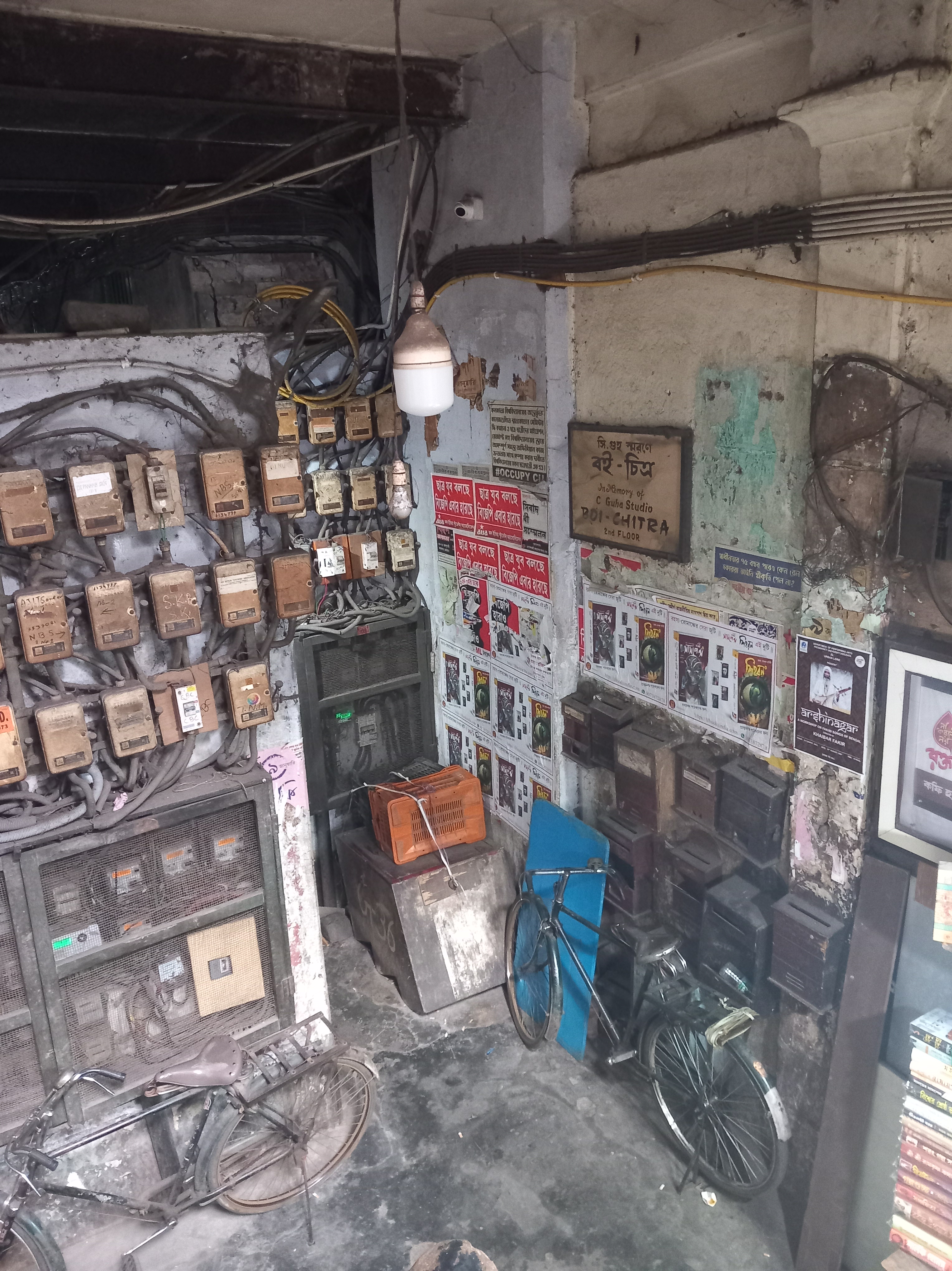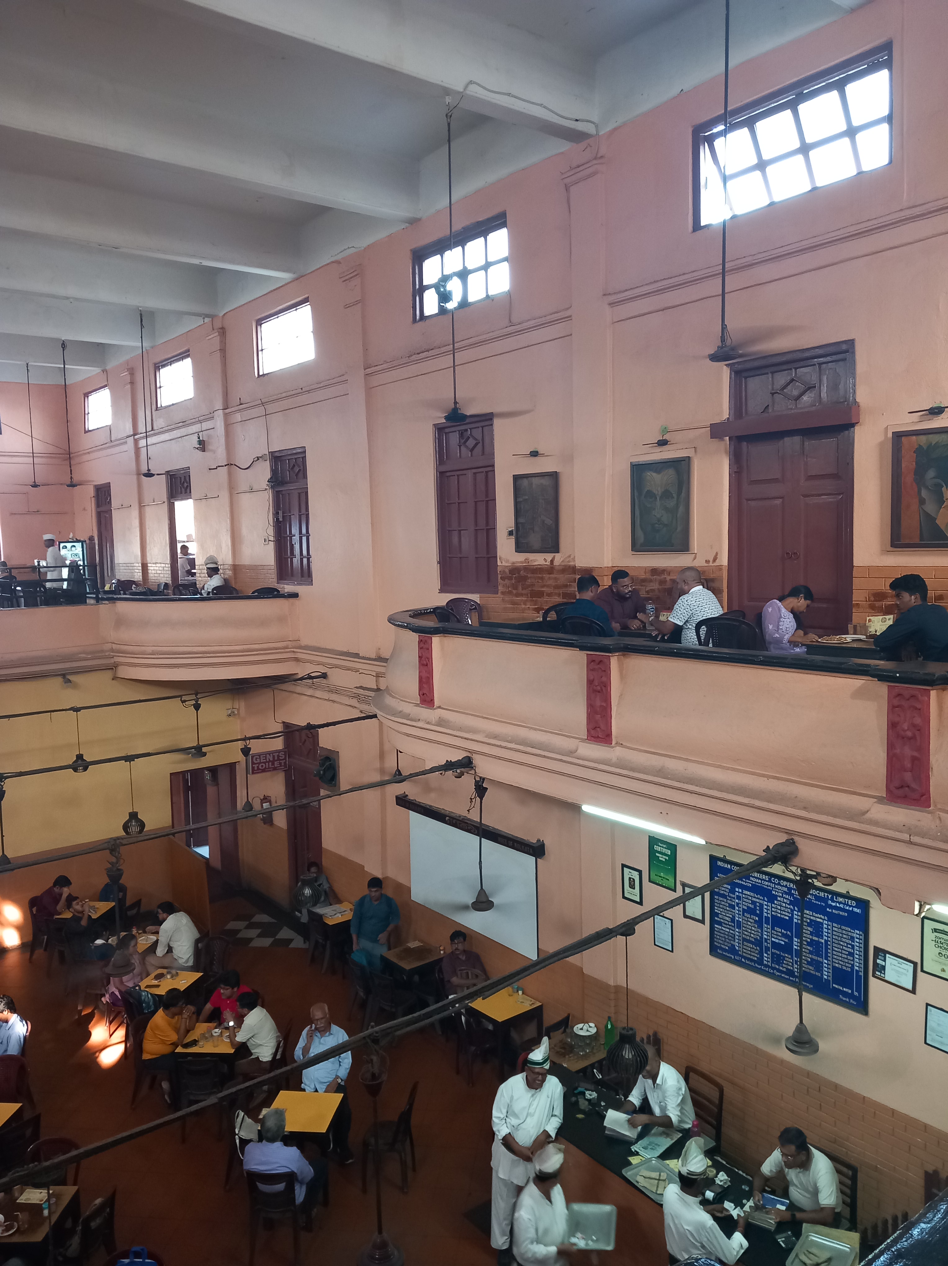 Après cette visite un peu insolite, le guide nous emmène dans un autre lieu tout aussi curieux pour des touristes logeant au « Tolly Gunge » (mais qui n’a pas été pour nous déplaire), à savoir une cantine au cœur du quartier des bouquinistes, l’Indian Coffee House ! Rien que l’entrée du lieu vaut le déplacement (ne surtout pas s’interroger sur la sécurité incendie…) et nous goûtons enfin les « momos » figurant sur tous les panneaux publicitaires de la ville. Seul bémol là encore : le temps passé, nous rongeons notre frein et avons à nouveau l’impression que le guide « gagne du temps » pour ne pas nous emmener visiter d’autres lieux. Mais nous avons désormais trouvé le truc que nous n’avions pas encore compris à Agra (voir notre aventure pour aller visiter Fatehpur Sikri) : si on ne repart pas rapidement, nous quittons la visite pour aller de notre côté visiter un temple jaïn ! Et ça marche, il faut tout à coup moins de 10 minutes pour que tout le monde ait rejoint le bus… direction un temple jaïn, comme par hasard tout à coup rajouté au programme de l’après-midi. La vie est simple, parfois !