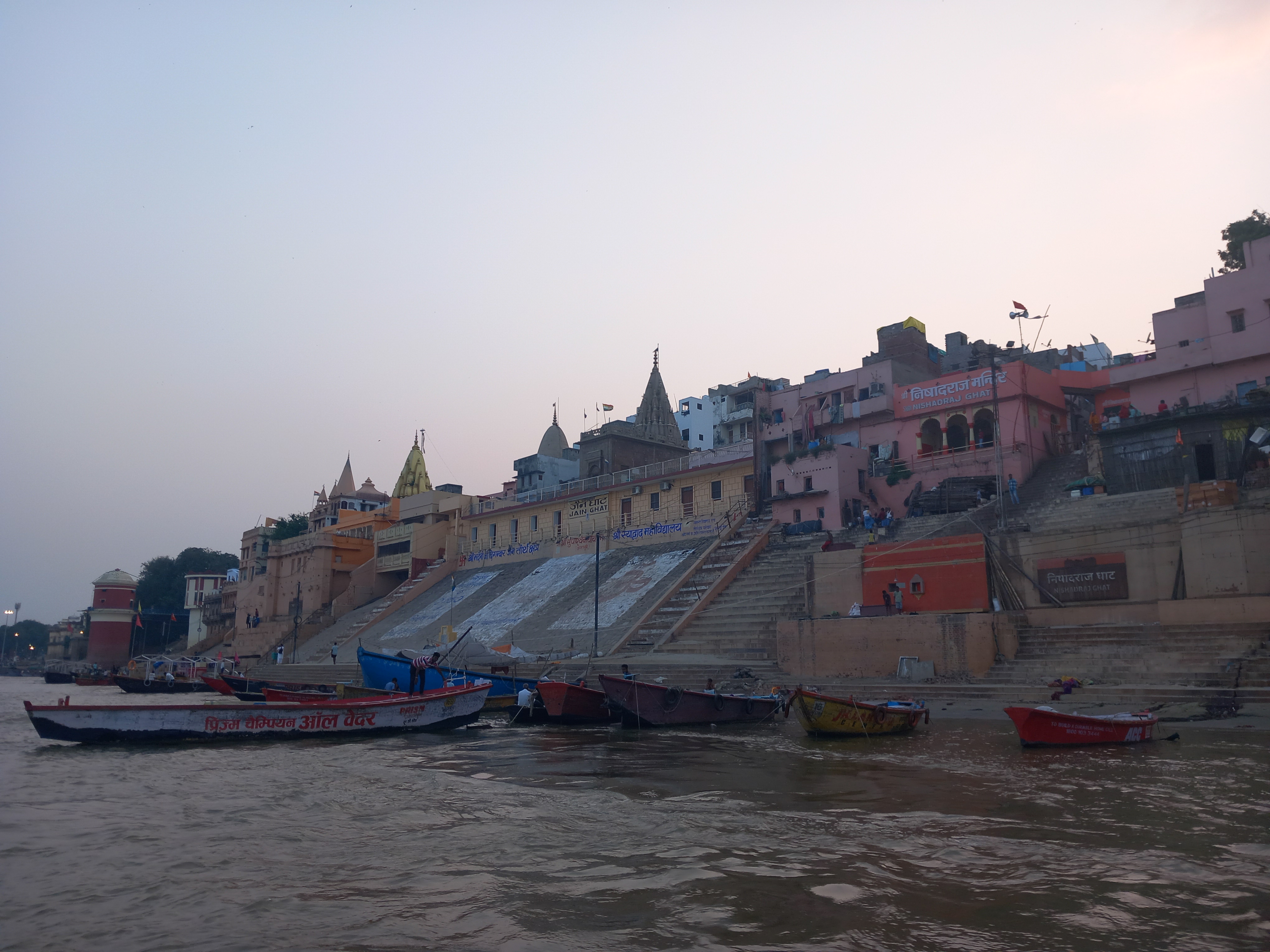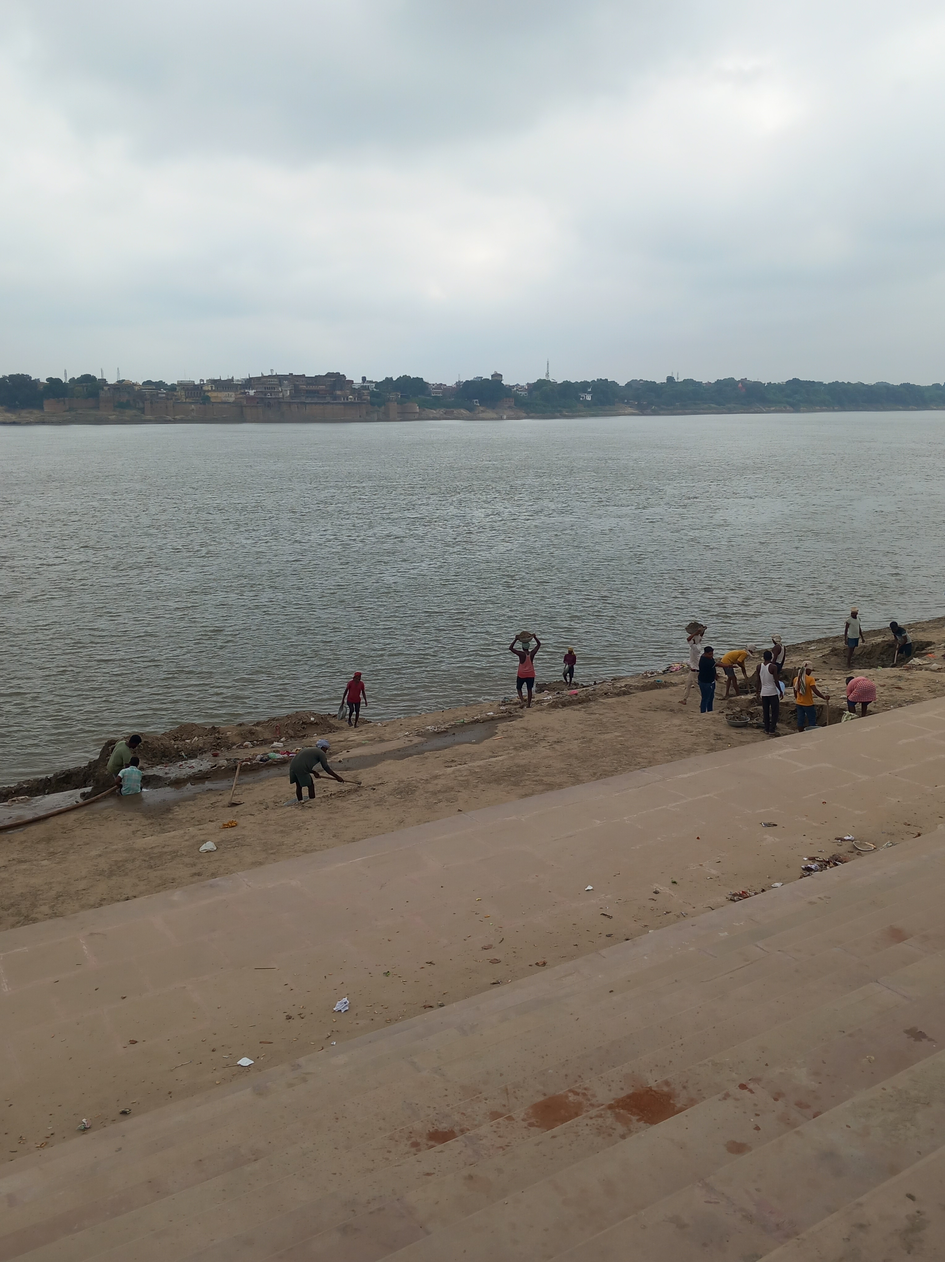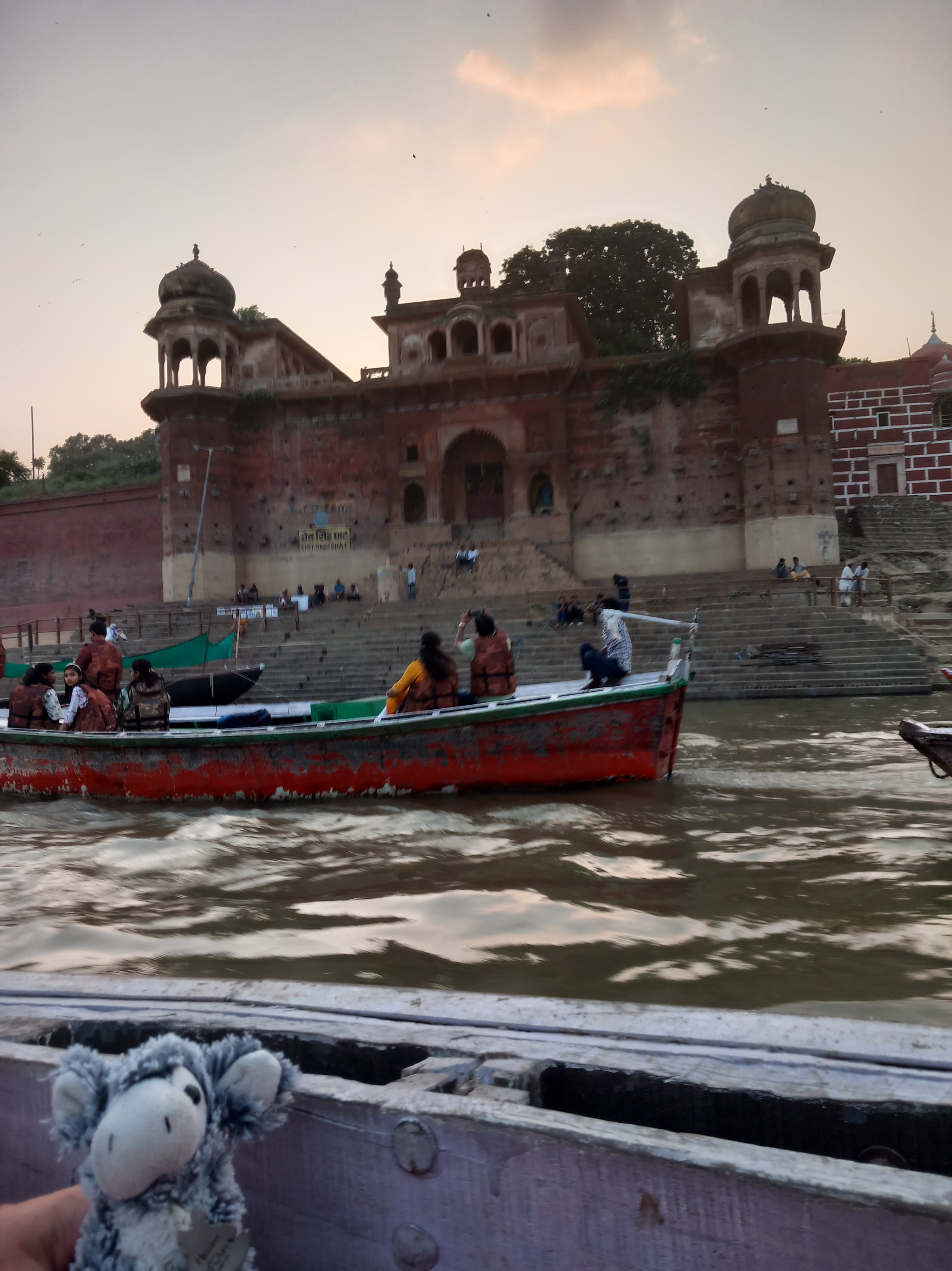 Le Tuk Tuk de retour nous emmène d’ailleurs gentiment sur la rive opposée du fort, auprès de Ghâts totalement recouverts de limon suite aux violentes crues des semaines précédentes et qui sont en train d’être nettoyés au jet. La vue sur le fort est imprenable de là !