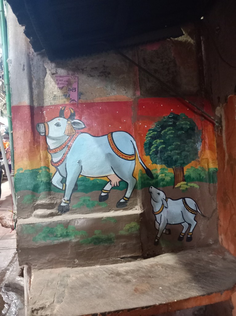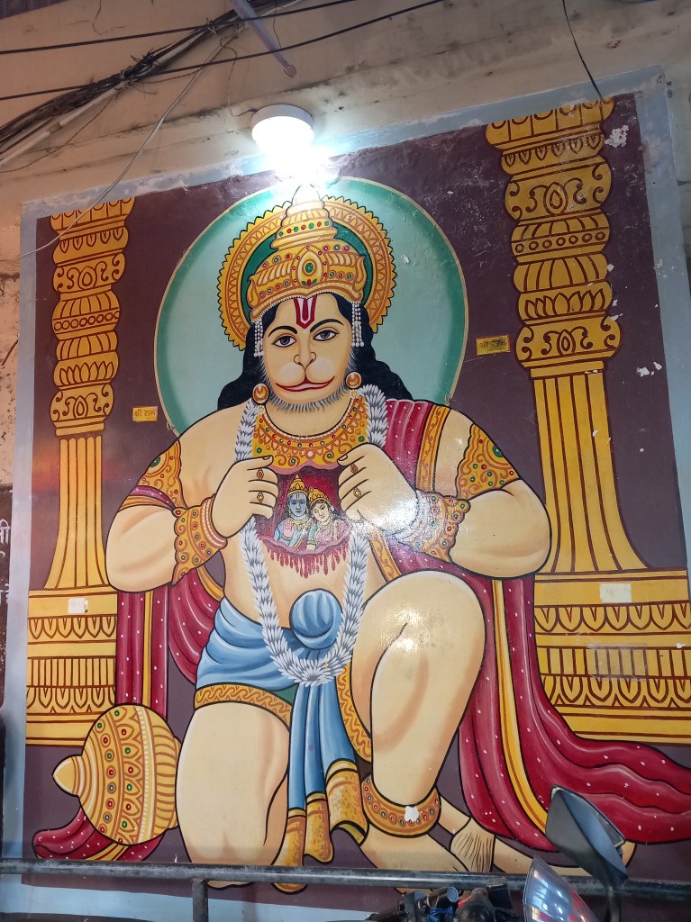 En ce deuxième jour à Varanasi, j’ai fait ce que j’aurais détesté qu’on me fasse en tant que guide moi-même : j’ai séché une visite au programme, et entrainé monsieur dans mon choix. Car me lever à 3h30 du matin pour retourner faire un tour en bateau sur le Gange, c’était trop pour moi ! Nous avons donc décidé de prendre un bon petit déjeuner avant d’aller nous promener dans les environs de l’hôtel, tantôt en empruntant un tuk tuk, tantôt en marchant. Entre beaux murs peints et petites églises cachées dans des jardins, nous avons « essoré » le quartier !