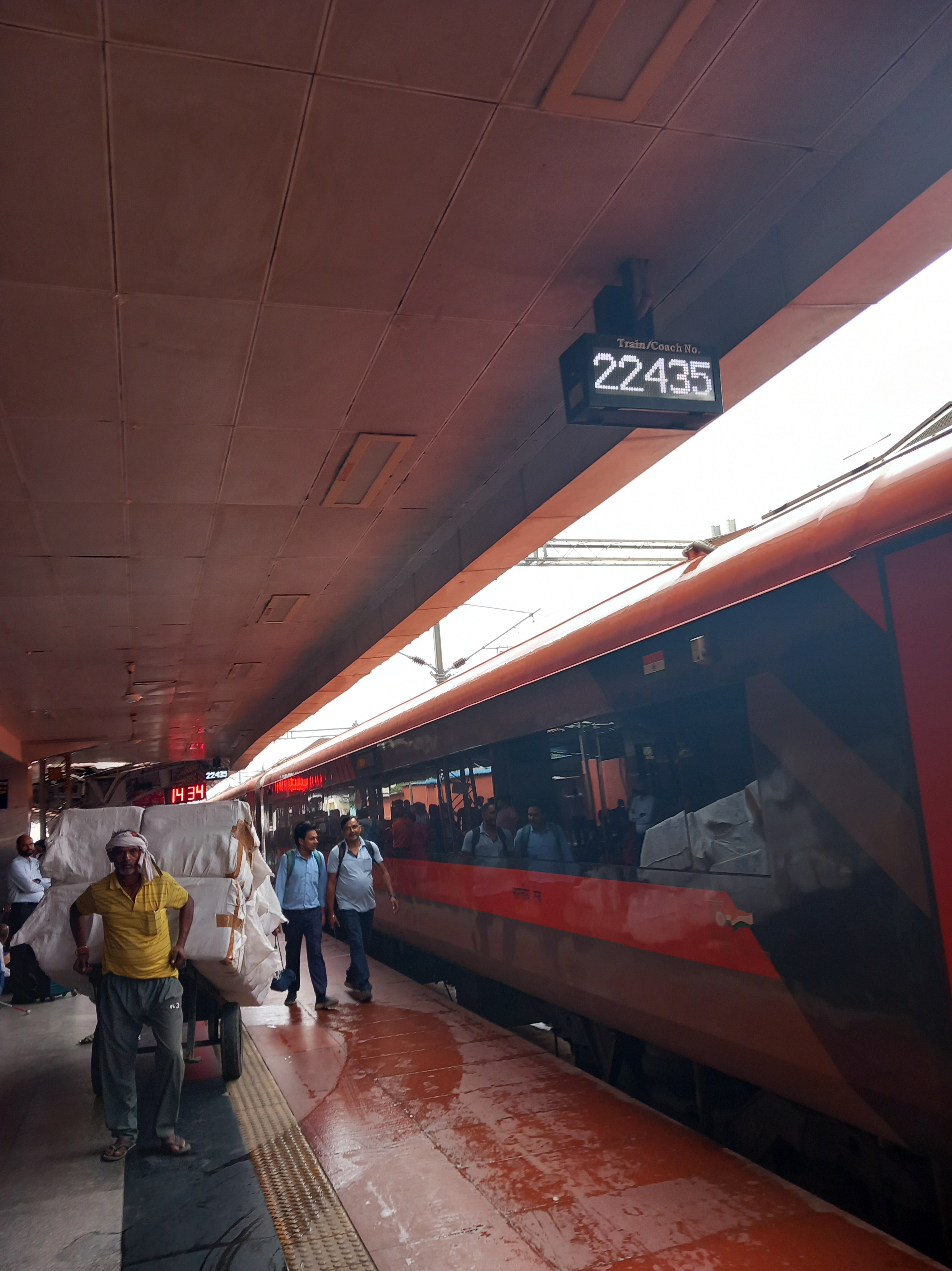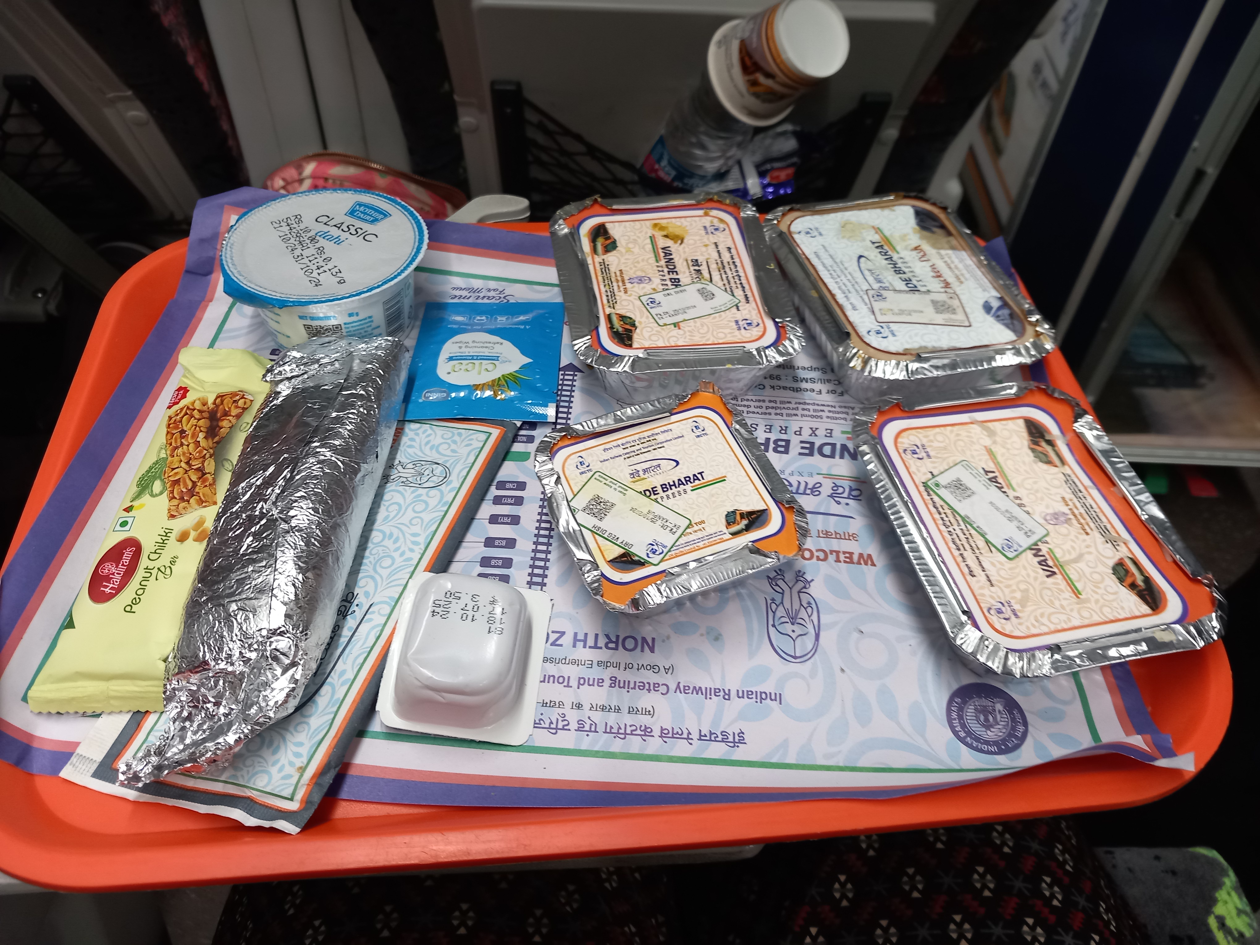 Le reste de la journée est consacré au trajet retour vers Delhi, en train cette fois-ci. Nous n’évoquerons pas « l’aventure » en bus climatisé 45 places pour nous emmener sans encombre à la gare de Varanasi située à 200 mètres en ligne droite depuis l’hôtel (quand on dit que les touristes ne doivent pas marcher), nous parlerons plutôt de la gare en elle-même, du même acabit que le métro de Calcutta : c’est calme, c’est propre, c’est organisé, les gares françaises peuvent se cacher ! L’auto-laveuse passe en continu sur le quai (il faut faire attention à reculer sa valise juste à temps), le ménage est fait plusieurs fois par heure dans les wagons. Impeccable… et en plus, on a été nourris deux fois durant le trajet, et correctement !