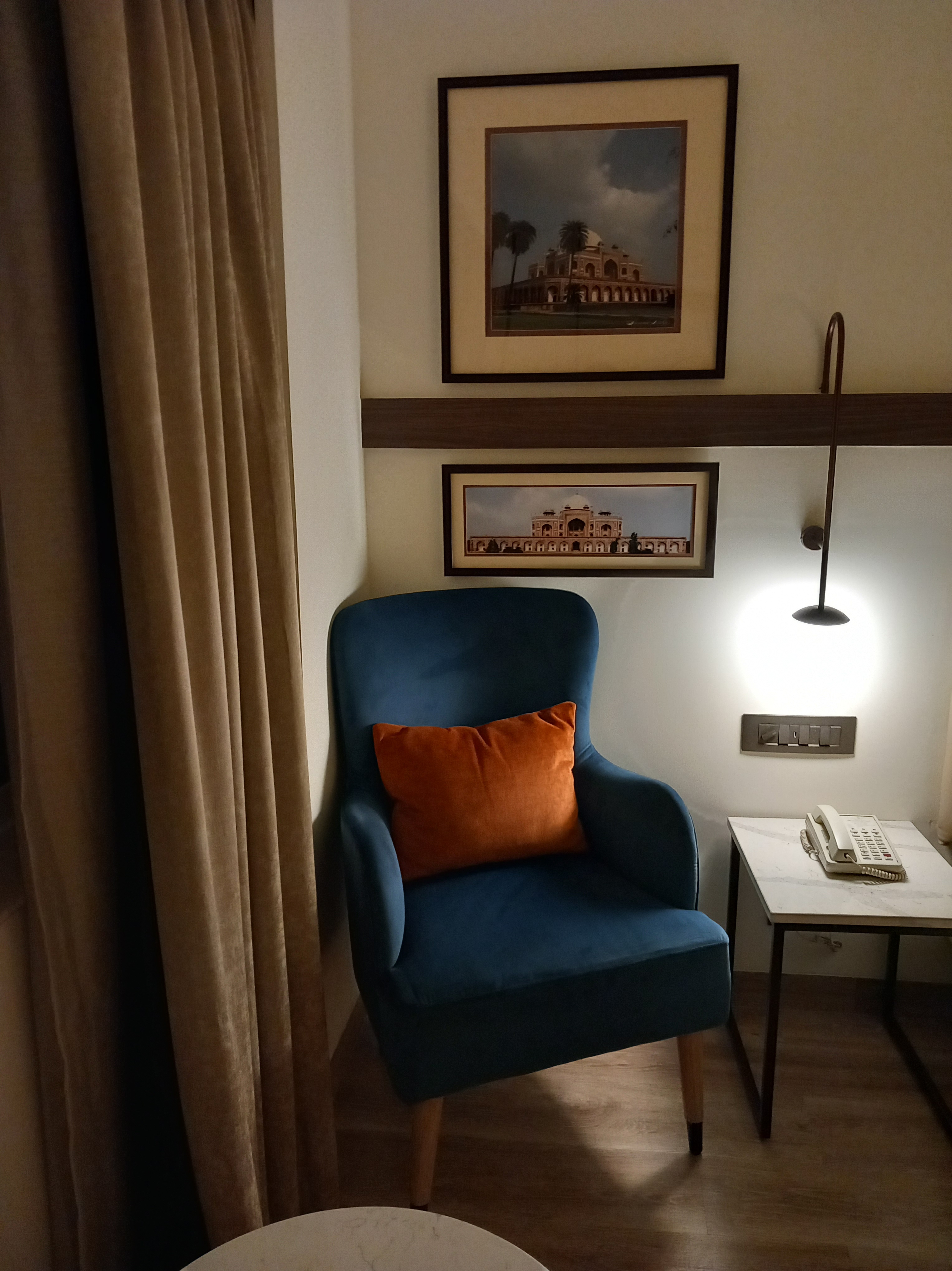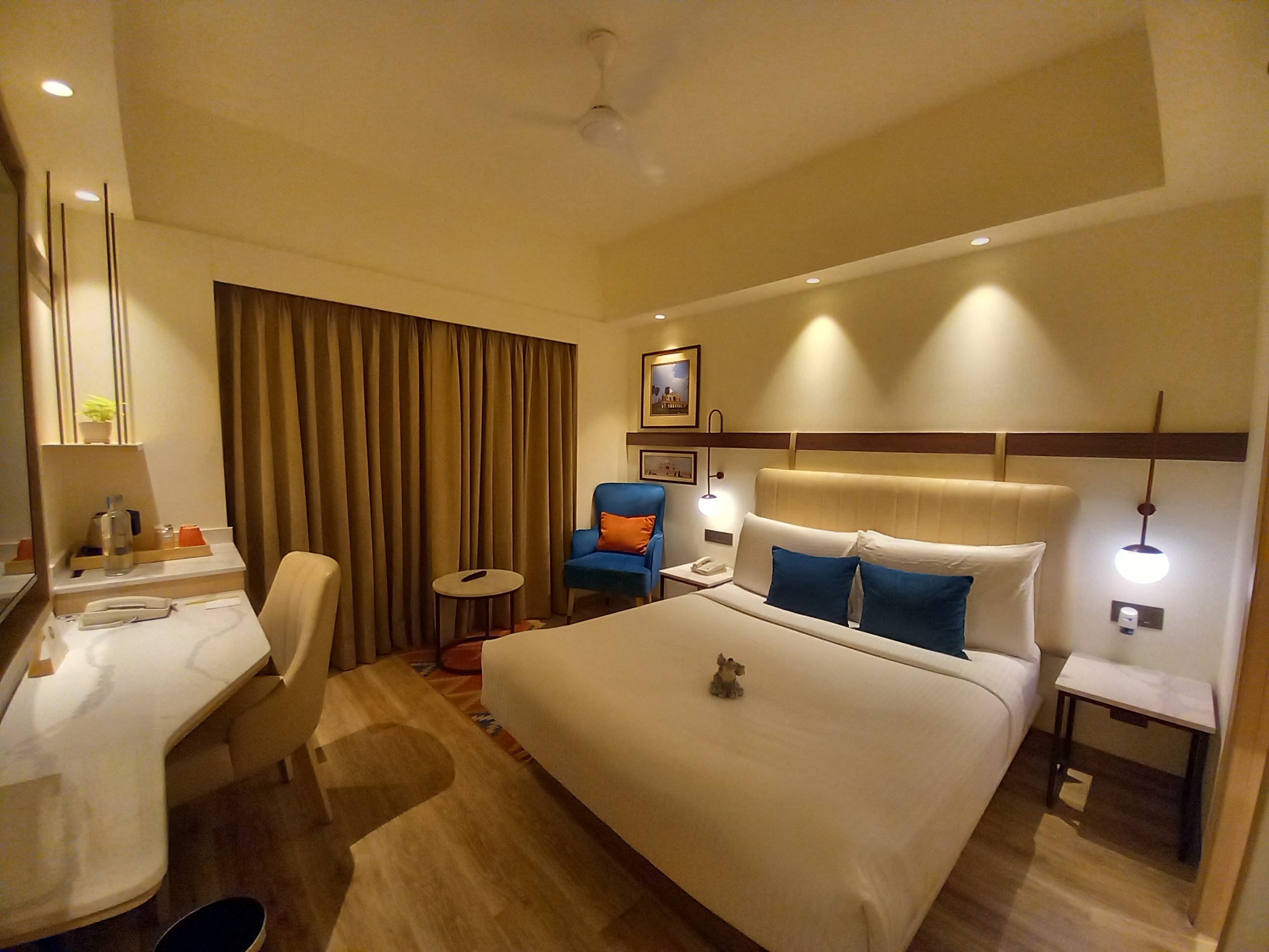 C’est désormais la dernière nuit en Inde : nous trinquons une dernière fois avec nos compagnons de voyage avant de rejoindre nos chambres. Notre regret immédiat : n’être à cet hôtel qu’une seule nuit, car le lieu est franchement beau (et encore plus pour un hôtel d’aéroport), il y a même une petite bouture de citronnier dans la chambre !